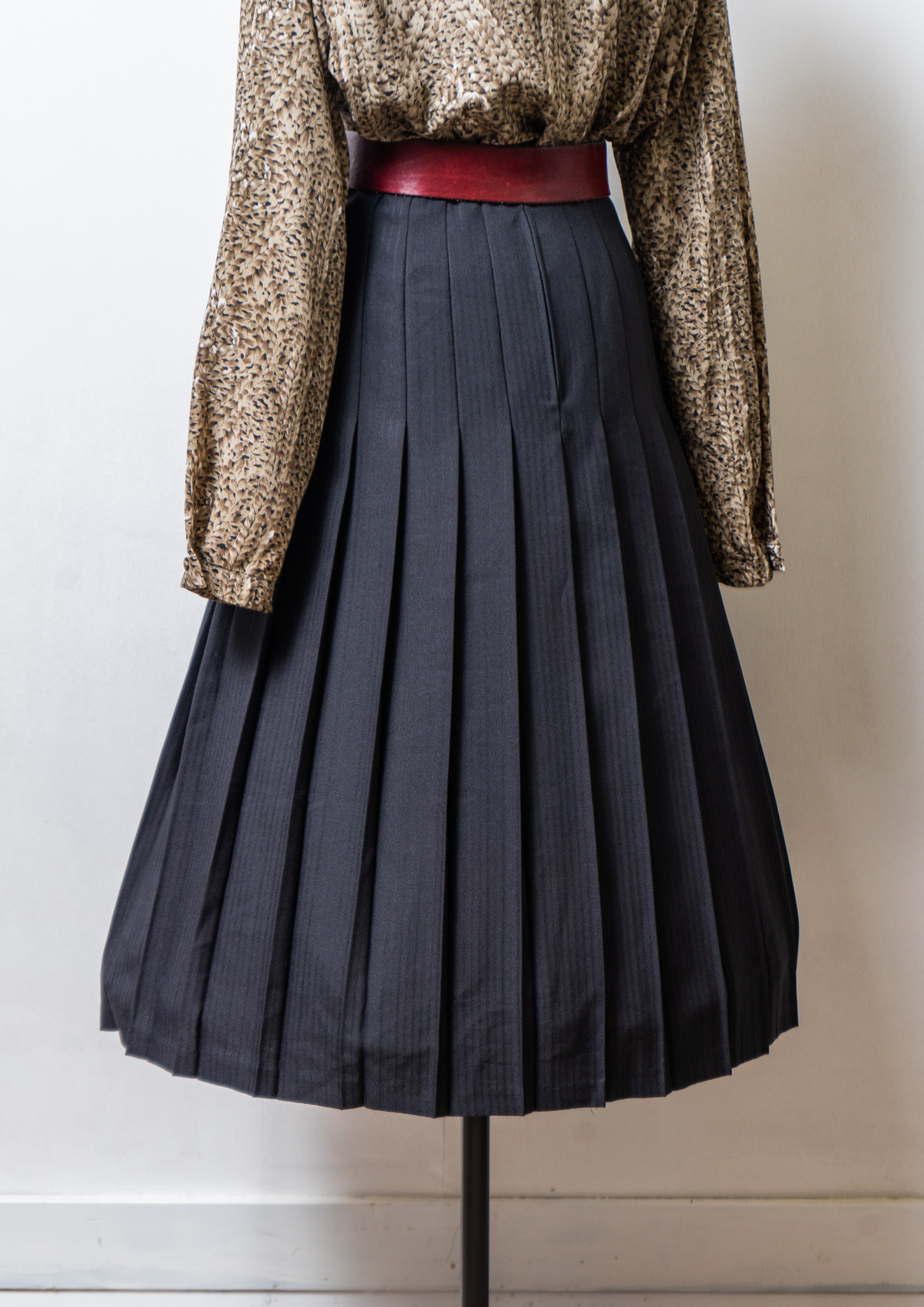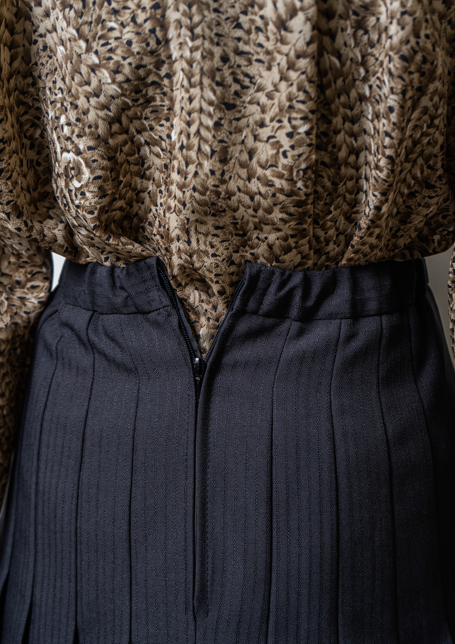 90's Euro Tuck Design Check Pattern Brown Skirt