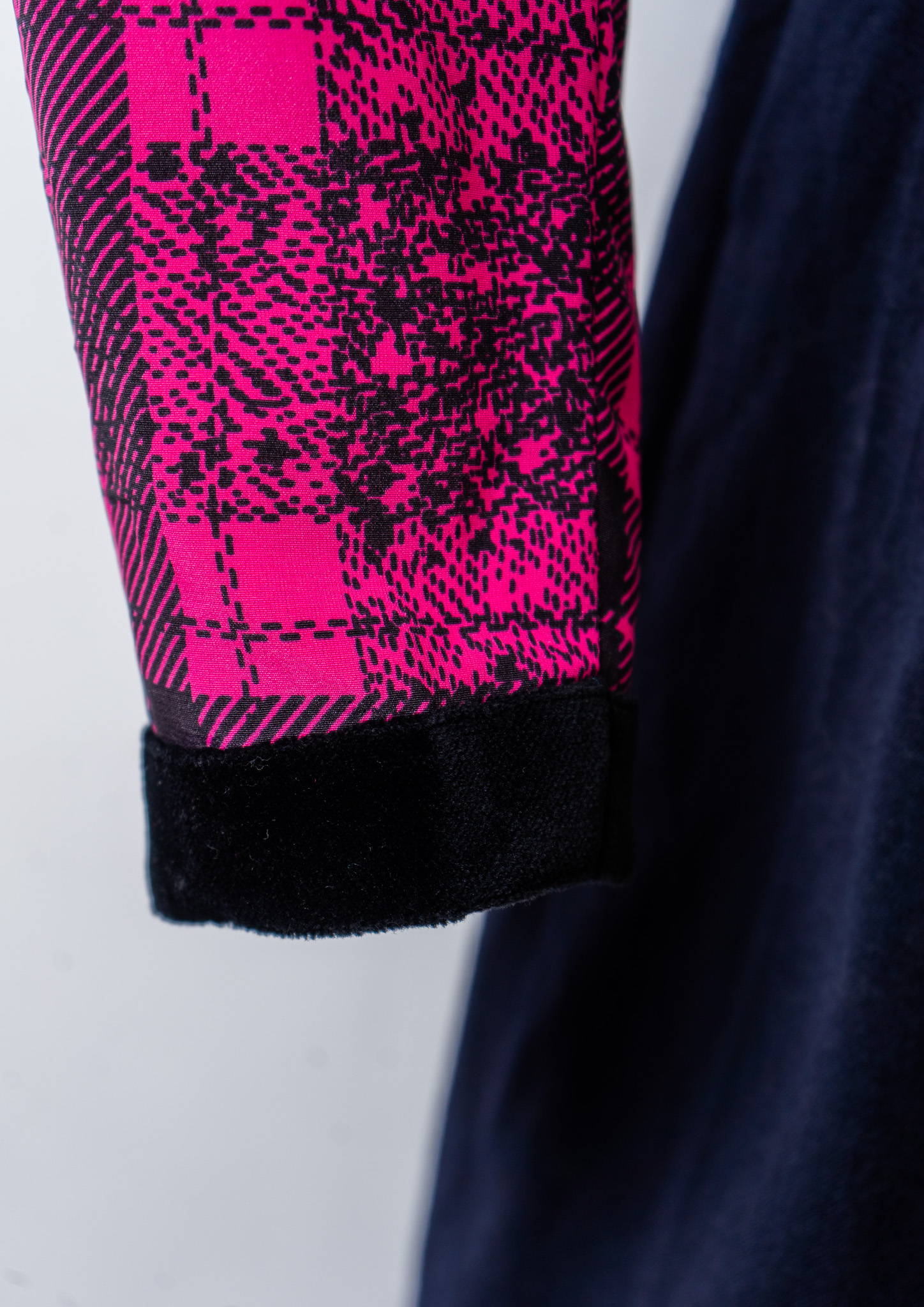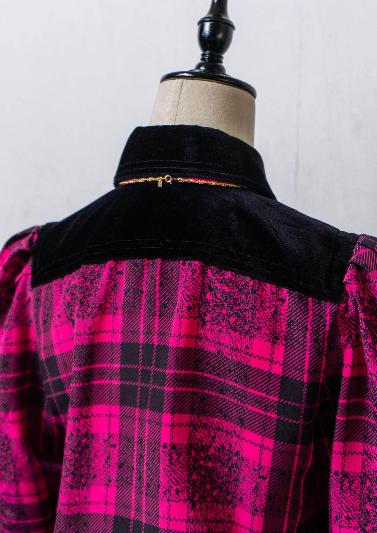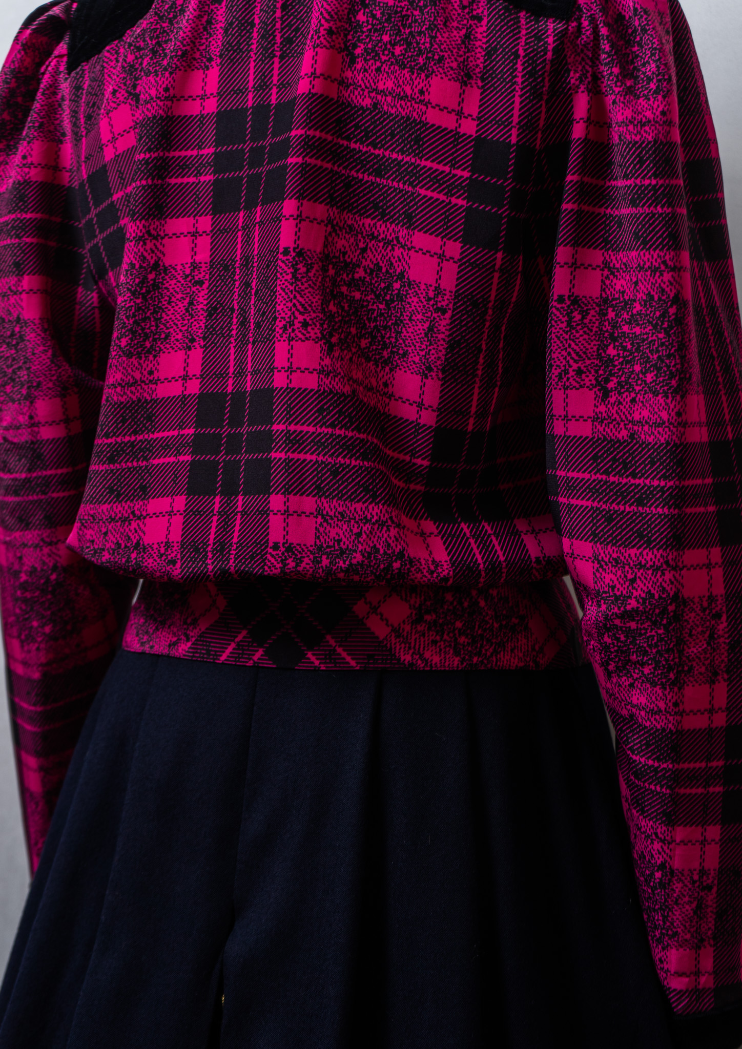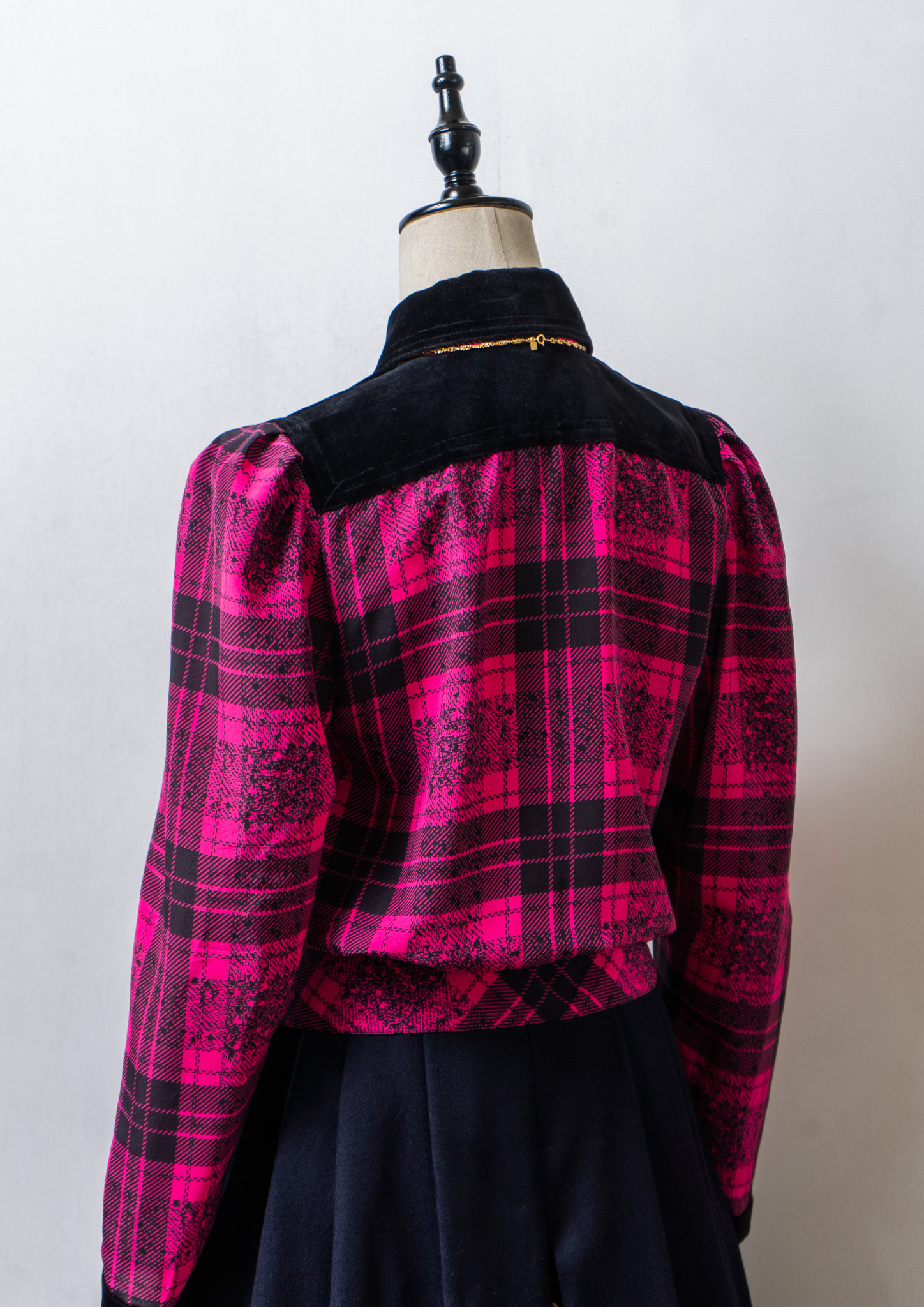 80's Euro Point Velor Design Check Pattern Vivid Pink Jacket Blouse