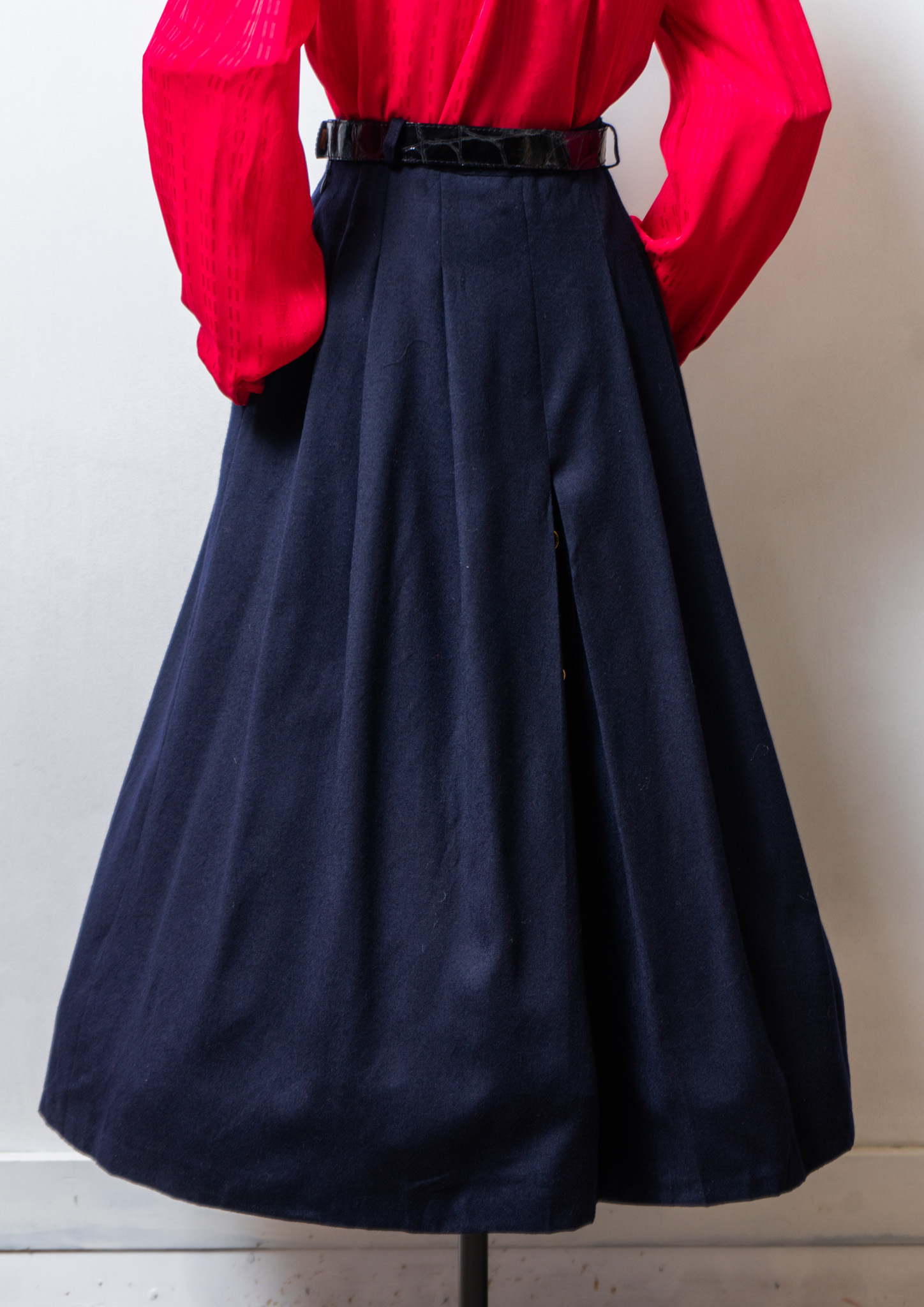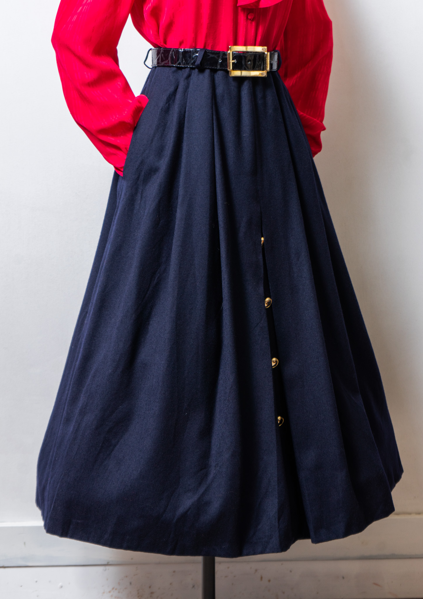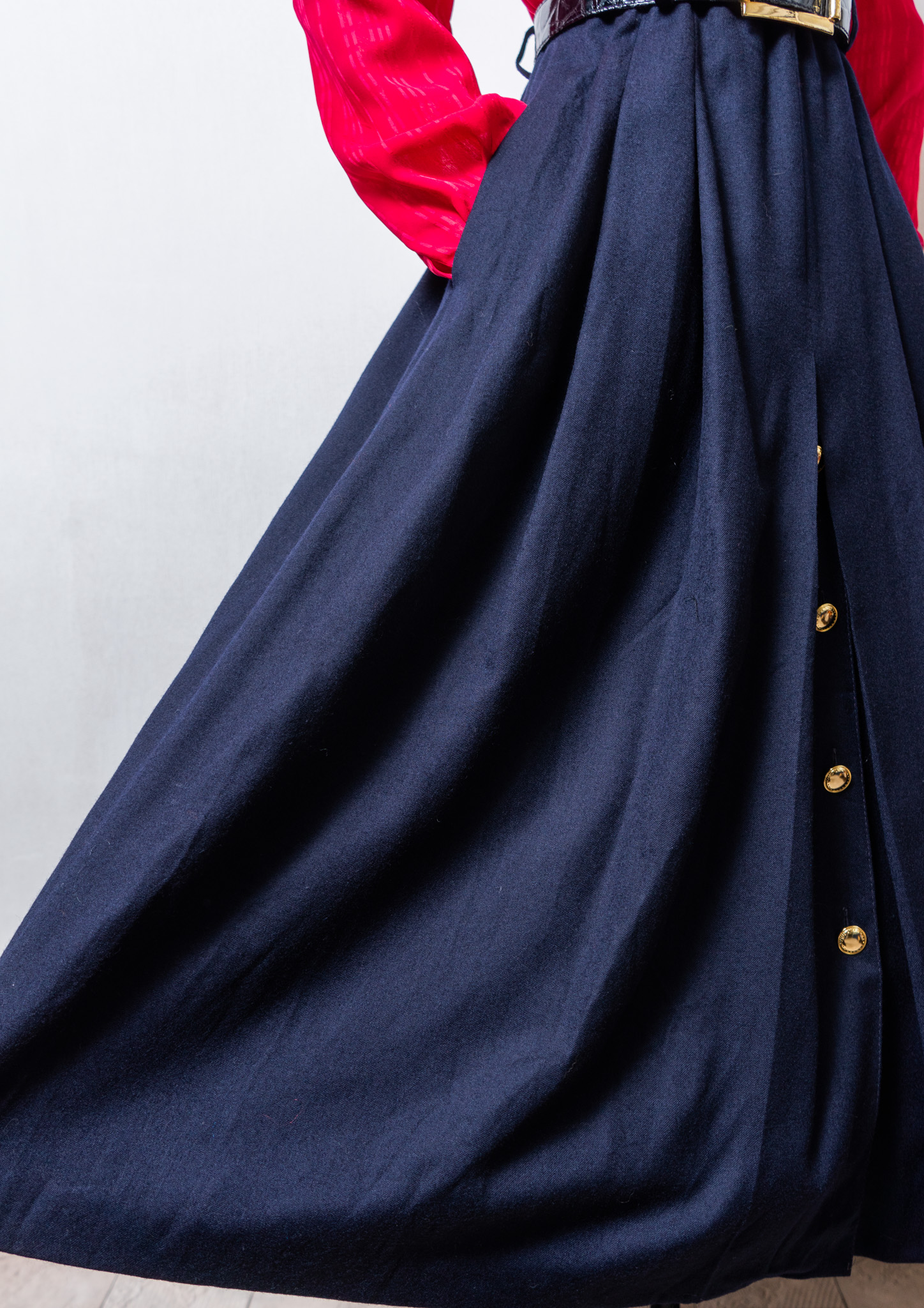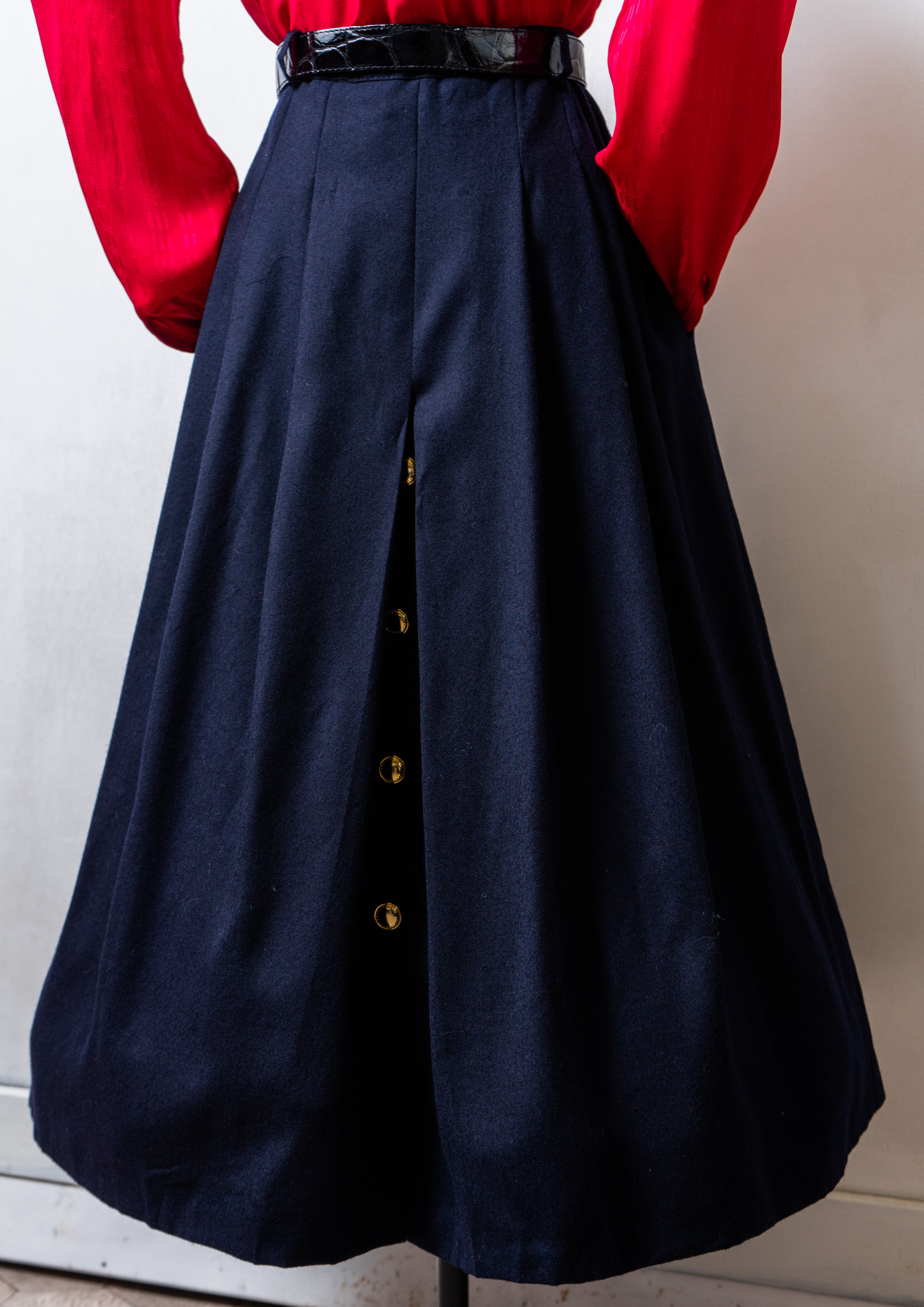 90's Euro Front Uique Big Button Design Check Pattern Brown Tyrol Skirt