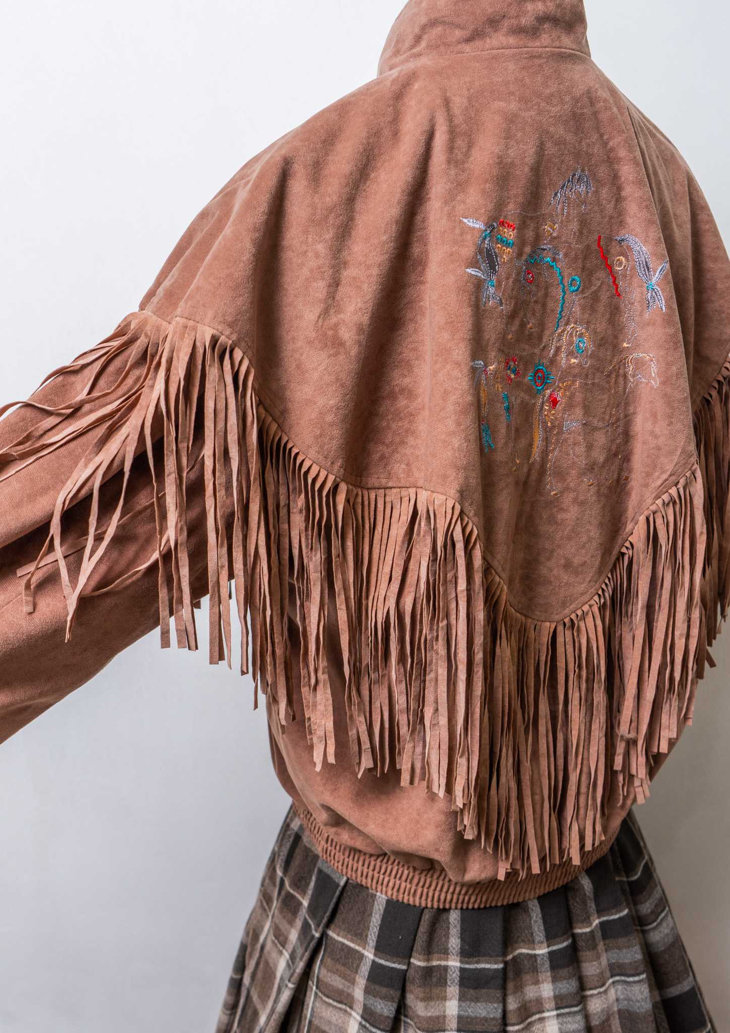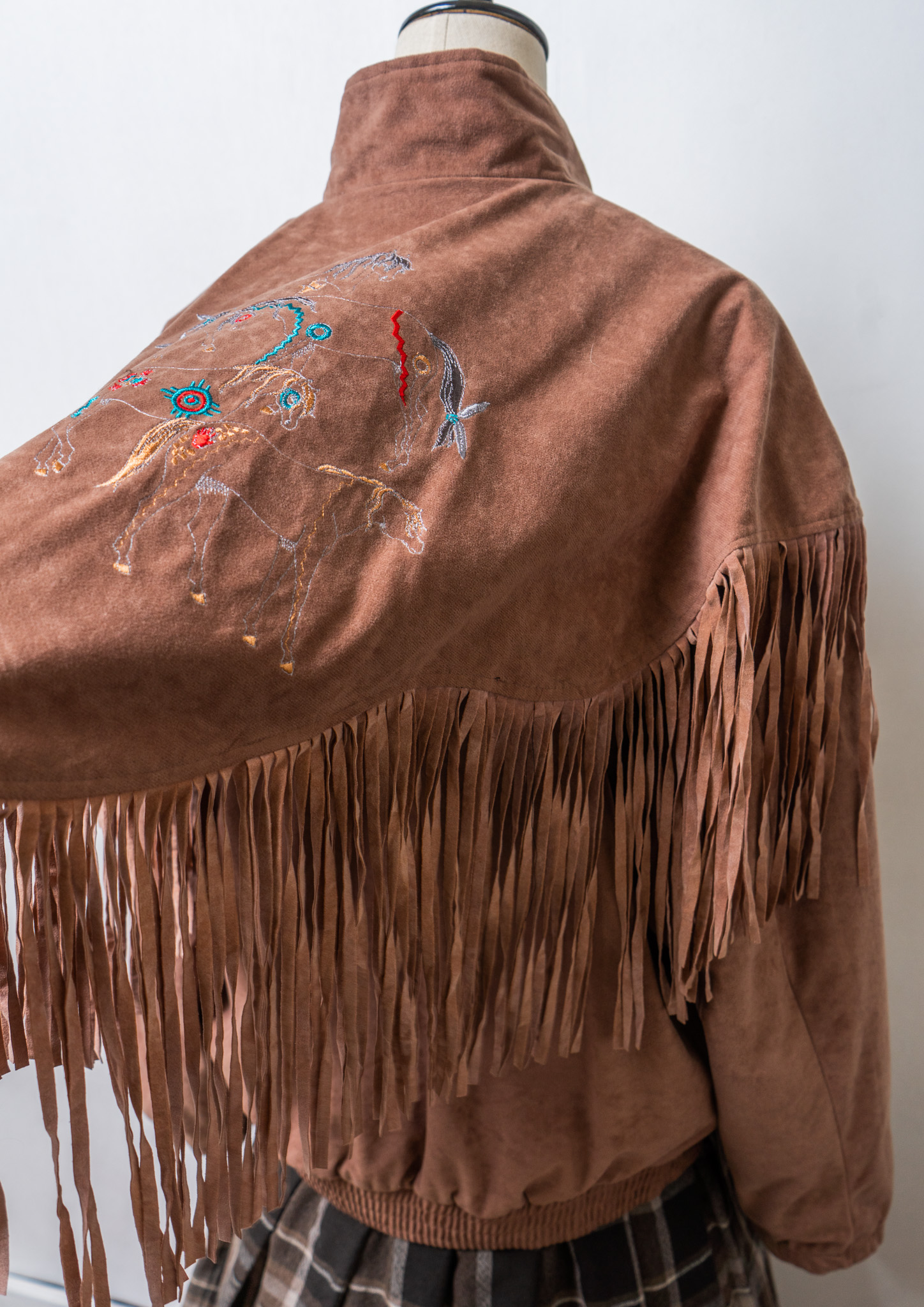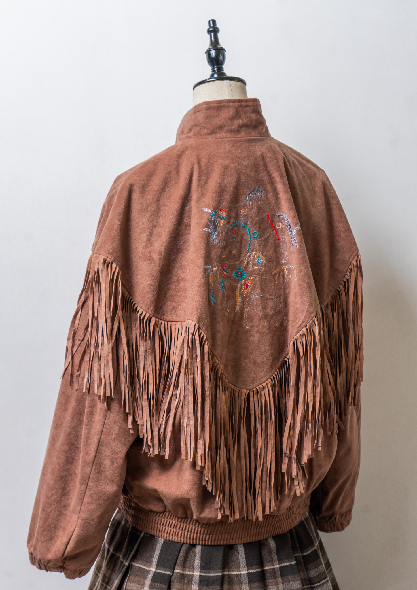 70~80's USA Back Horse Embroidery Design Fringe Jacket