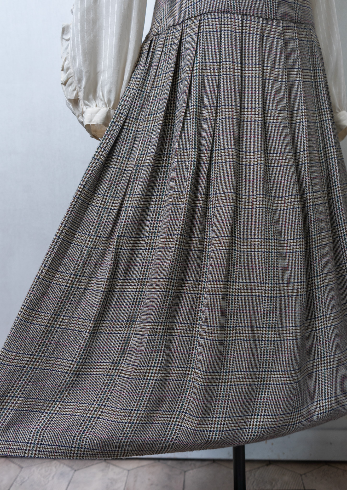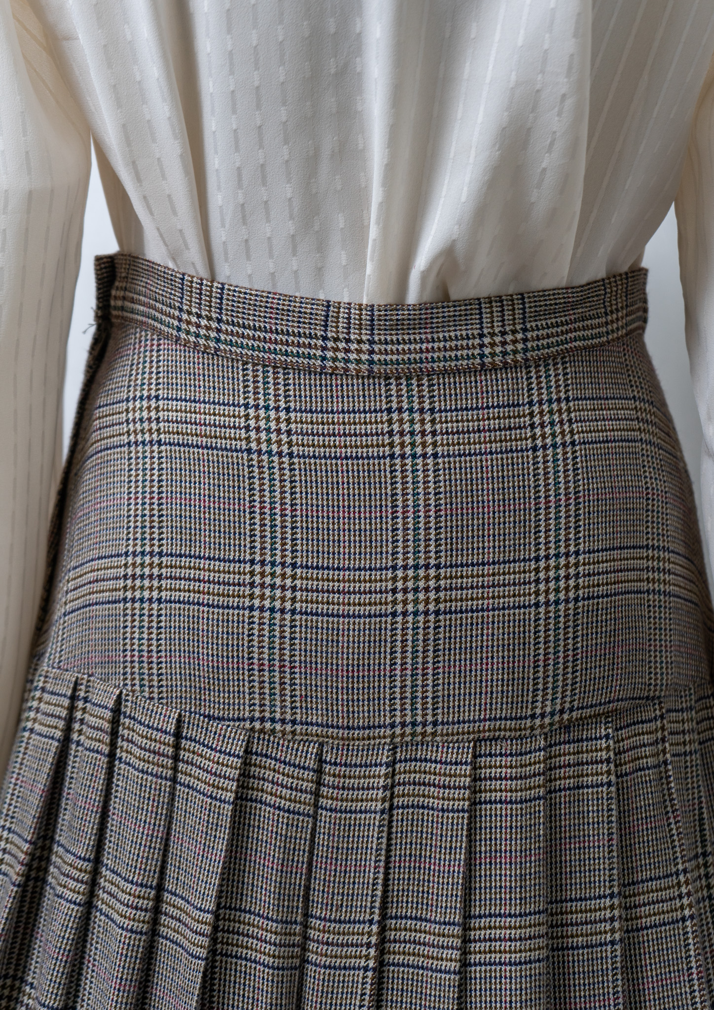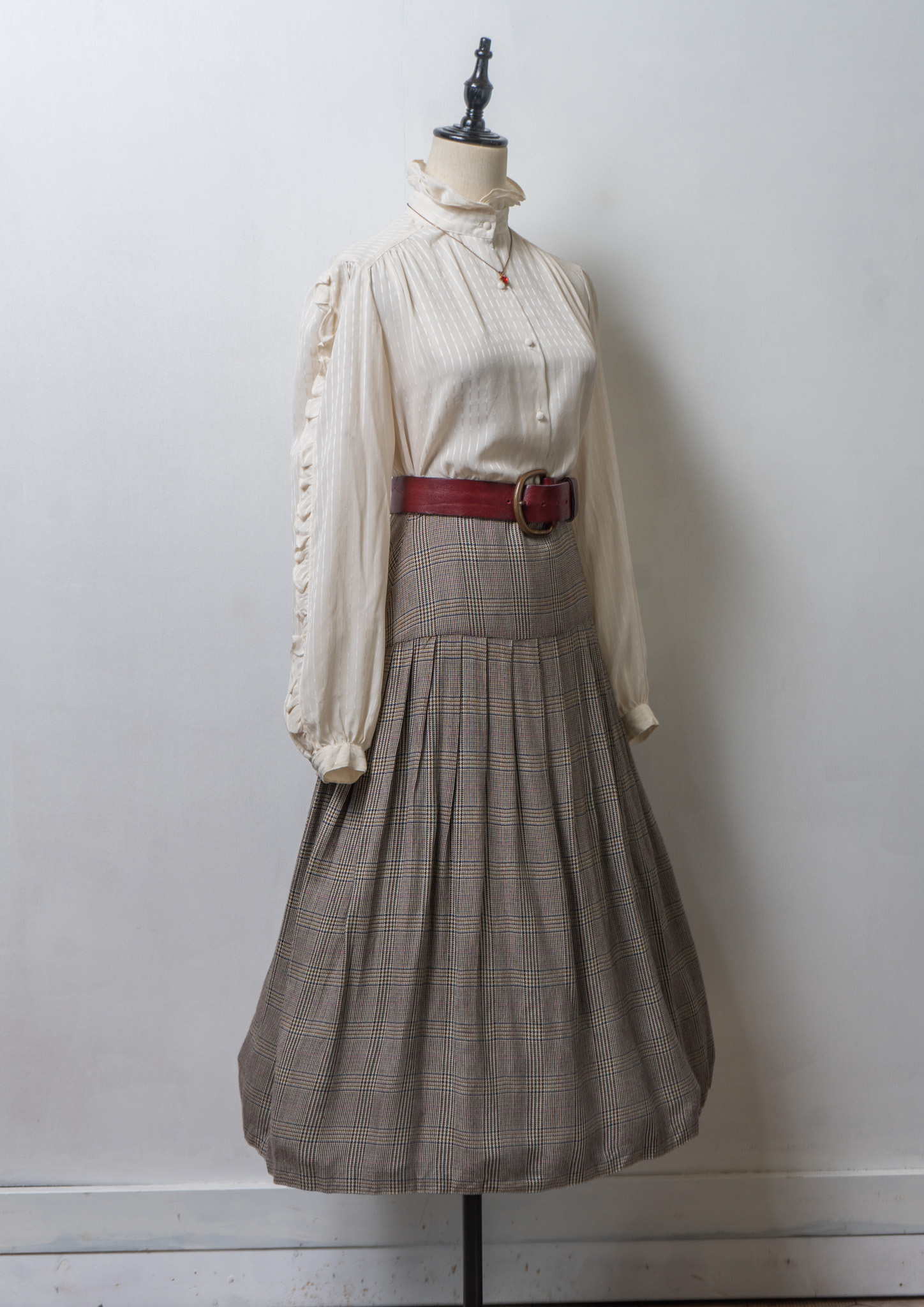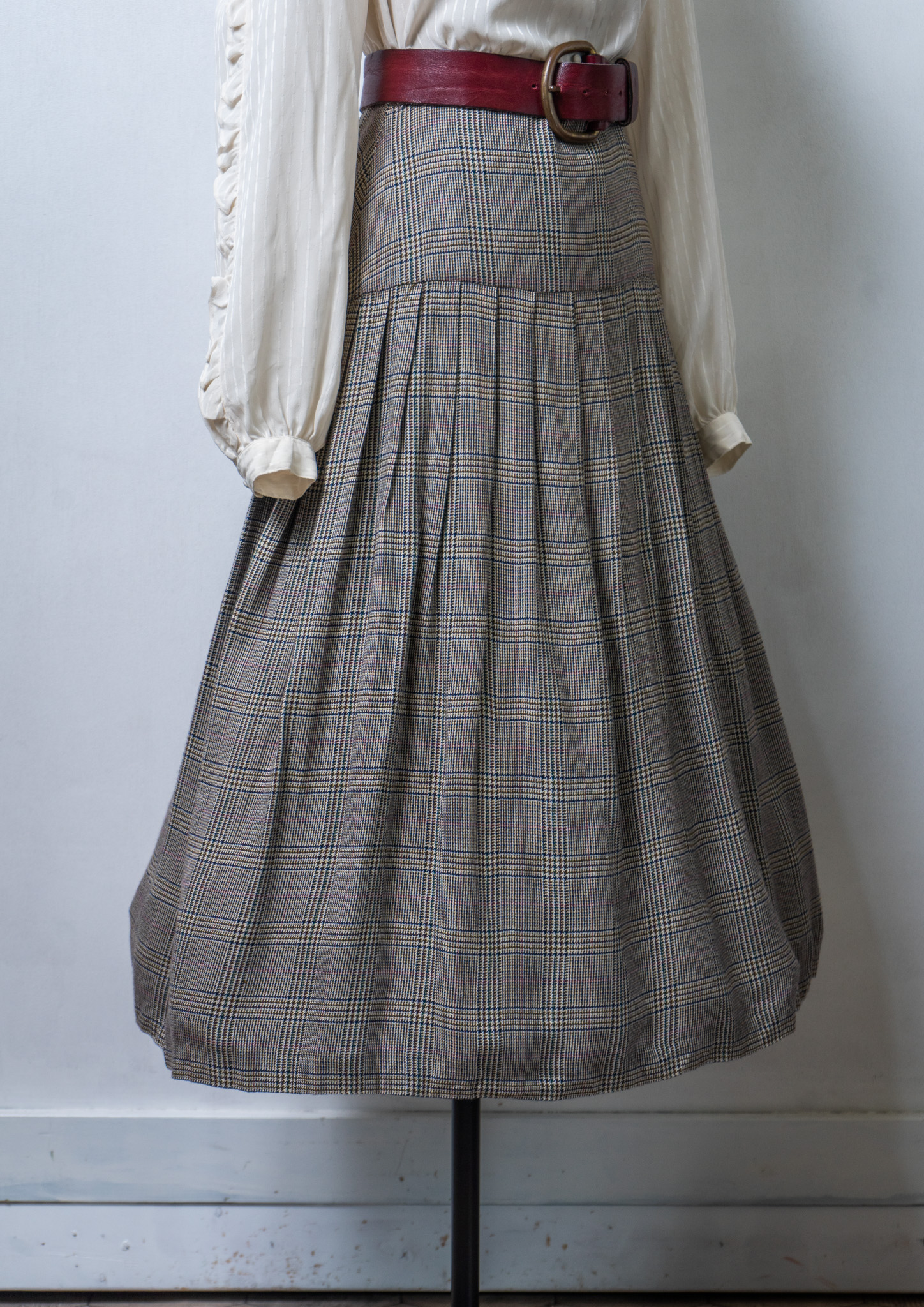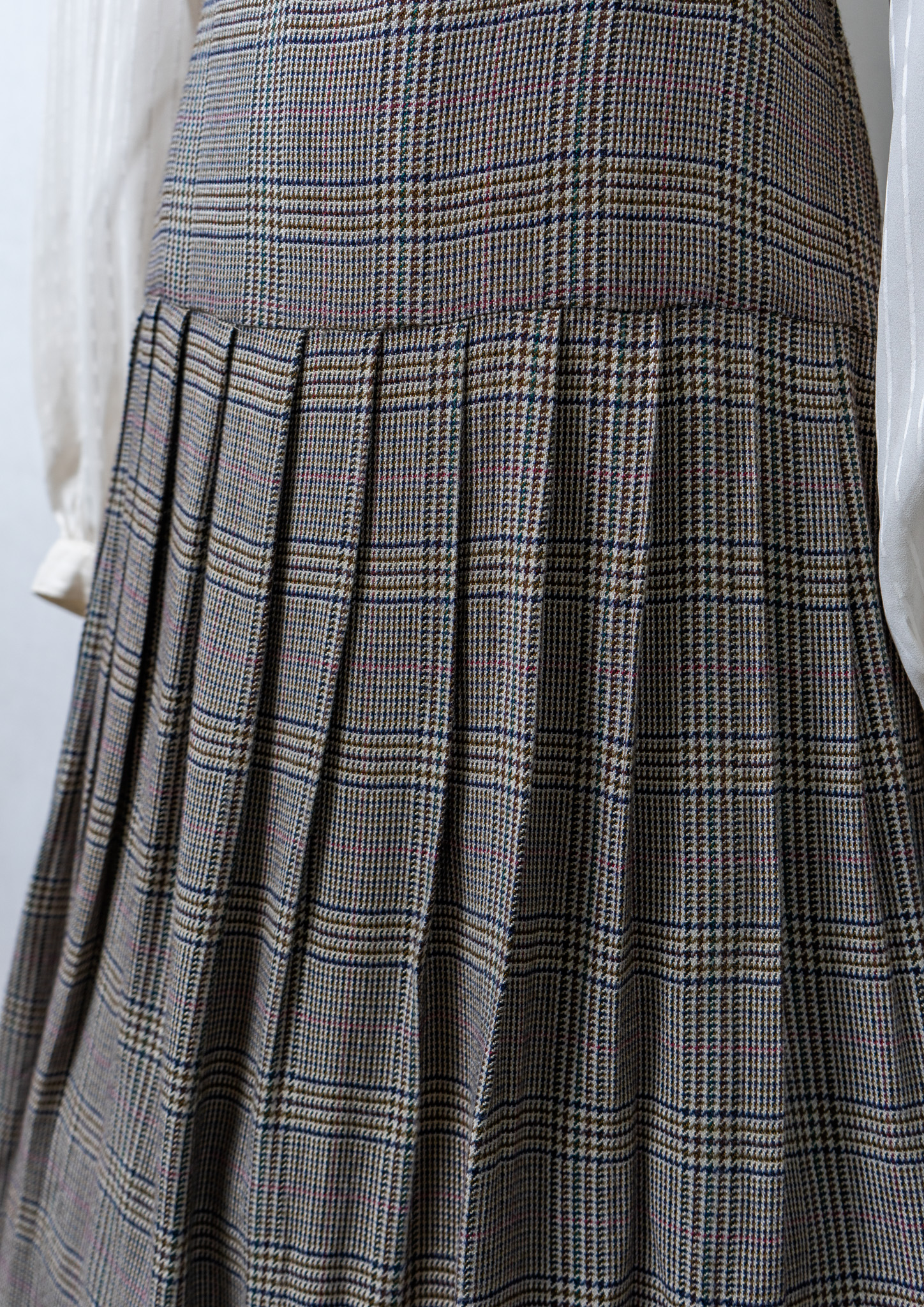 90's Euro Tuck Design Check Pattern Brown Skirt