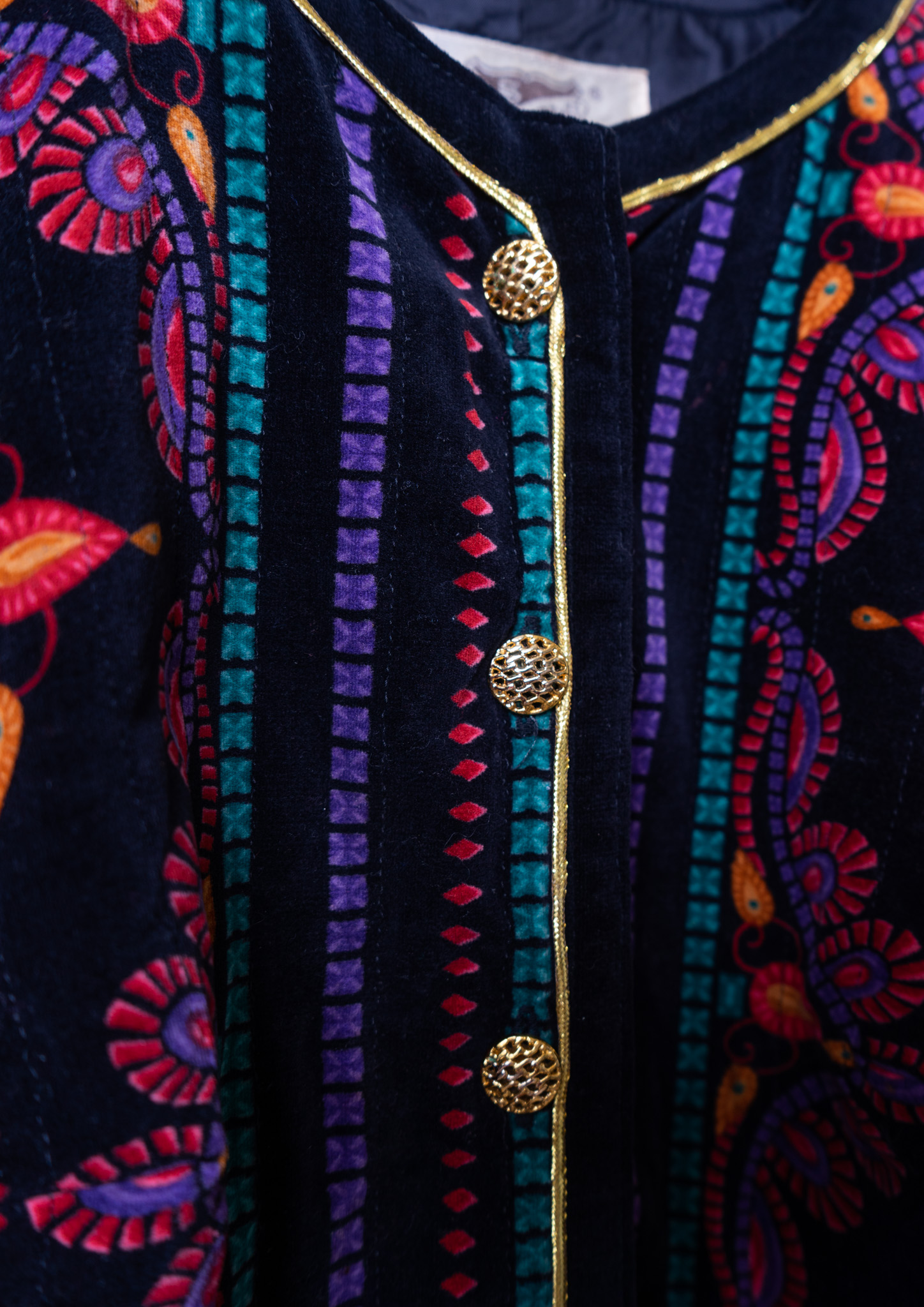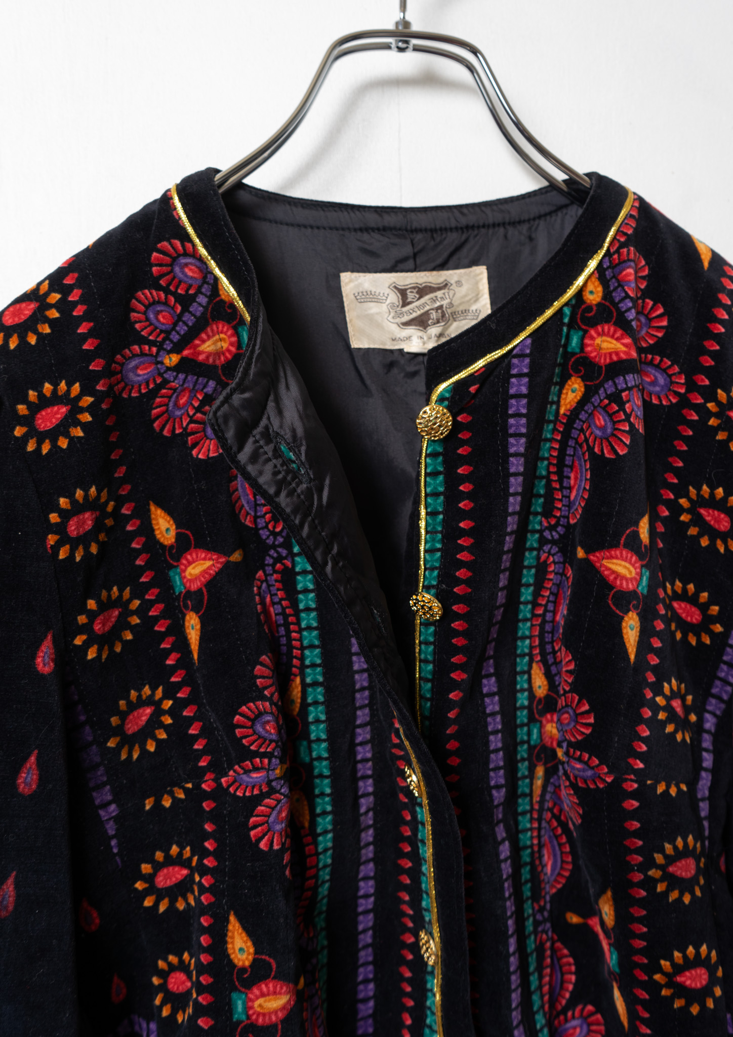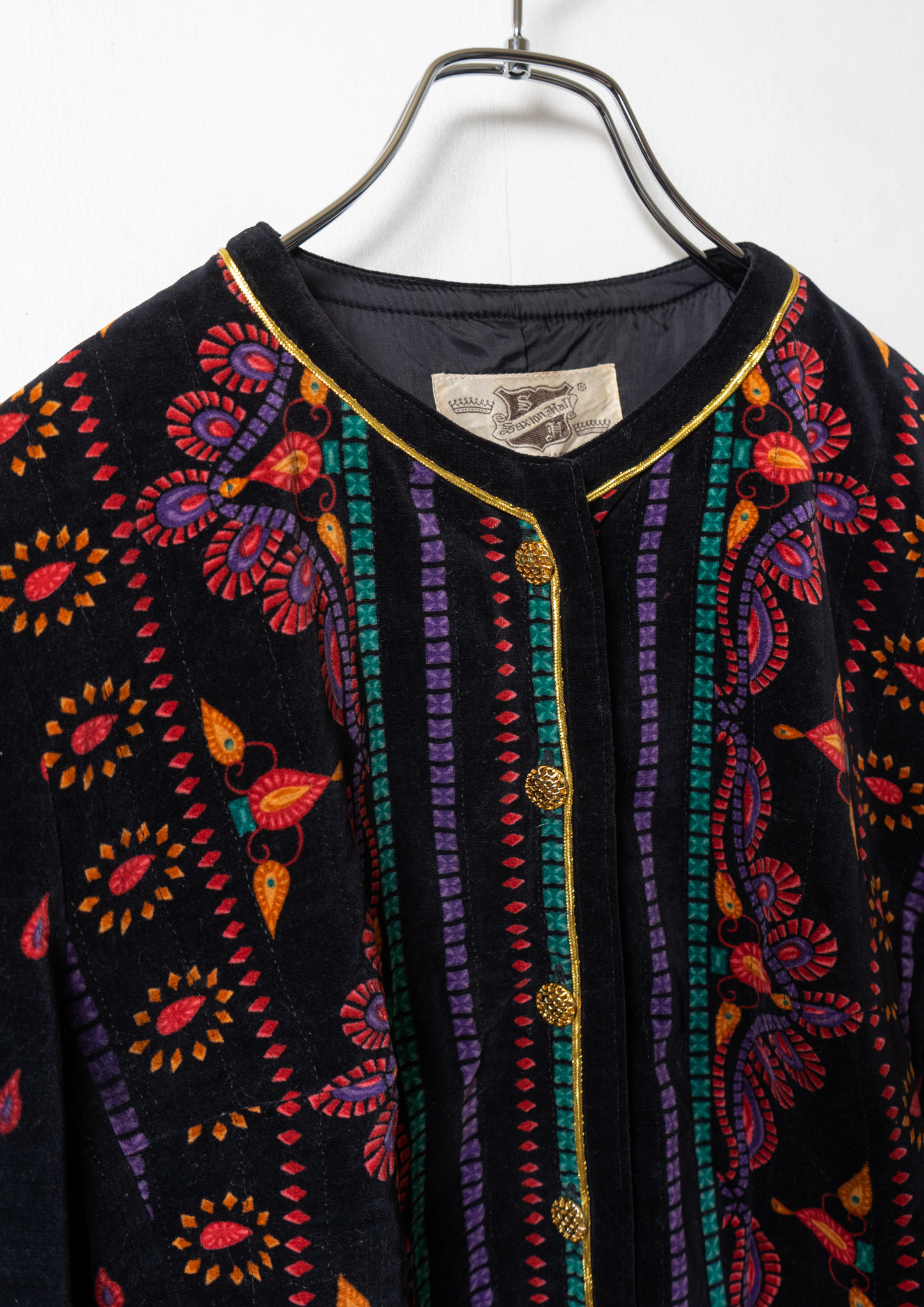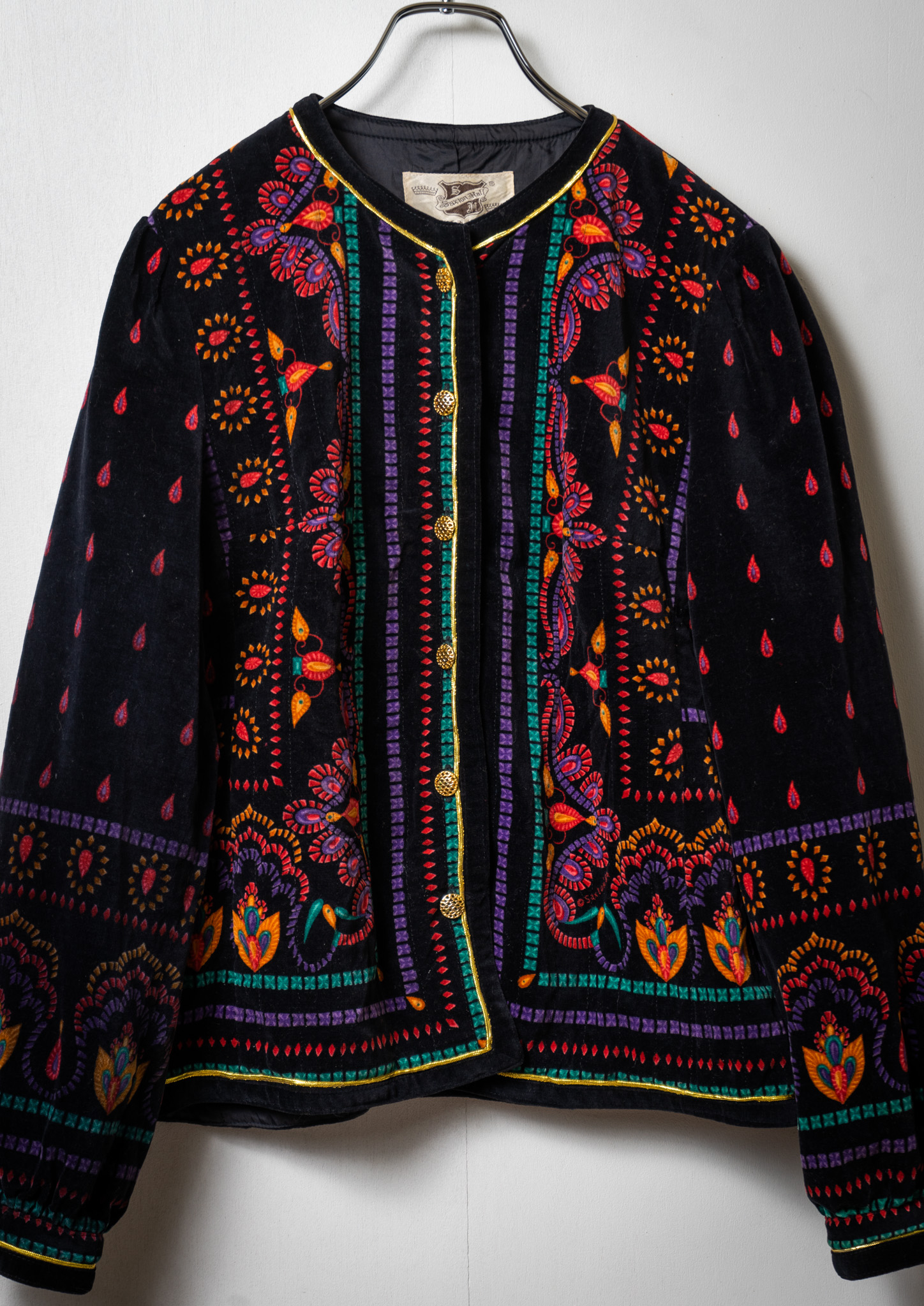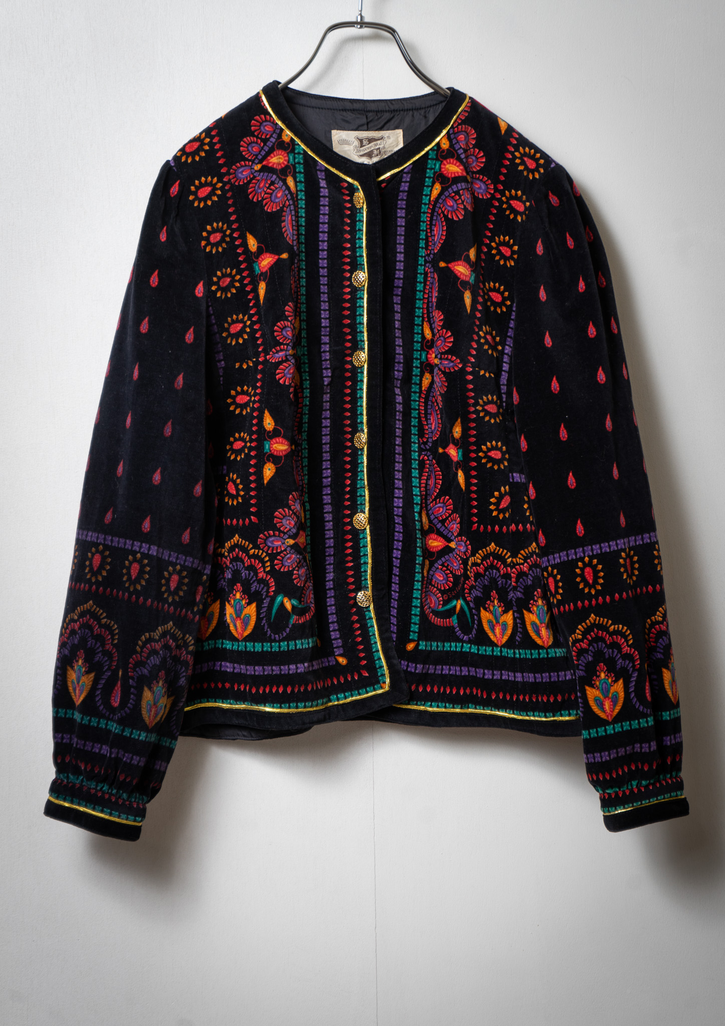 90's Unique Pattern Black Velvet Jaket