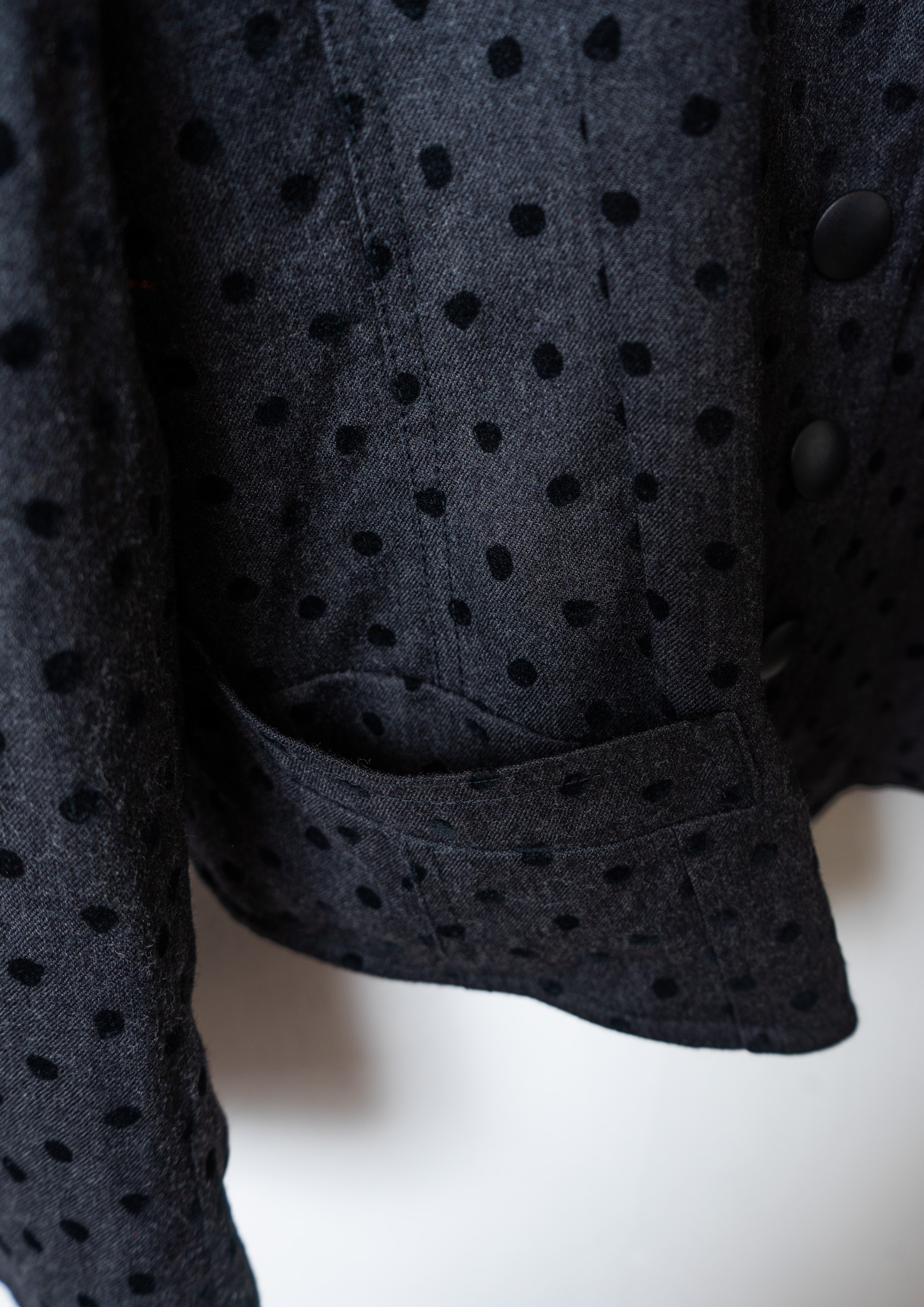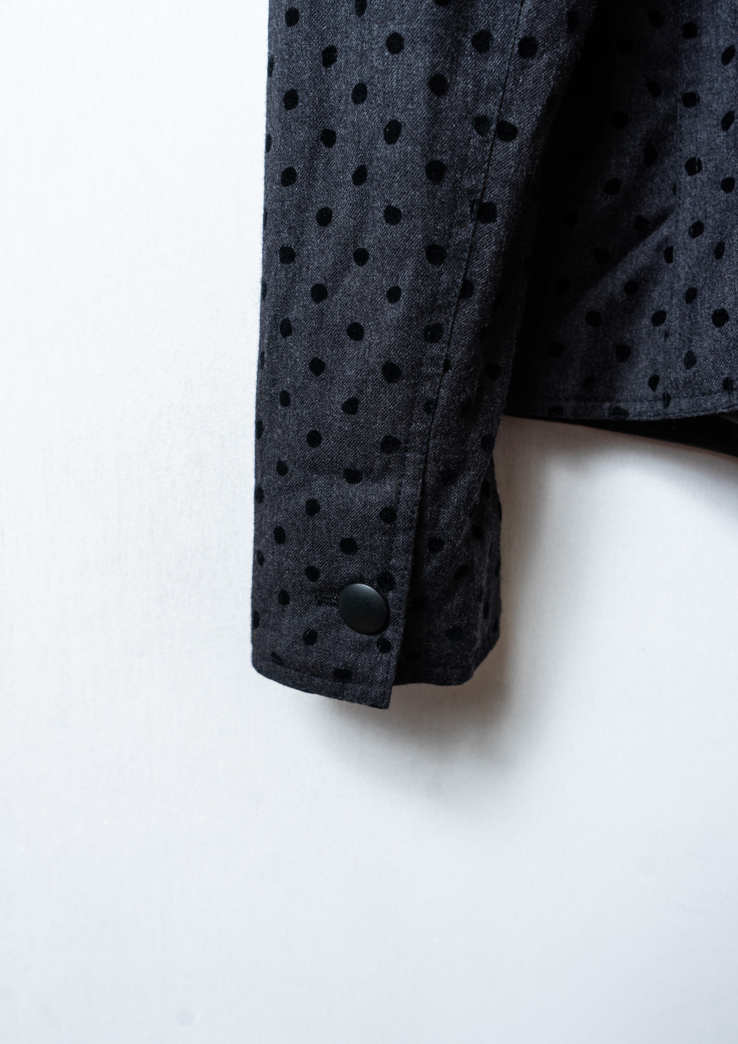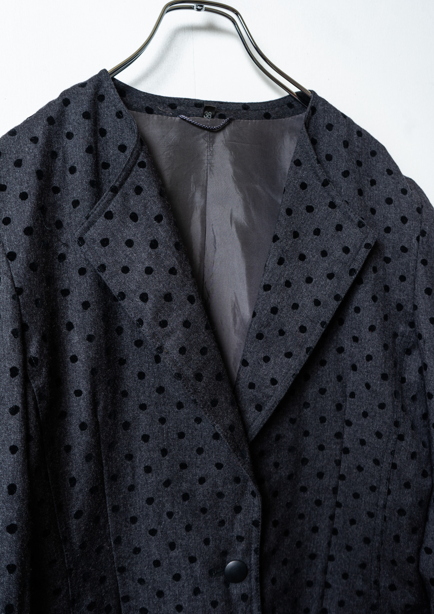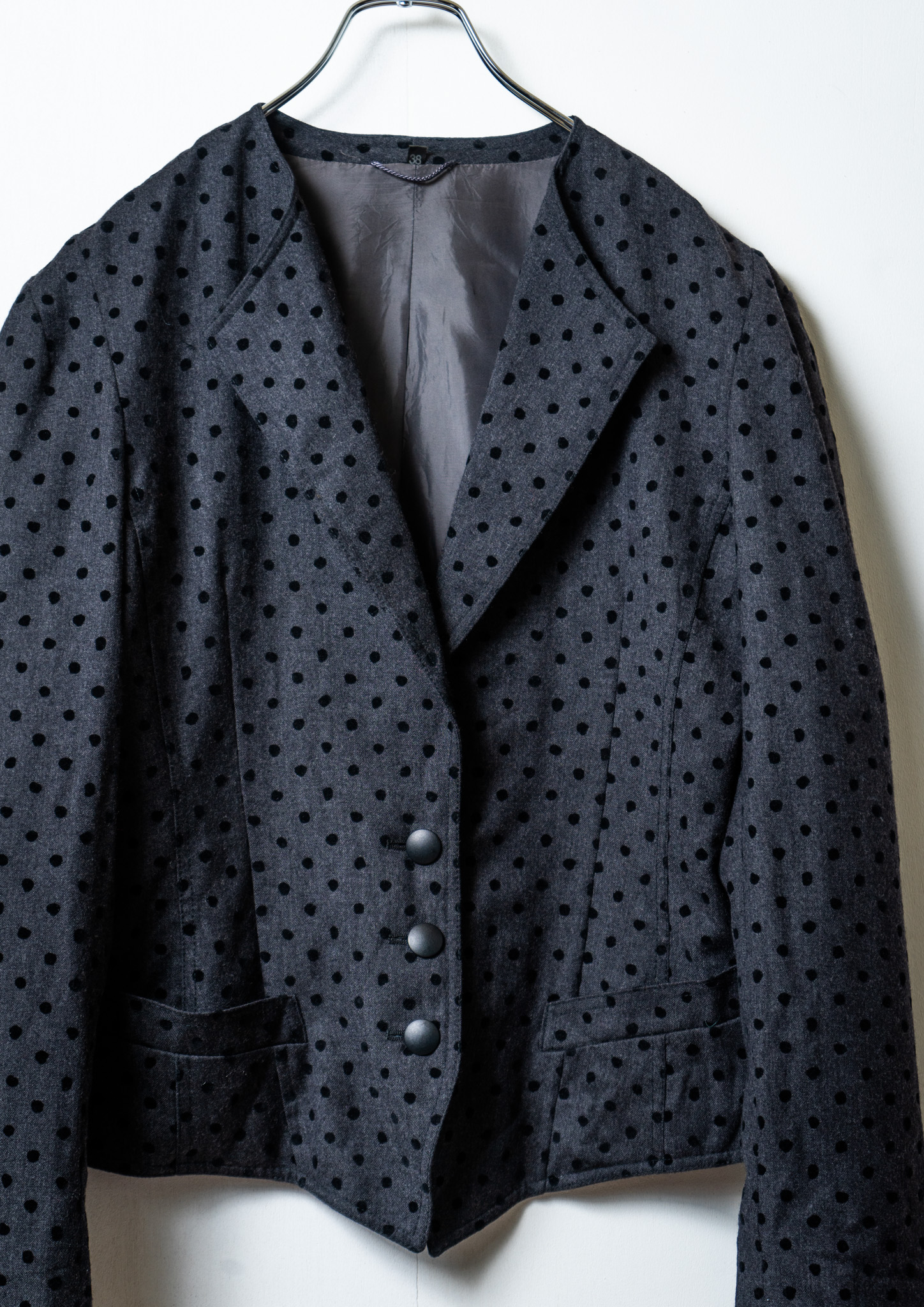80~90's Euro Double Pocket Design Flocky Dot Pattern Black Jacket