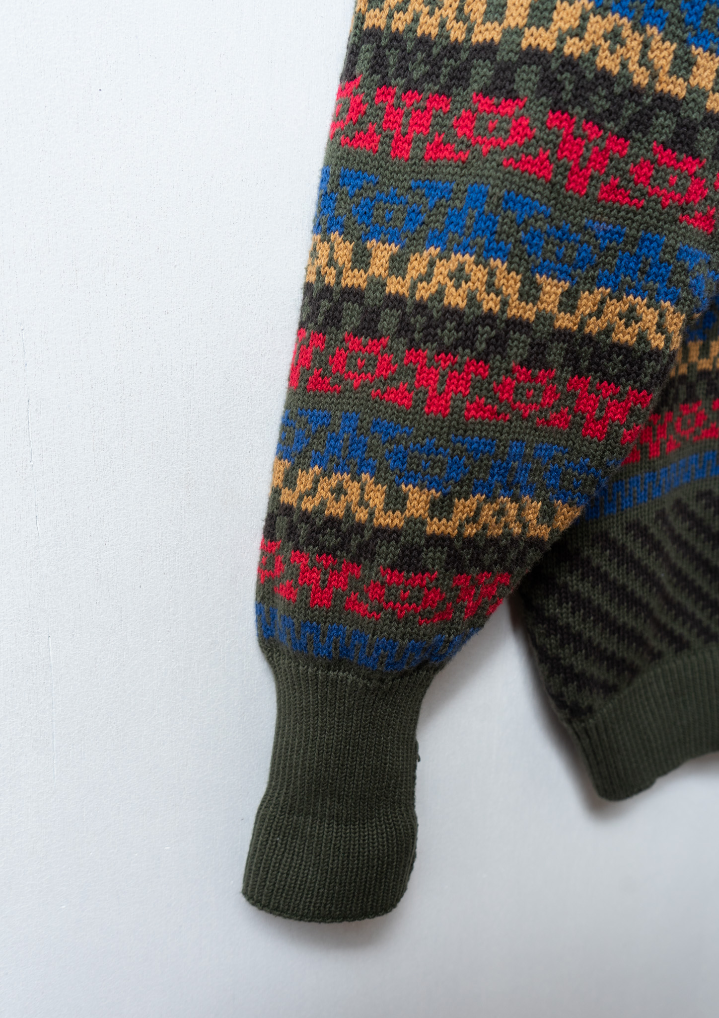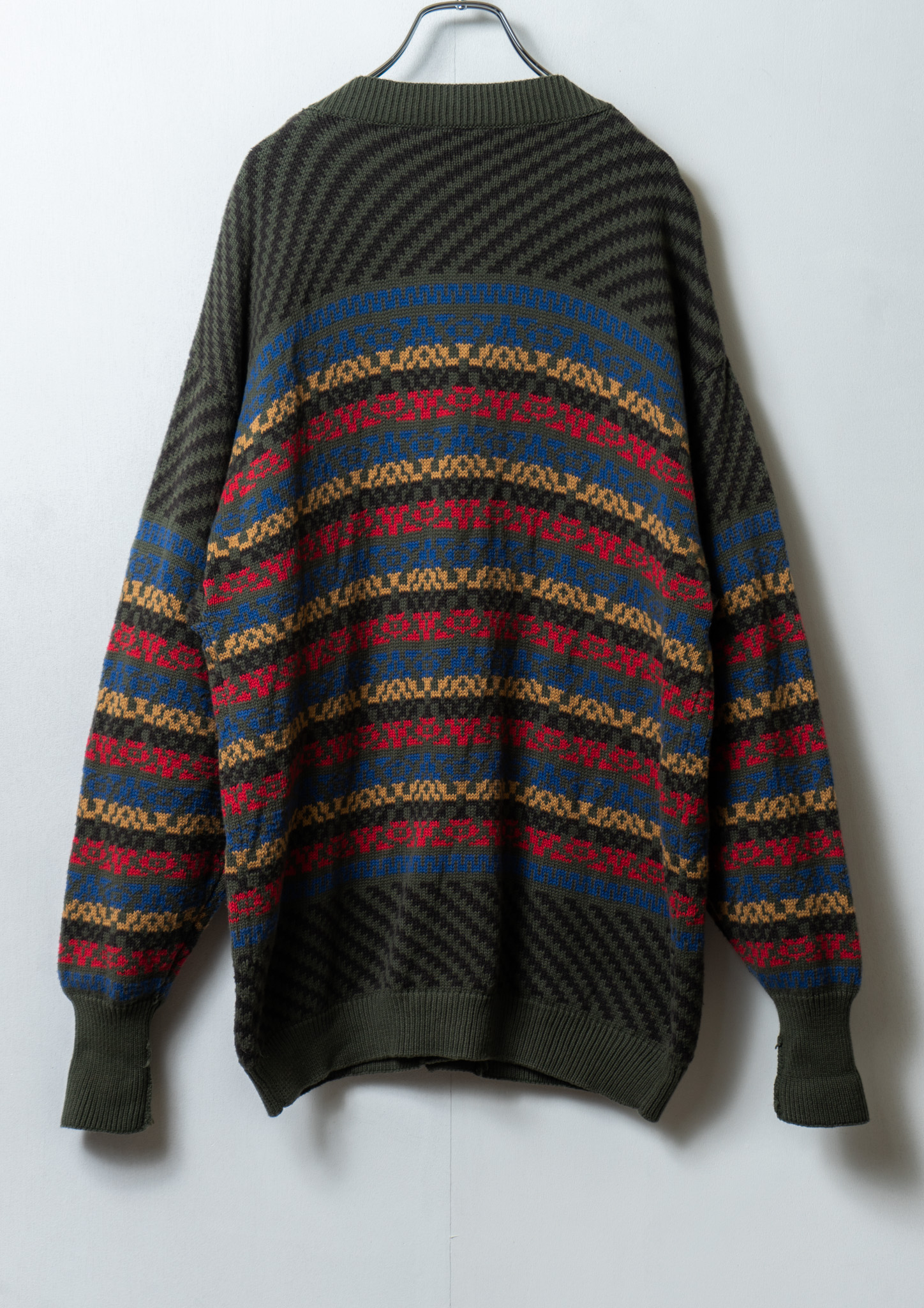 90's Mosaic Like Pattern Olive Knit Cardigan