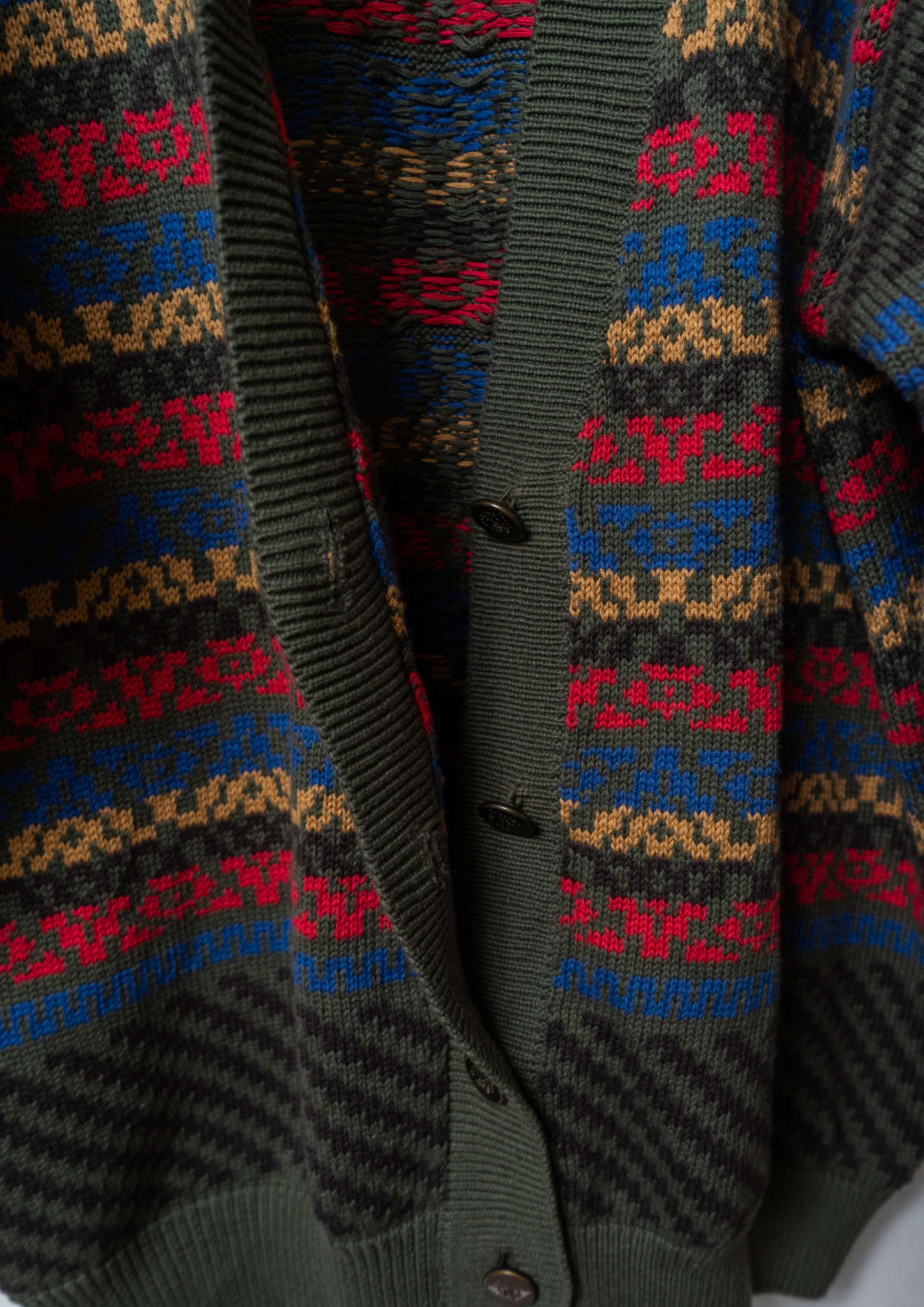 80~90's Art Pattern Moss Green Cardigan