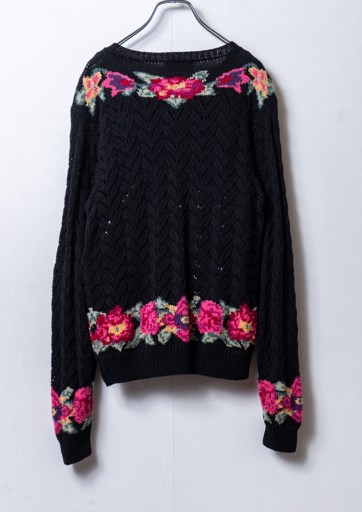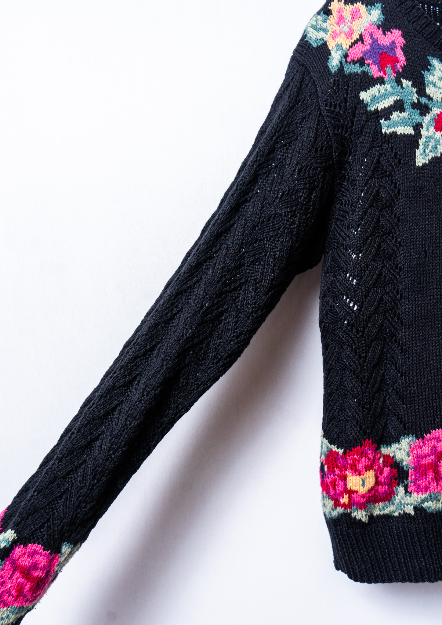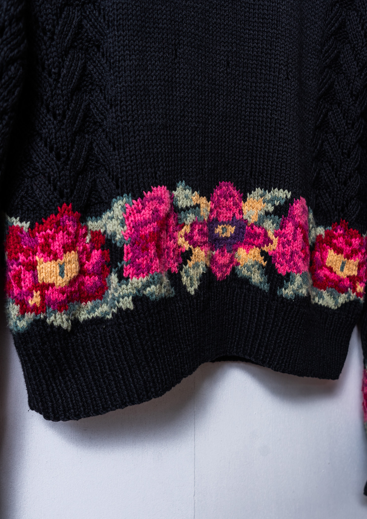 80's Botanical Cord Embroidery Double Pocket Design Angora Black Cardigan