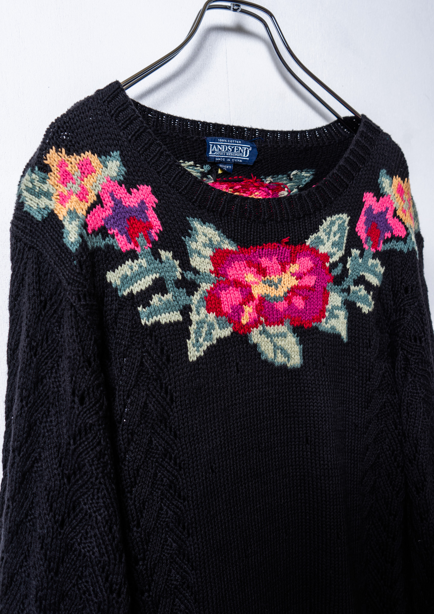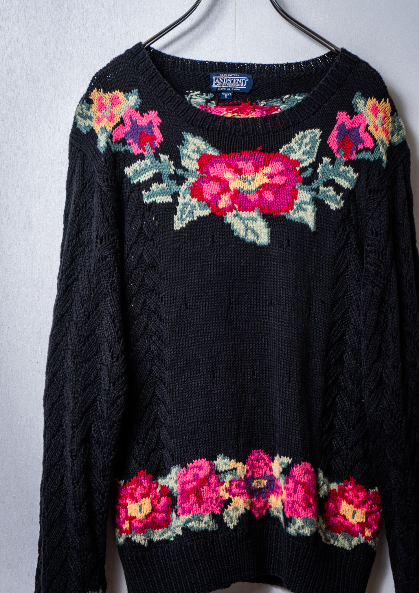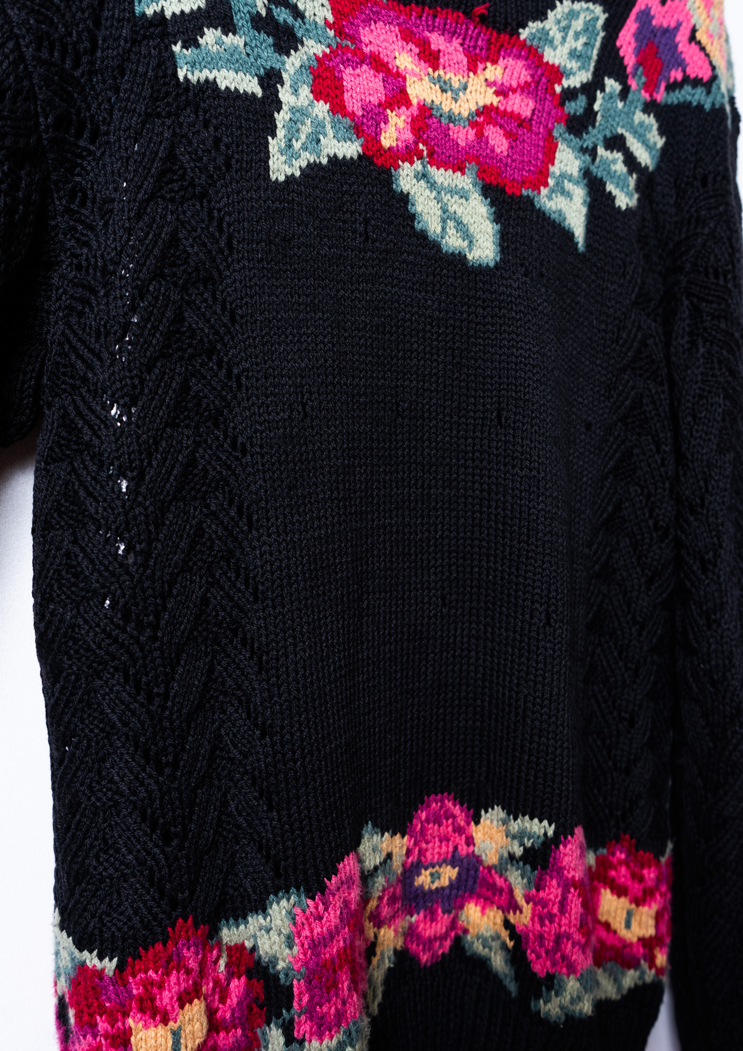 80's Botanical Cord Embroidery Double Pocket Design Angora Black Cardigan
