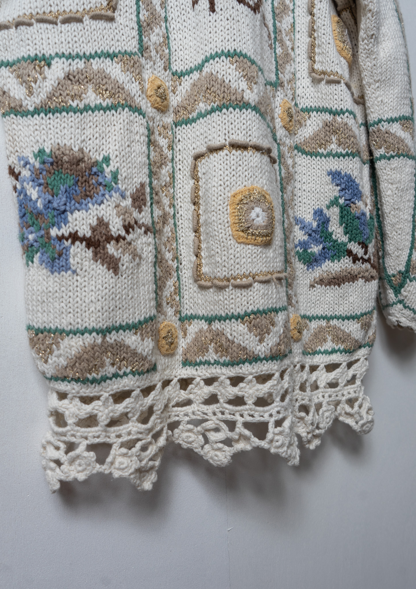 80's Austria Double Pocket × Sheep Embroidery Design Tyrol Cardigan