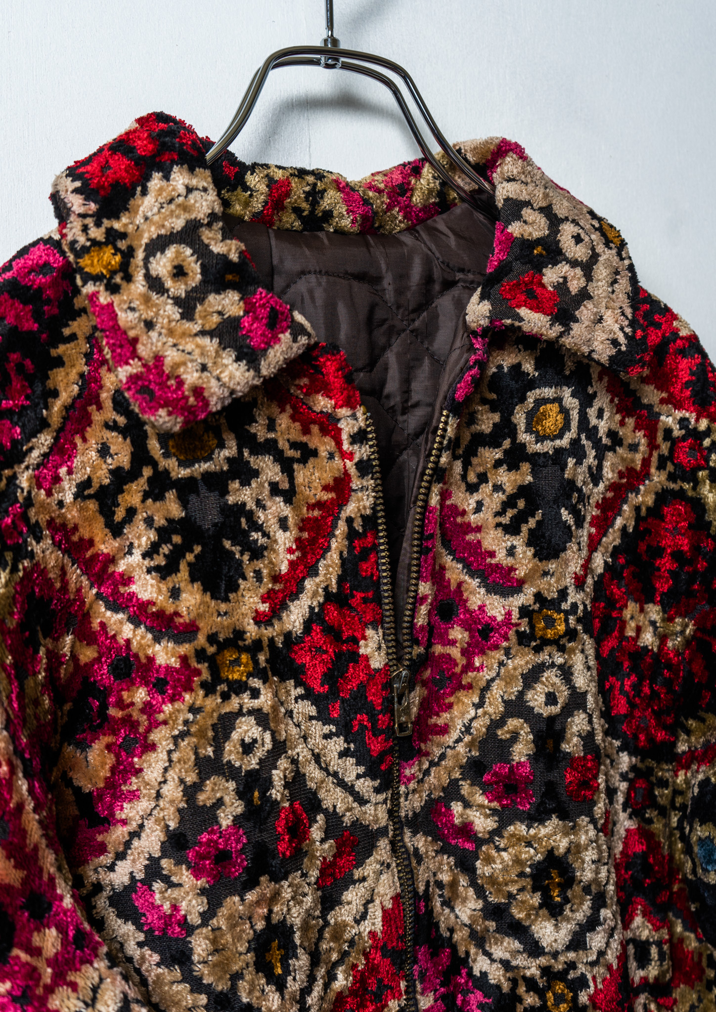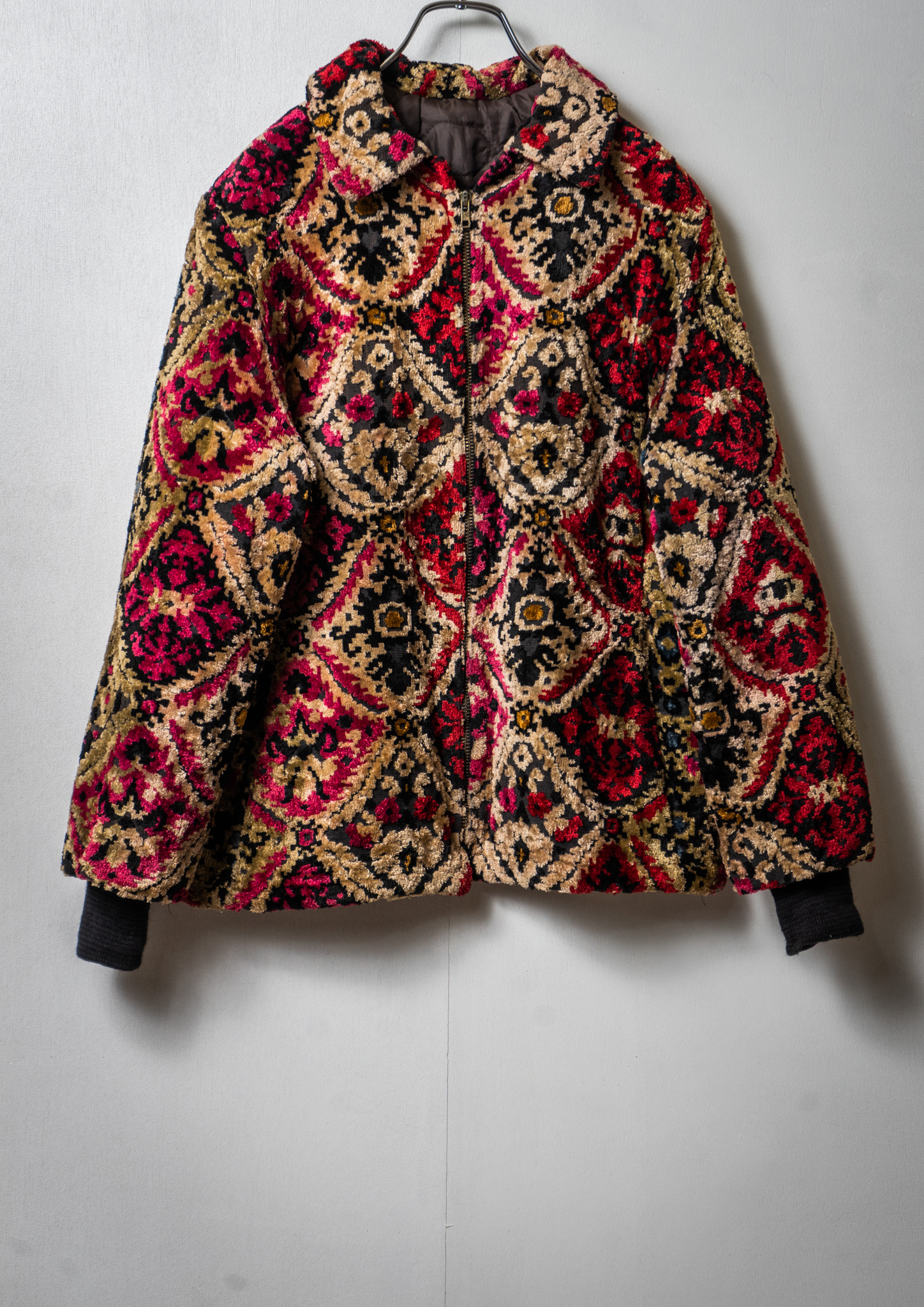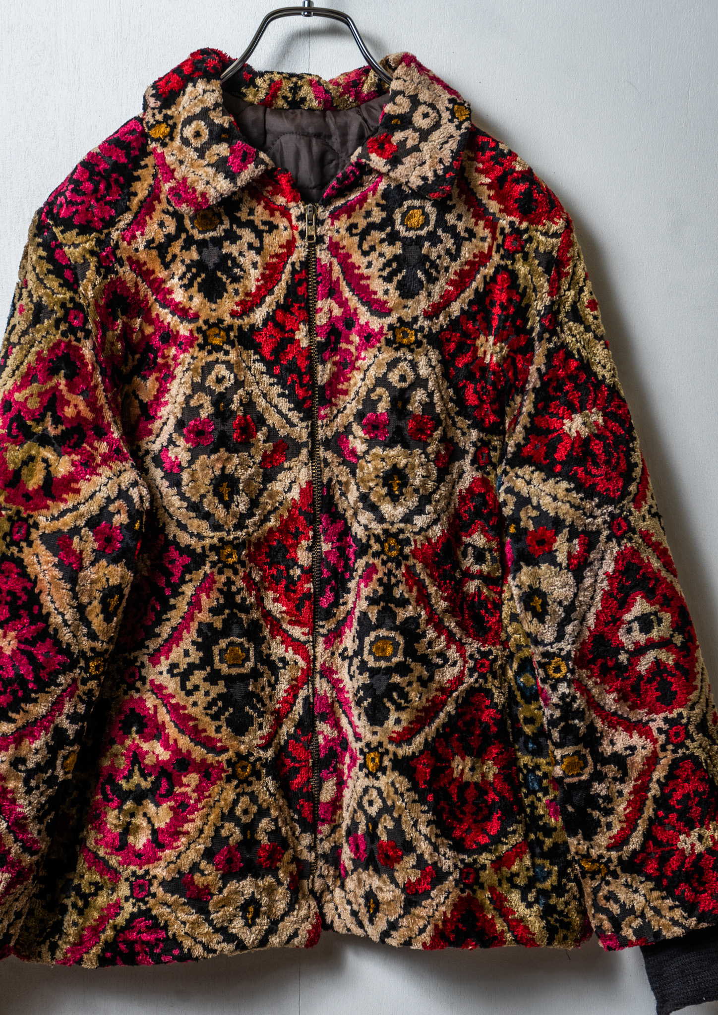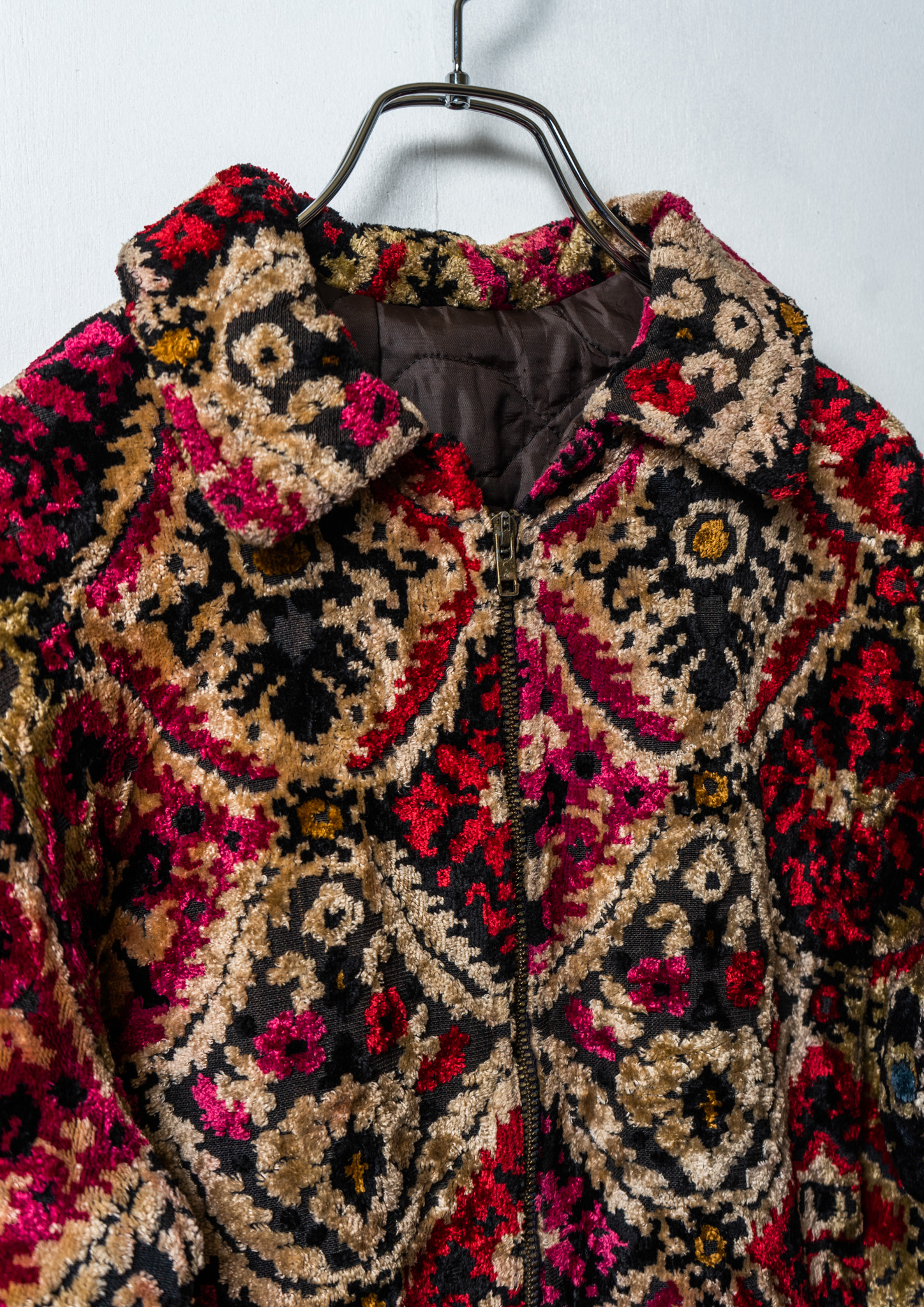 80's Double Pocket Design Botanical Crazy Glossy Pattern Jacket