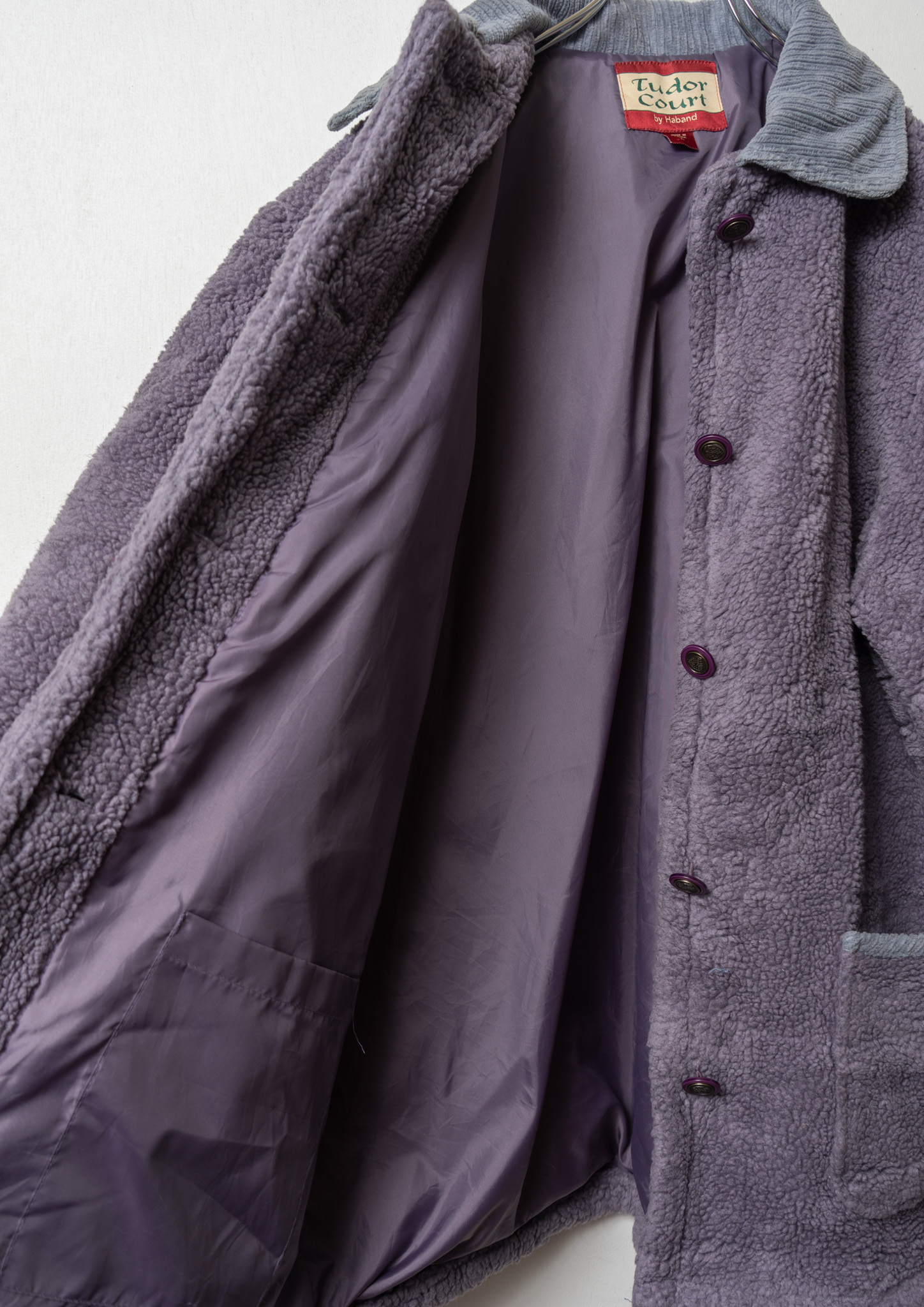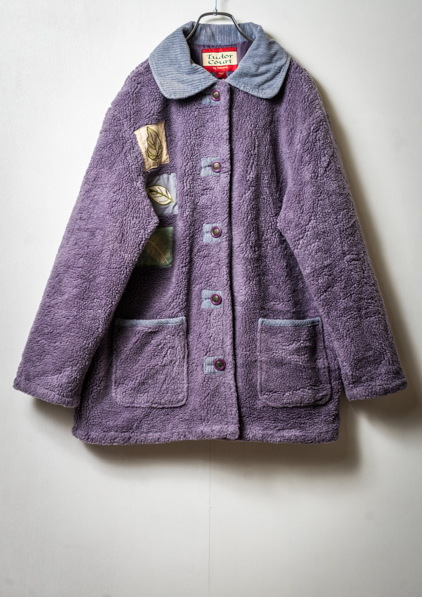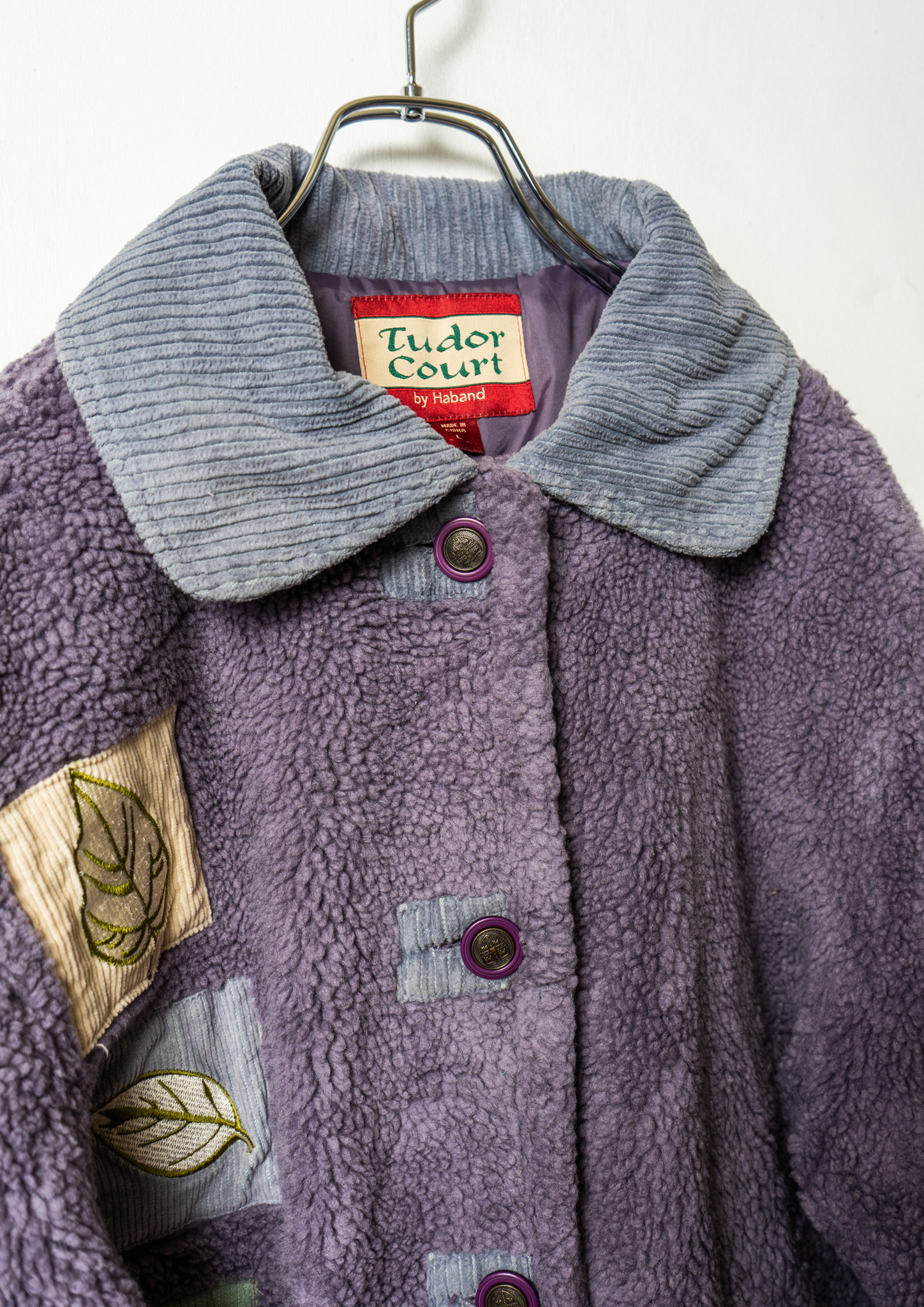 Leaf Embroidery × Double Pocket Design Point Corduroy Pattern Light Purple Boa Jacket