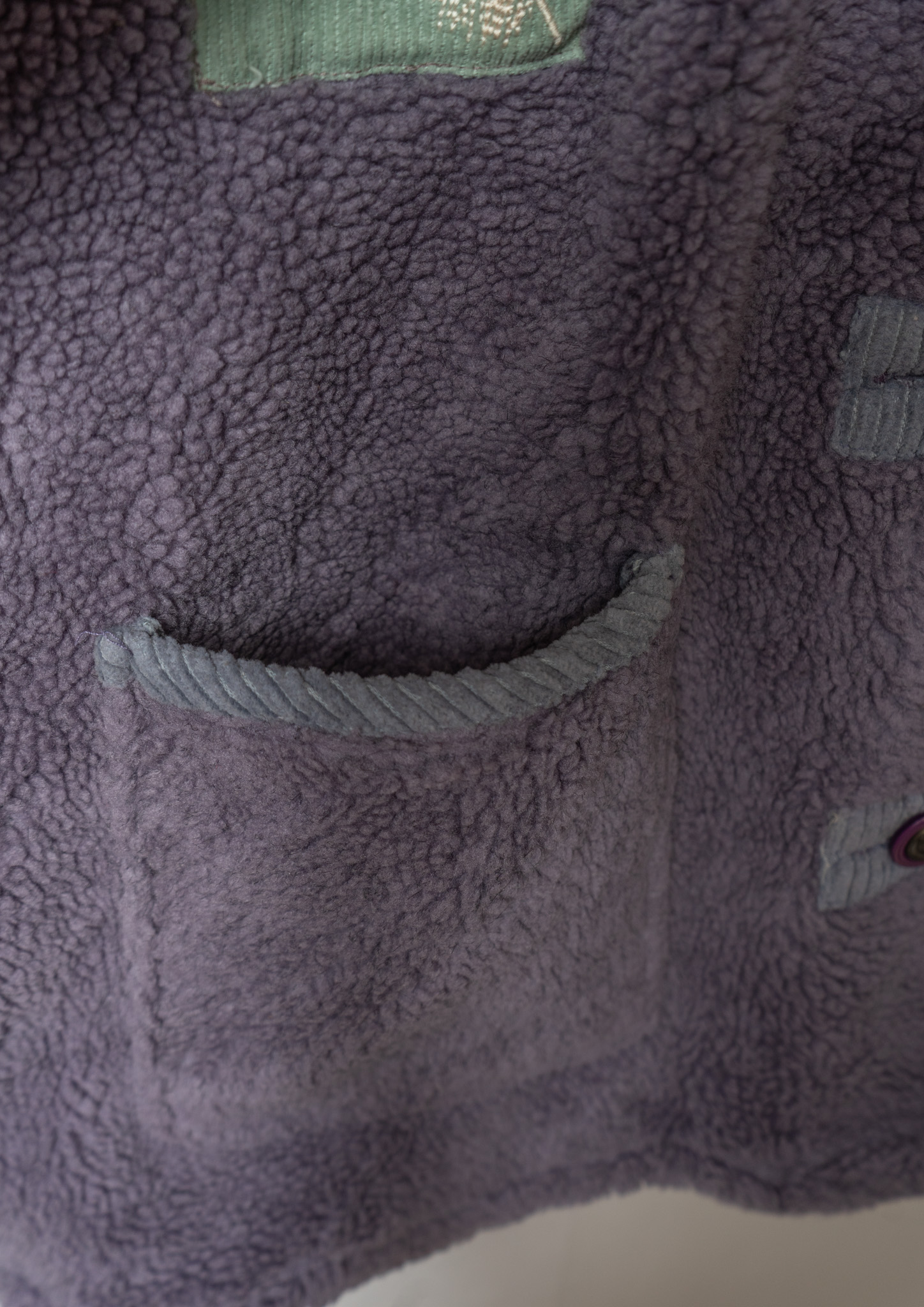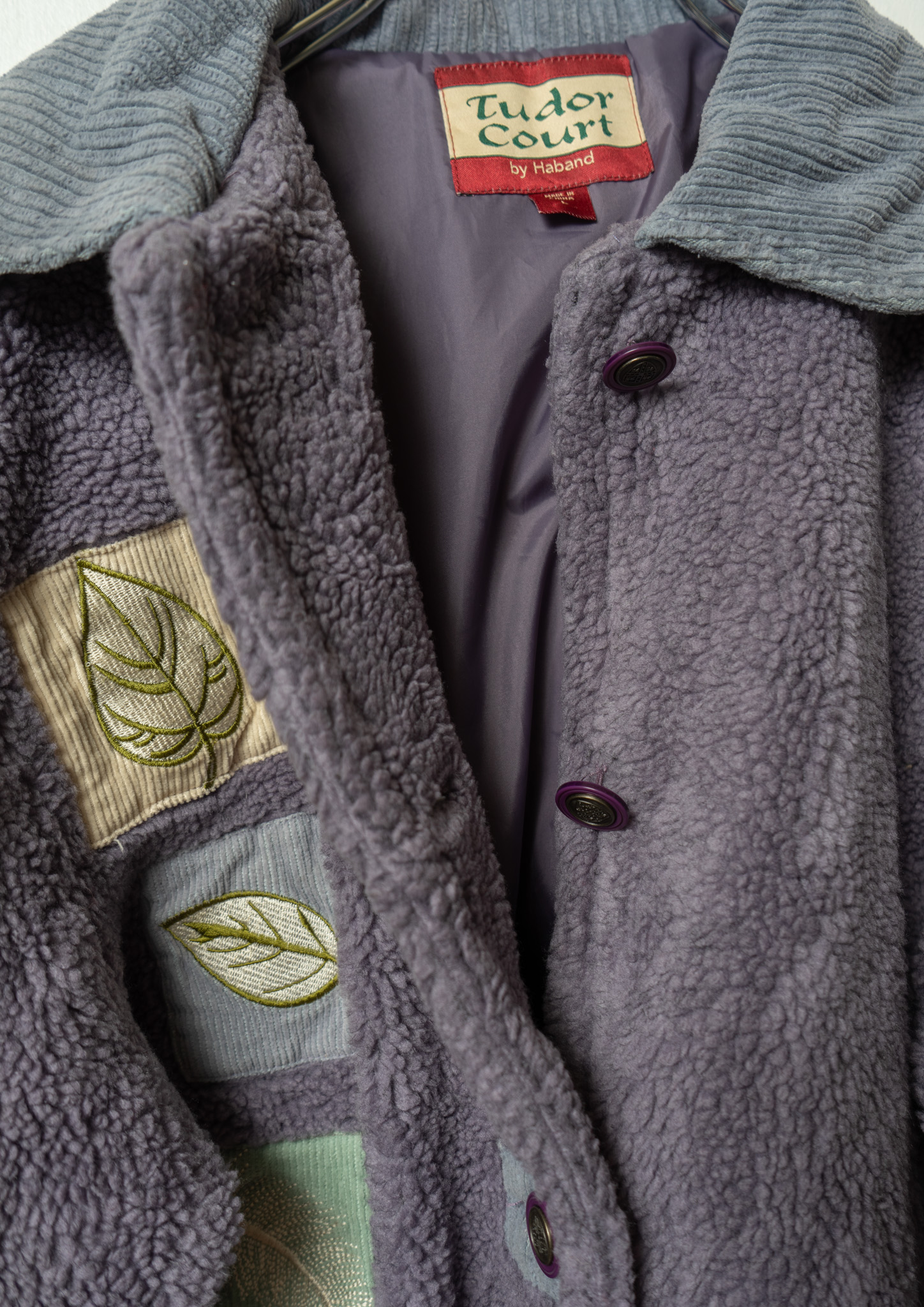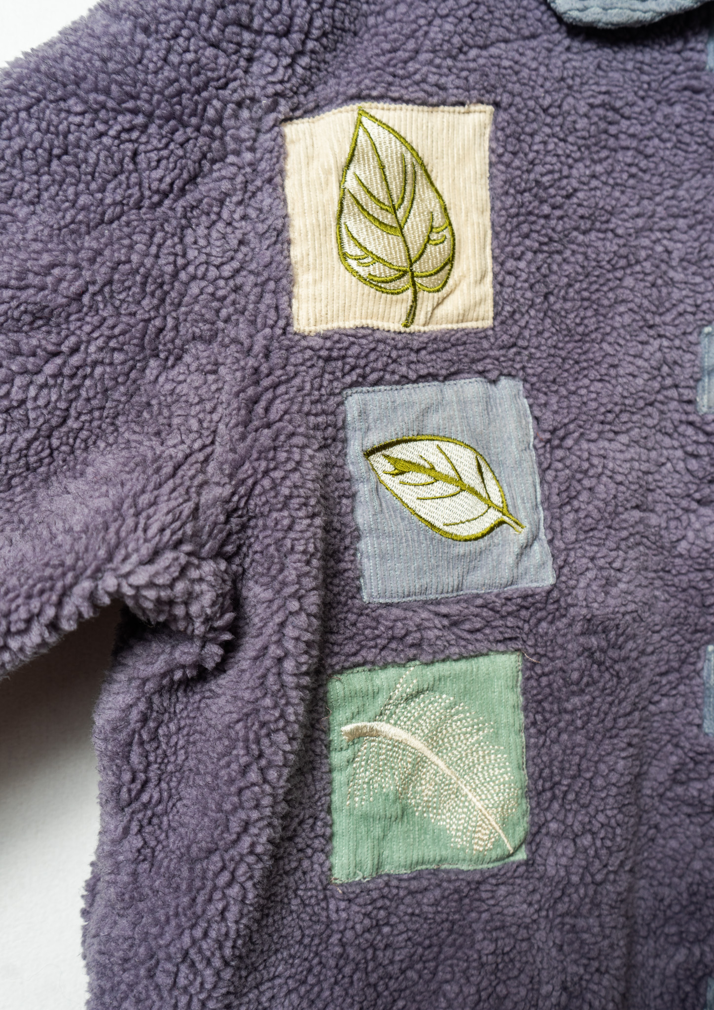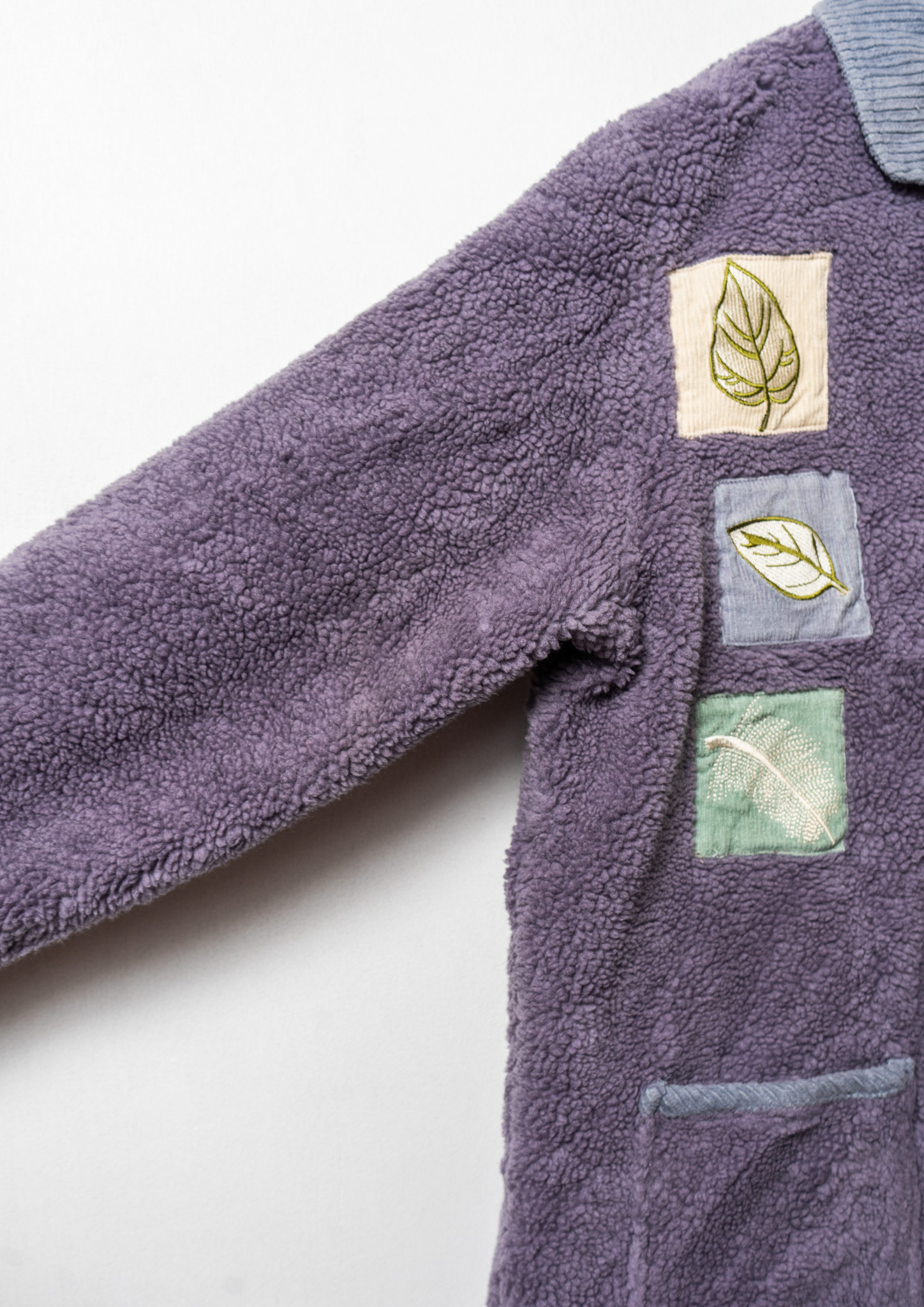 Leaf Embroidery × Double Pocket Design Point Corduroy Pattern Light Purple Boa Jacket