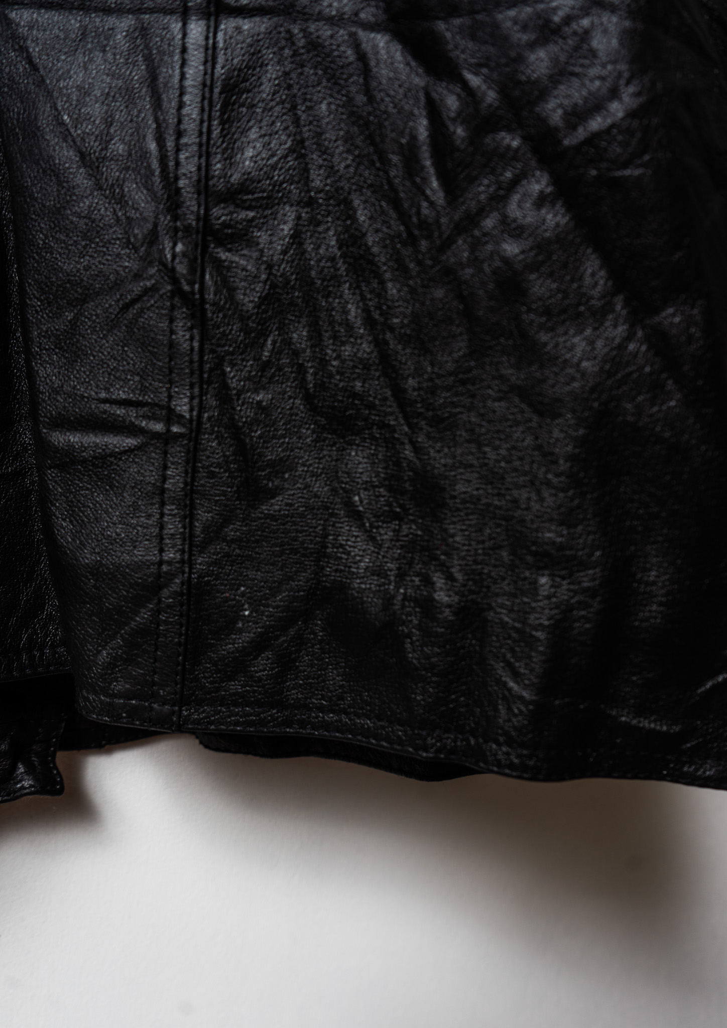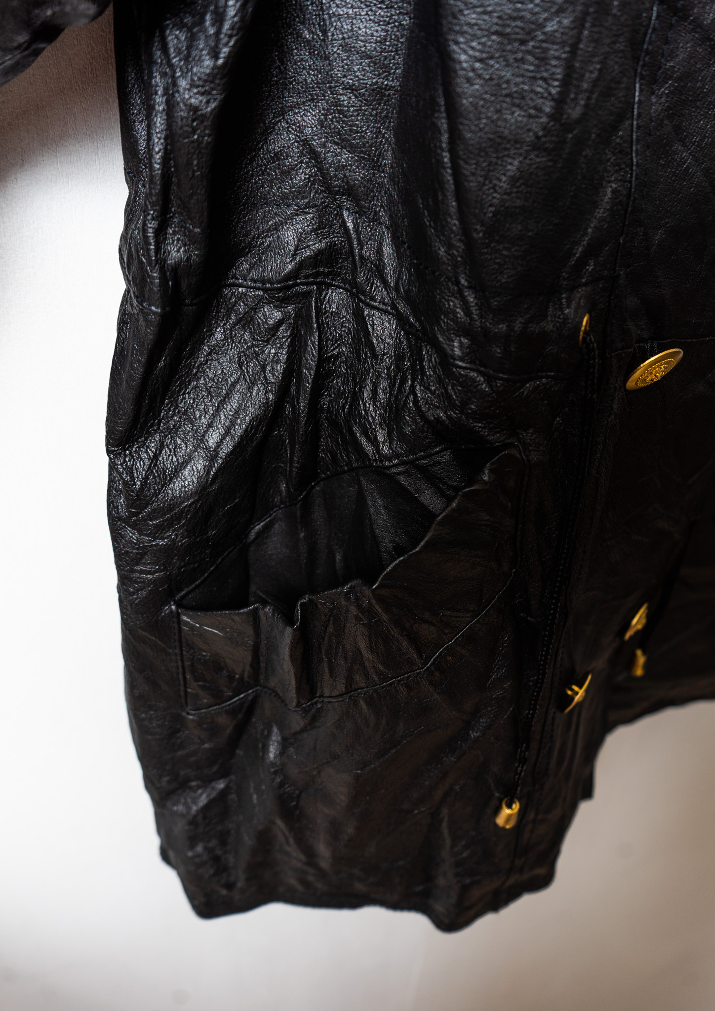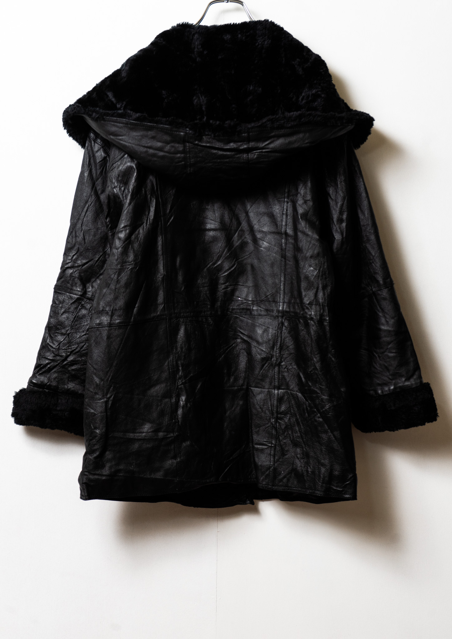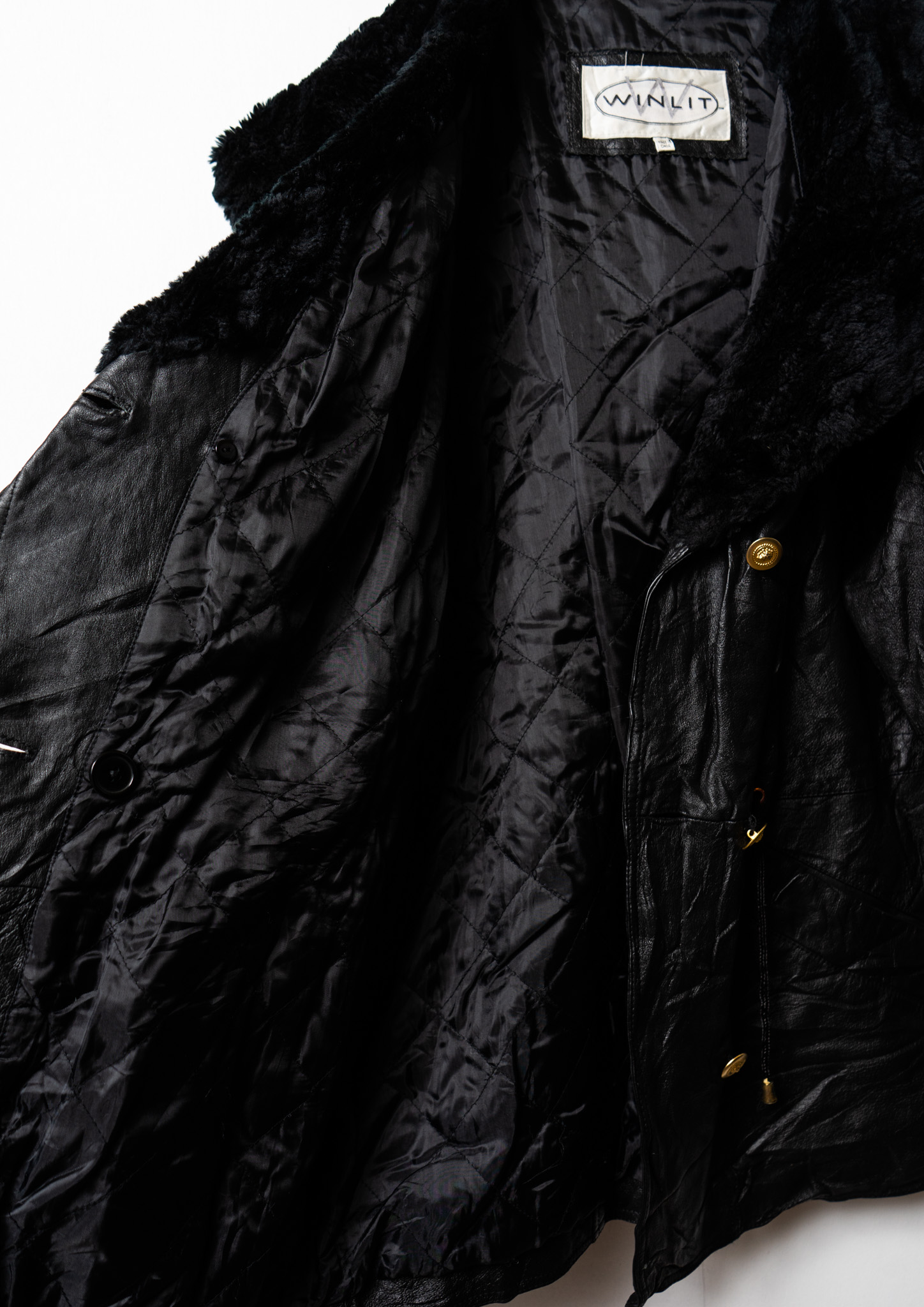 80's Double Gold Button × Fur Design Black Leather Jacket