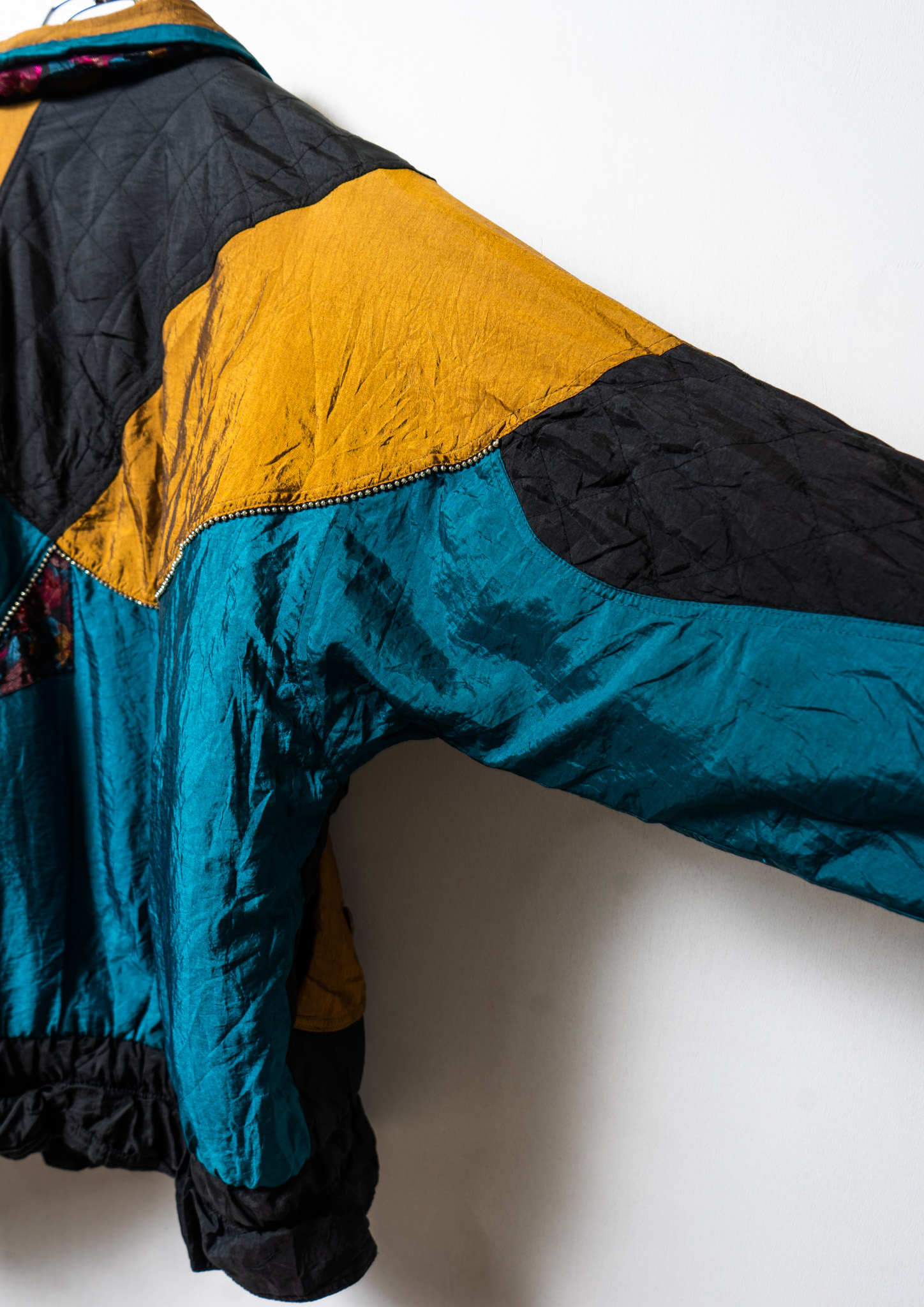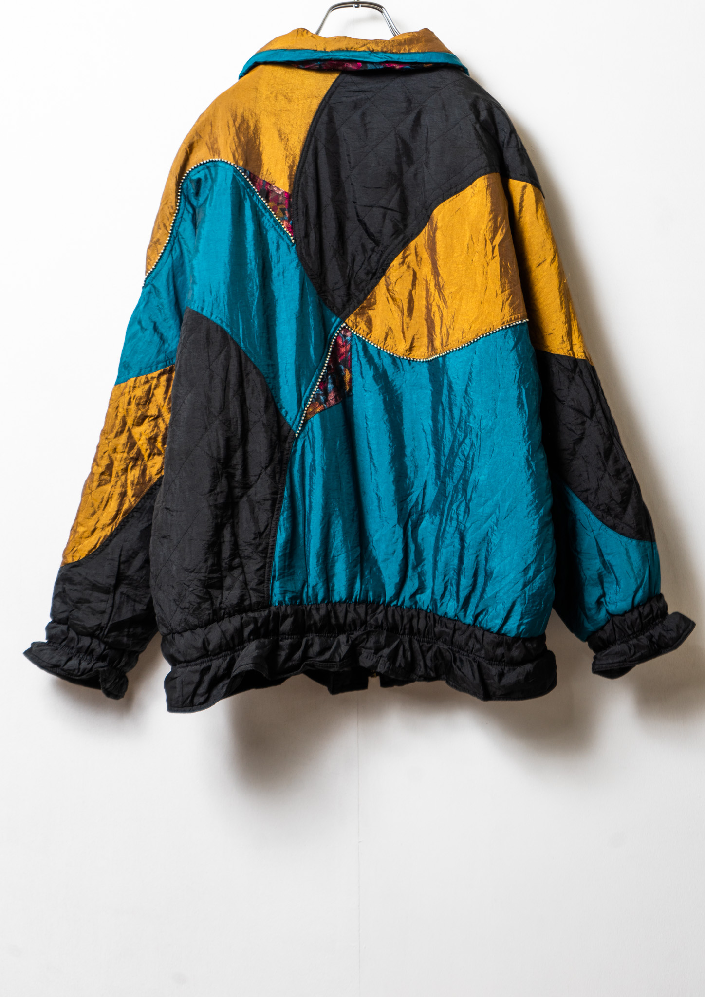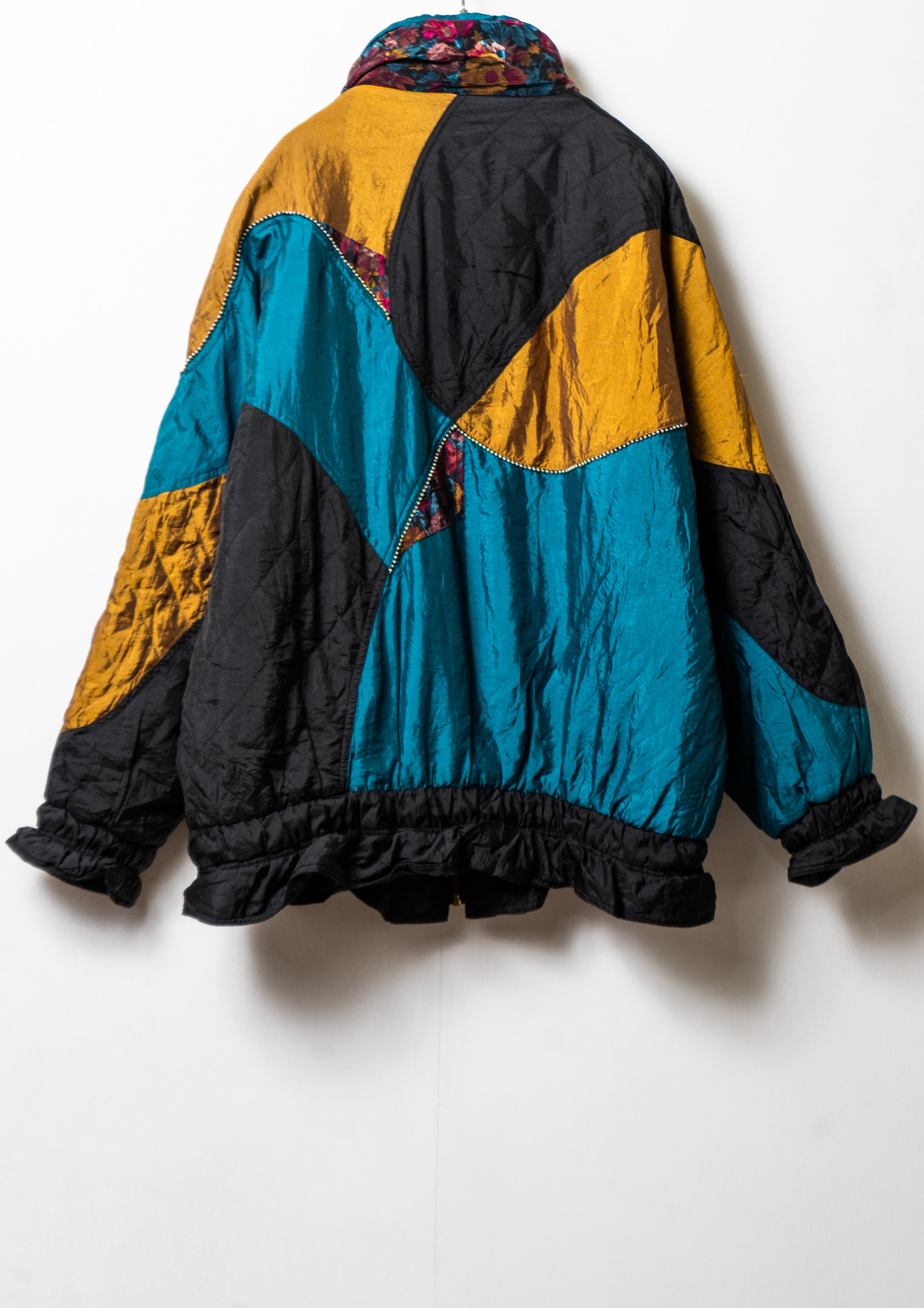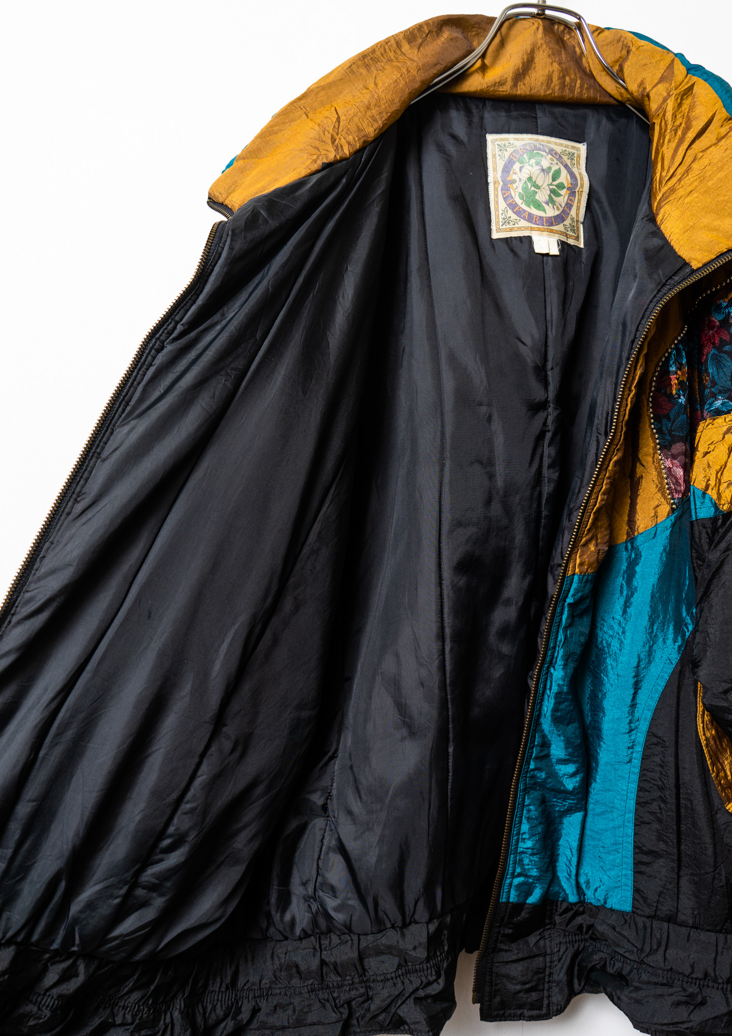 80's Double Pocket Design Botanical Crazy Glossy Pattern Jacket