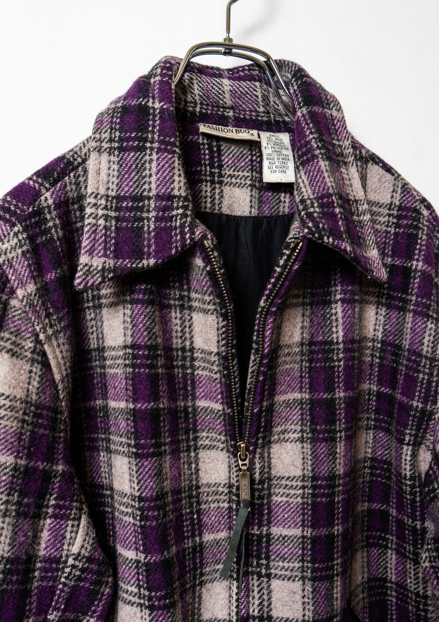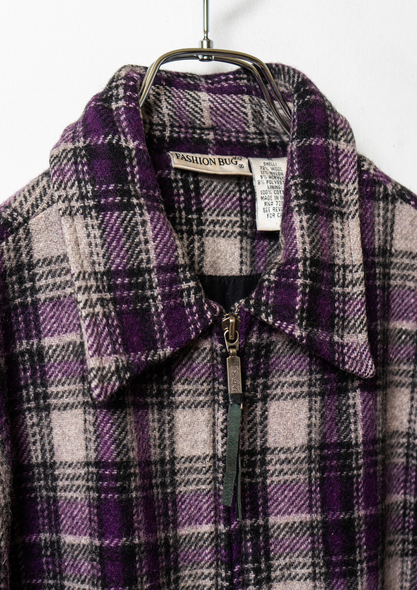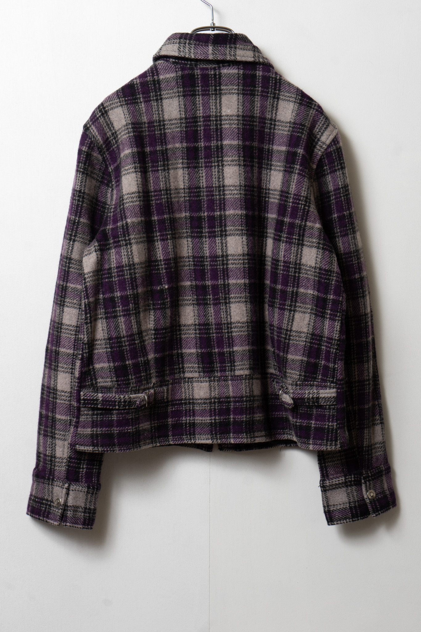 90's Double Pocket Design Check Pattern Purple Jacket