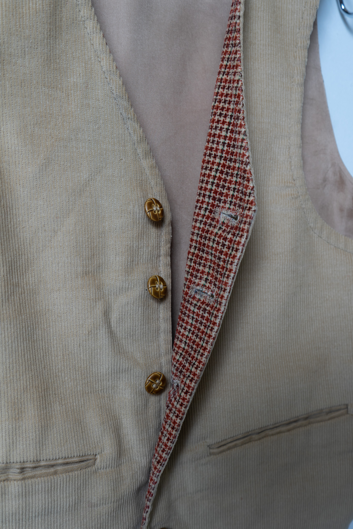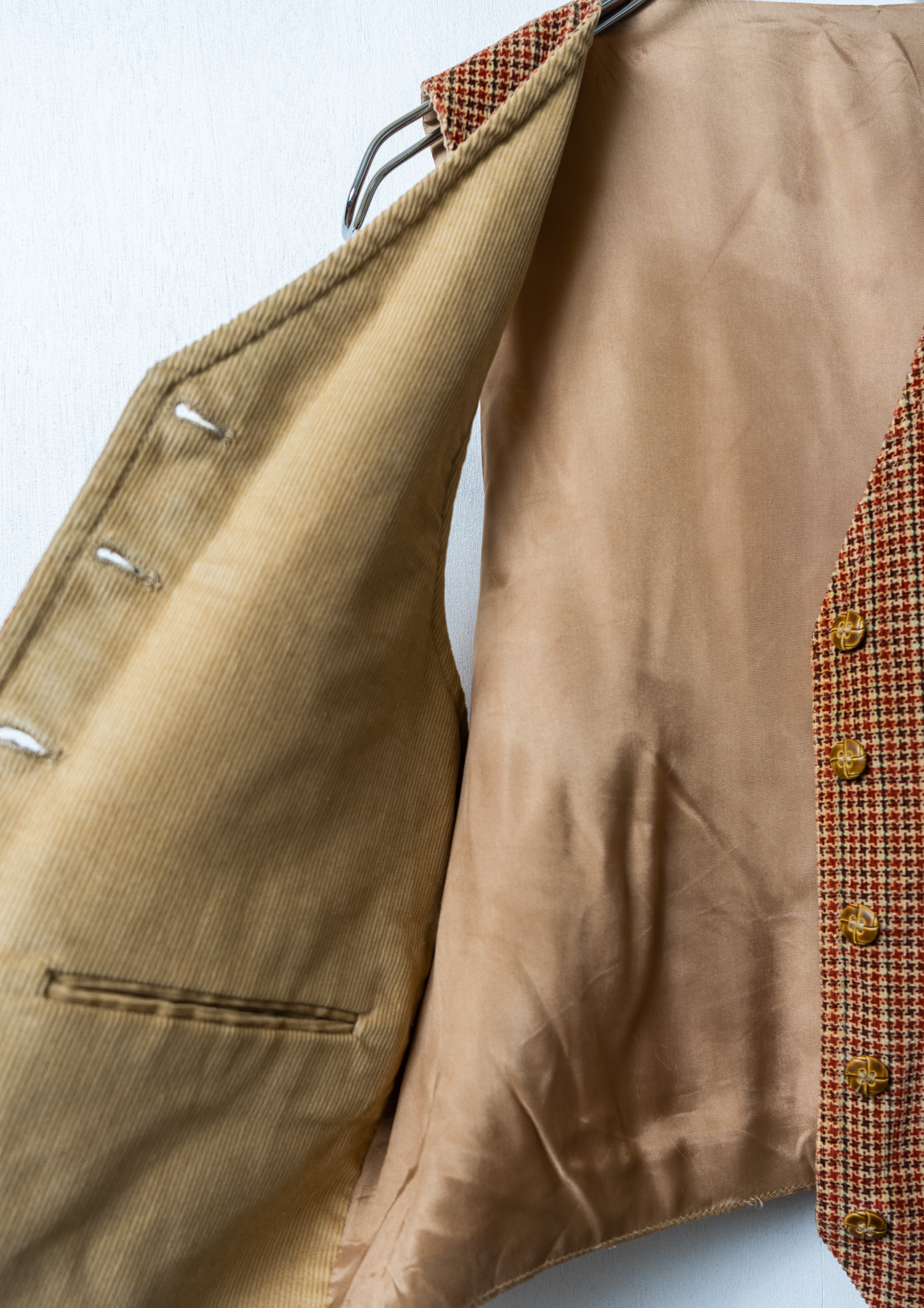 Reversible Houndstooth × Beige Corduroy Pattern Vest