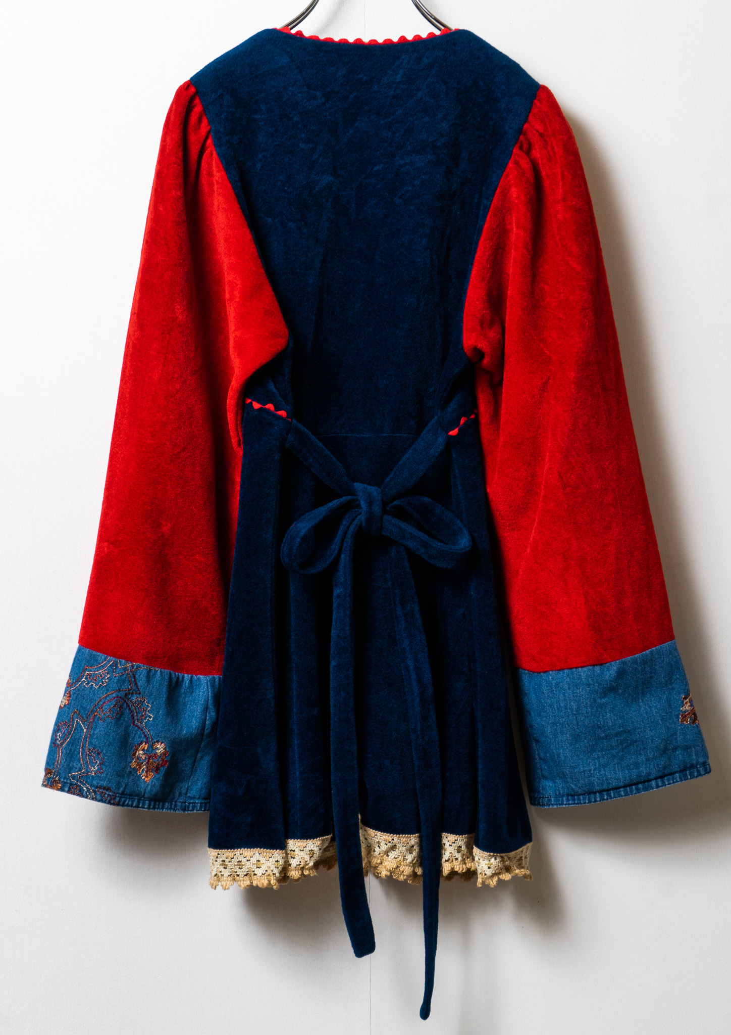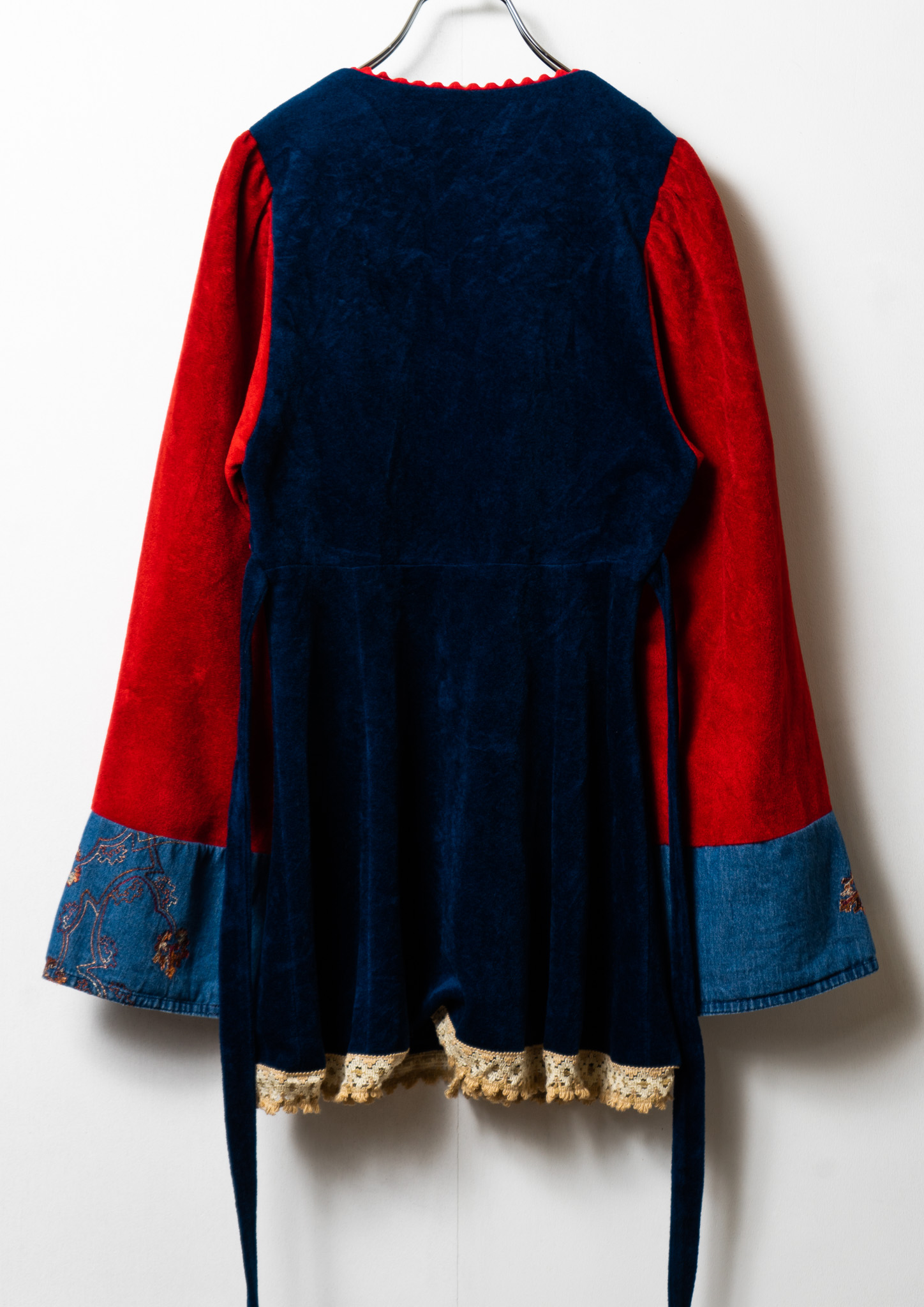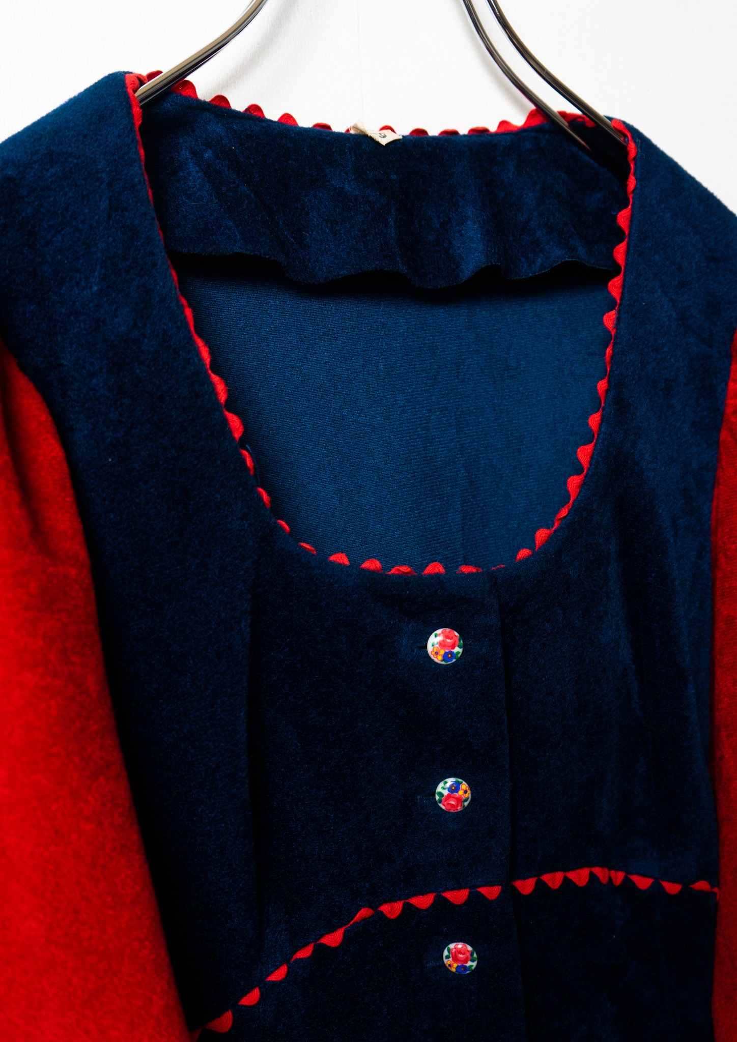 60~70's USA Flower Button Design Red ×Blue Pattern Tops