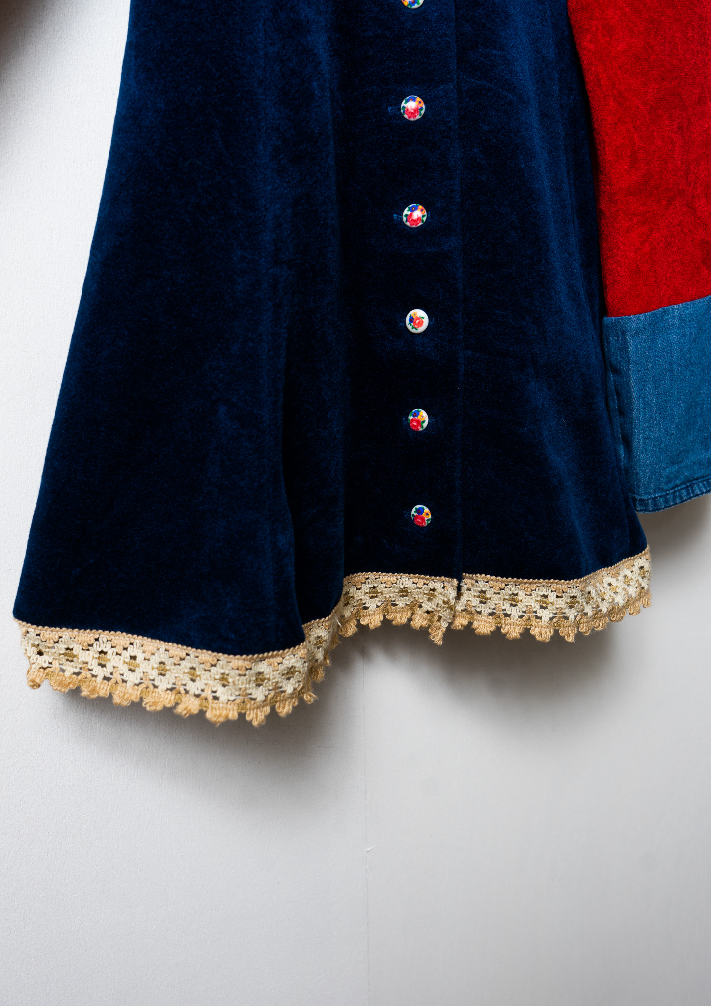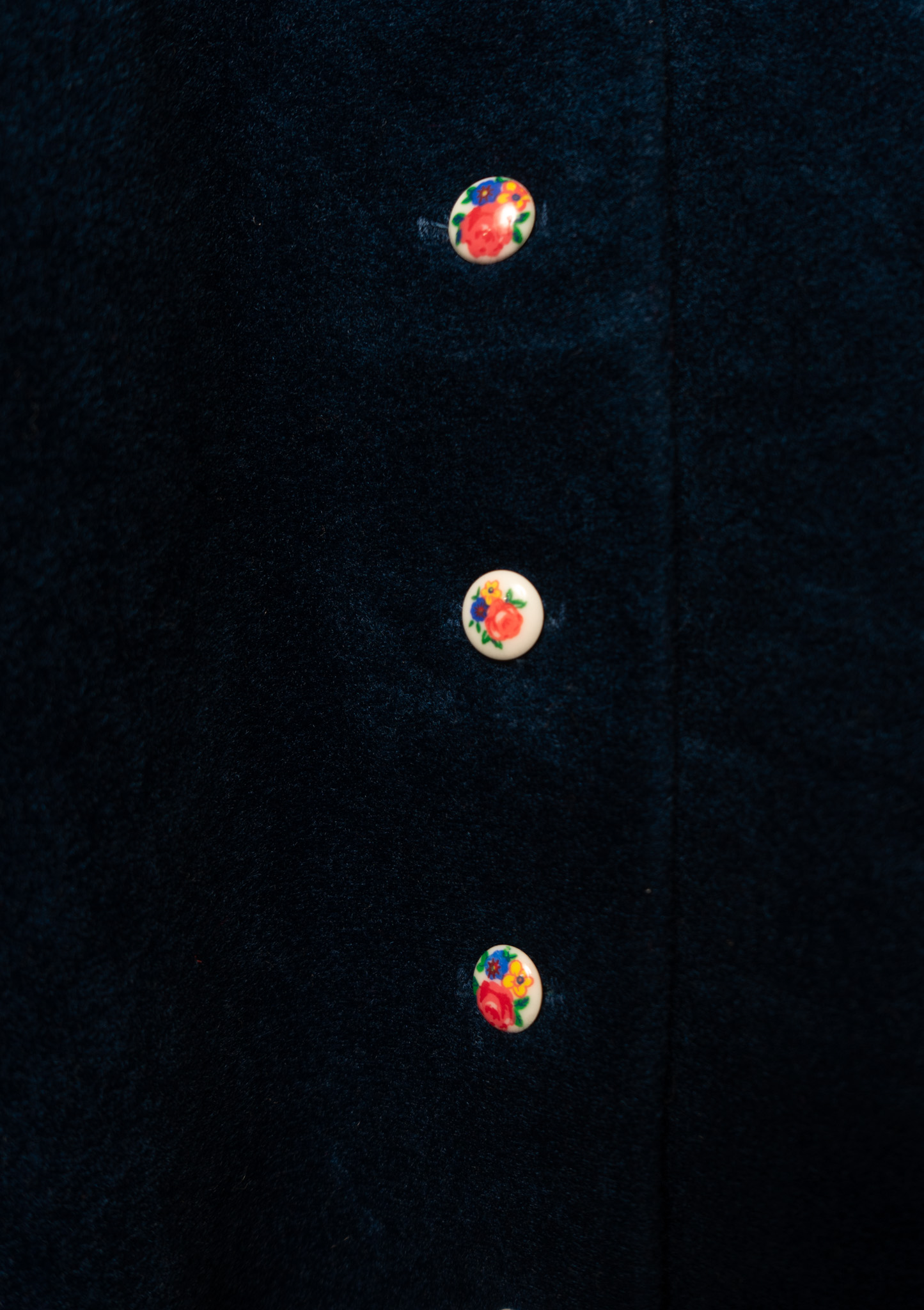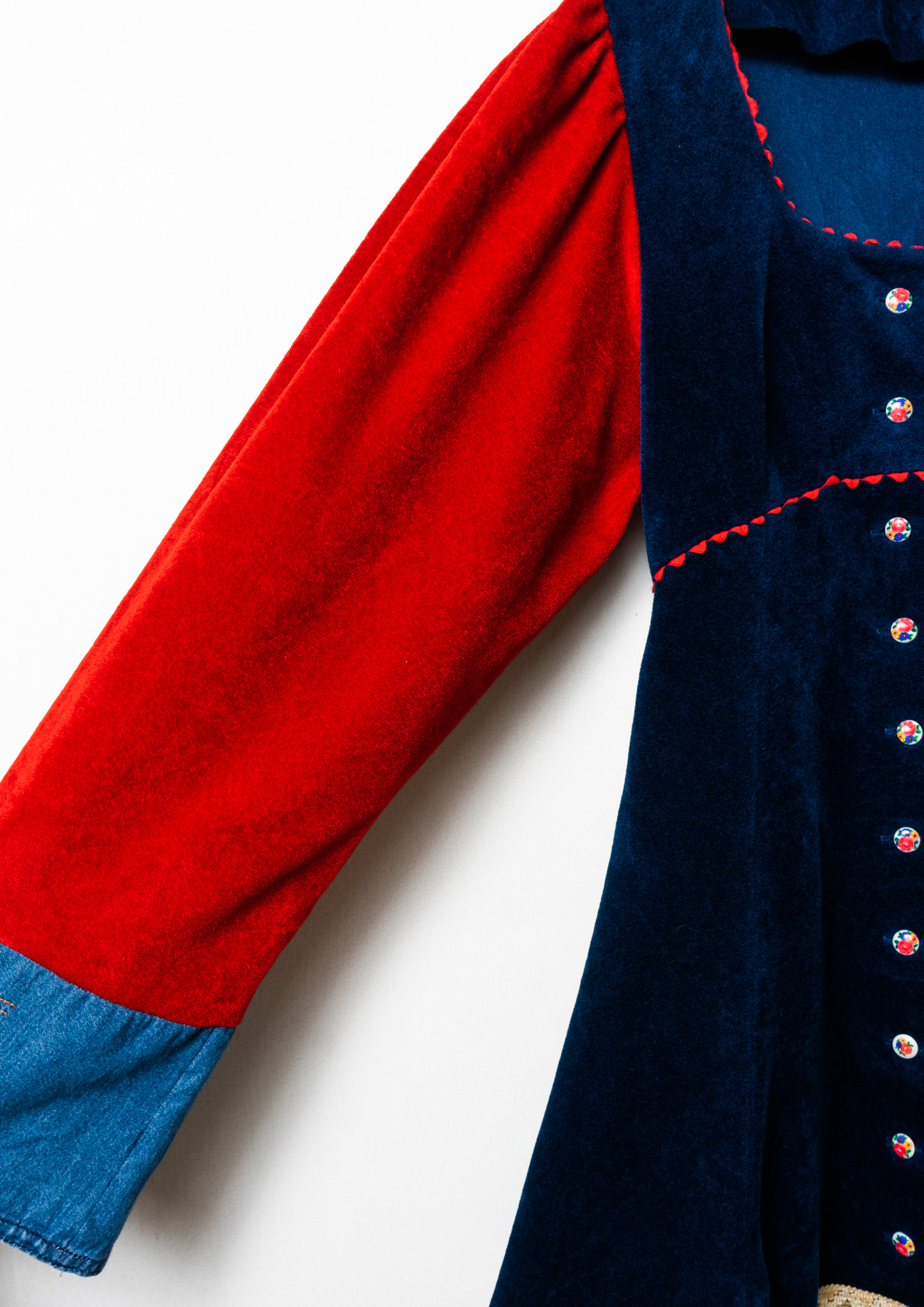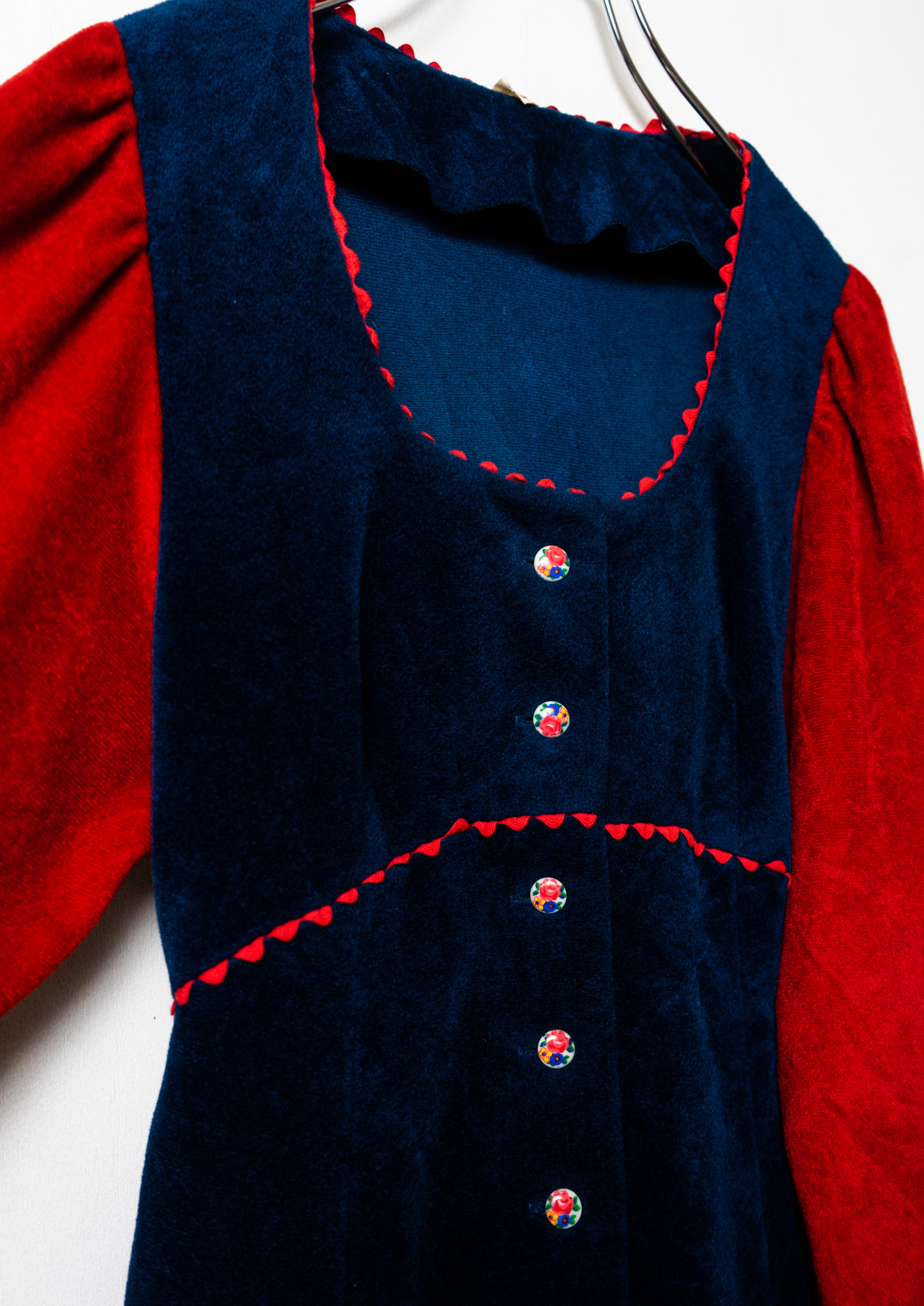 60~70's USA Flower Button Design Red ×Blue Pattern Tops