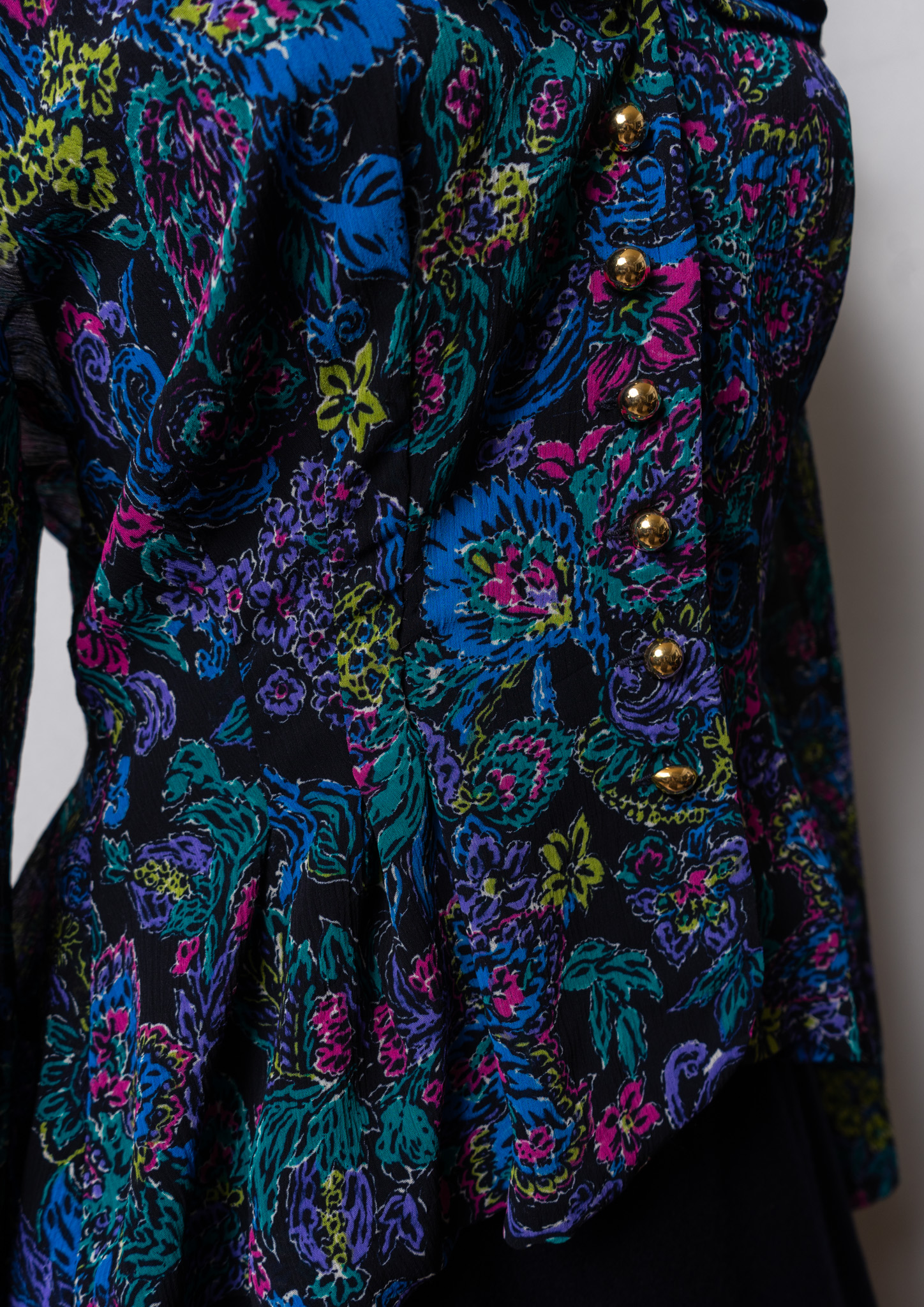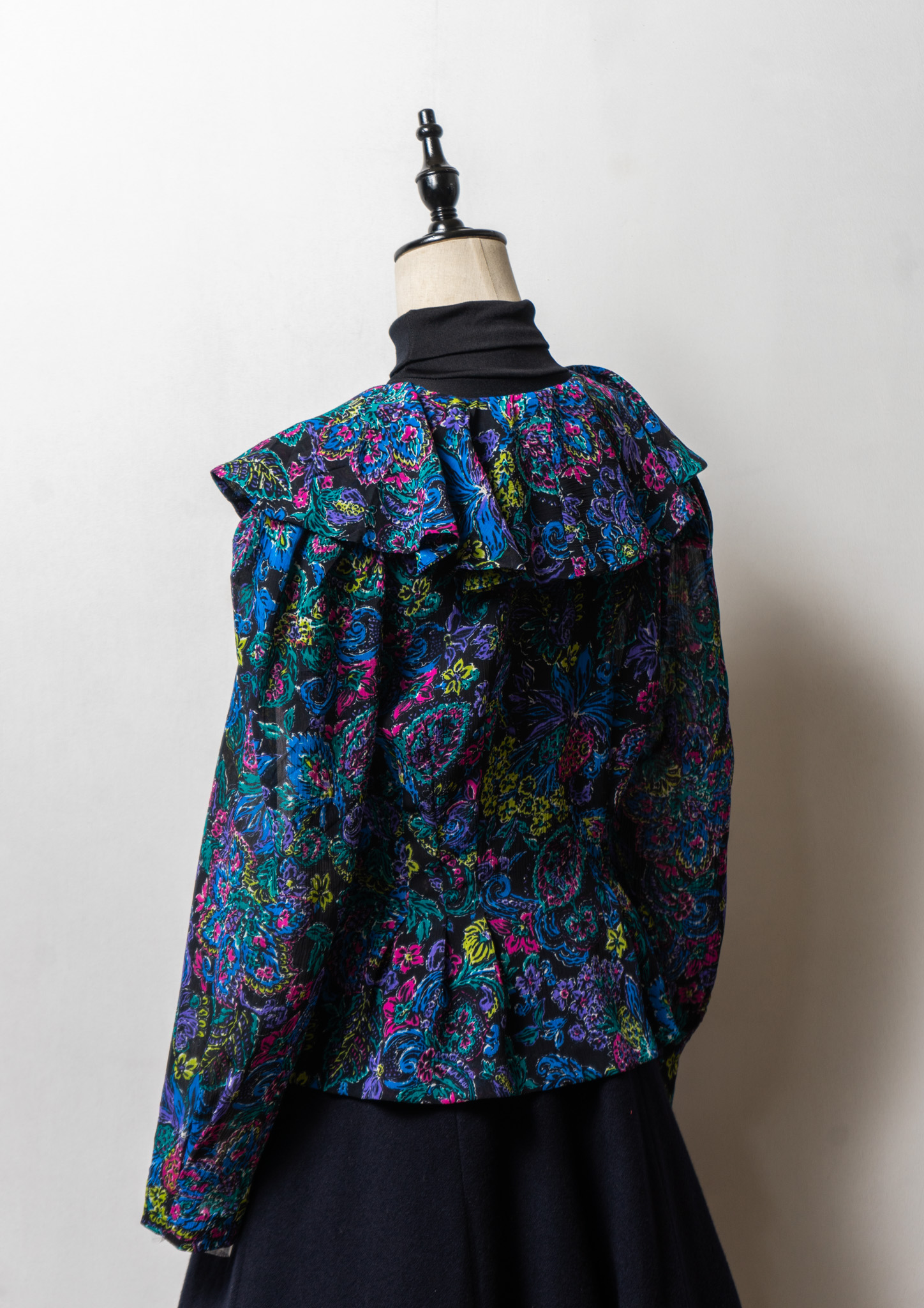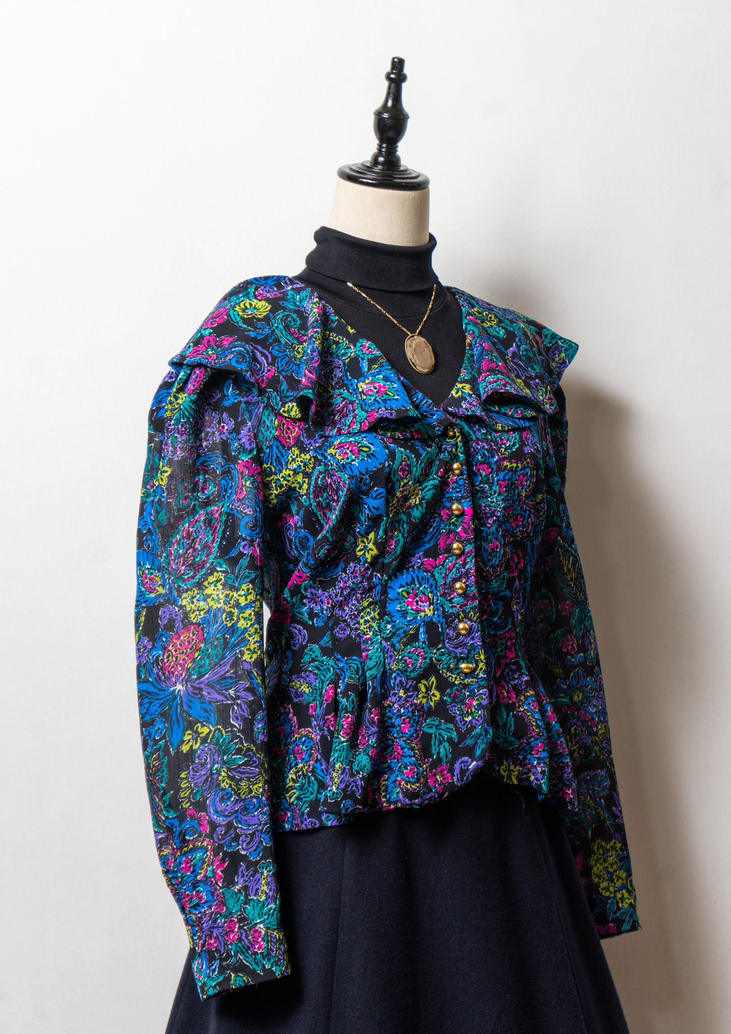 80~90's LESLIE FAY Peplum Design Colorful Botanical Pattern Blouse
