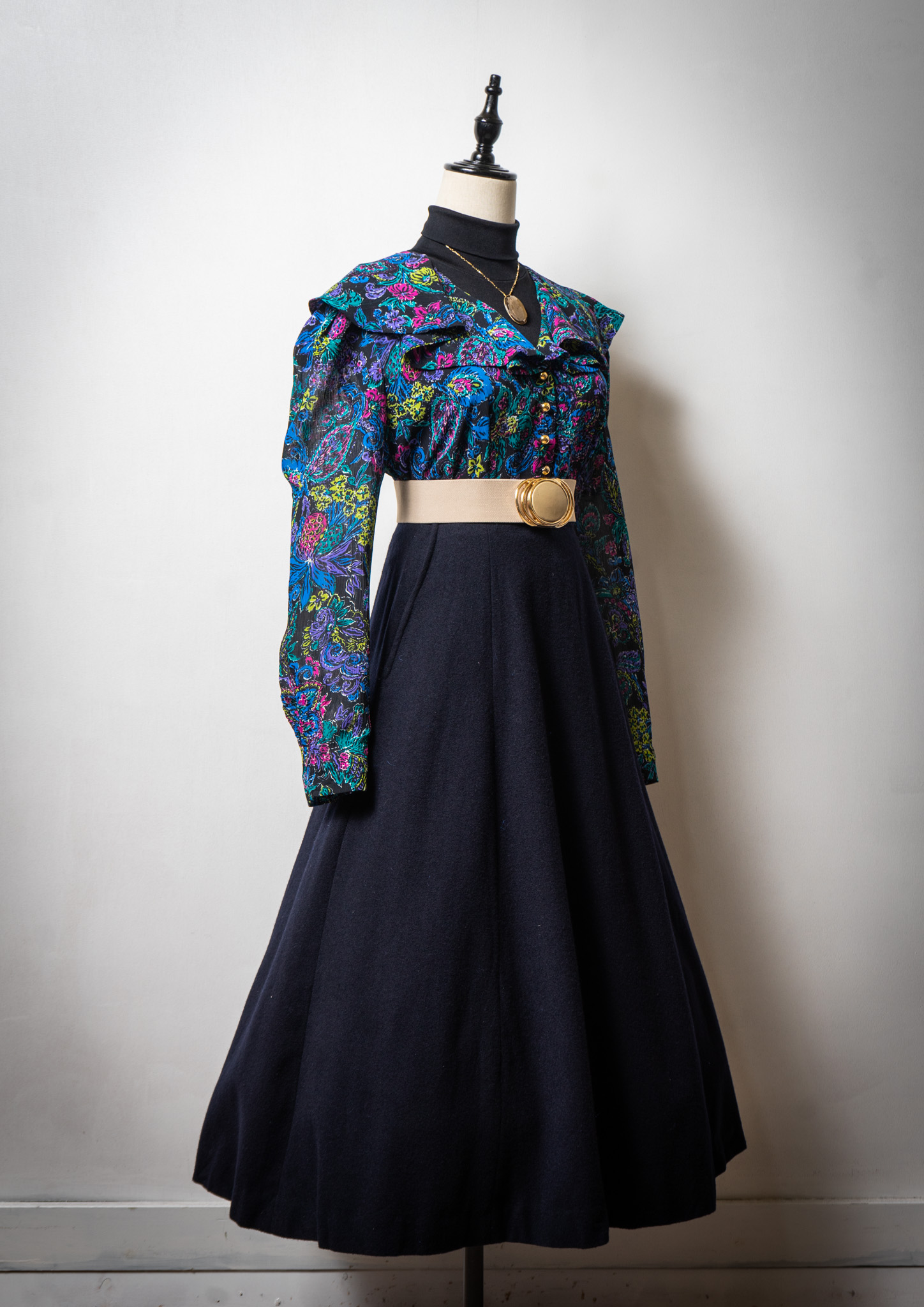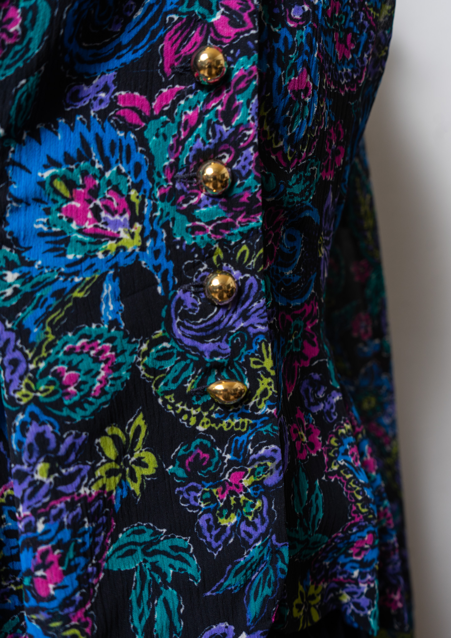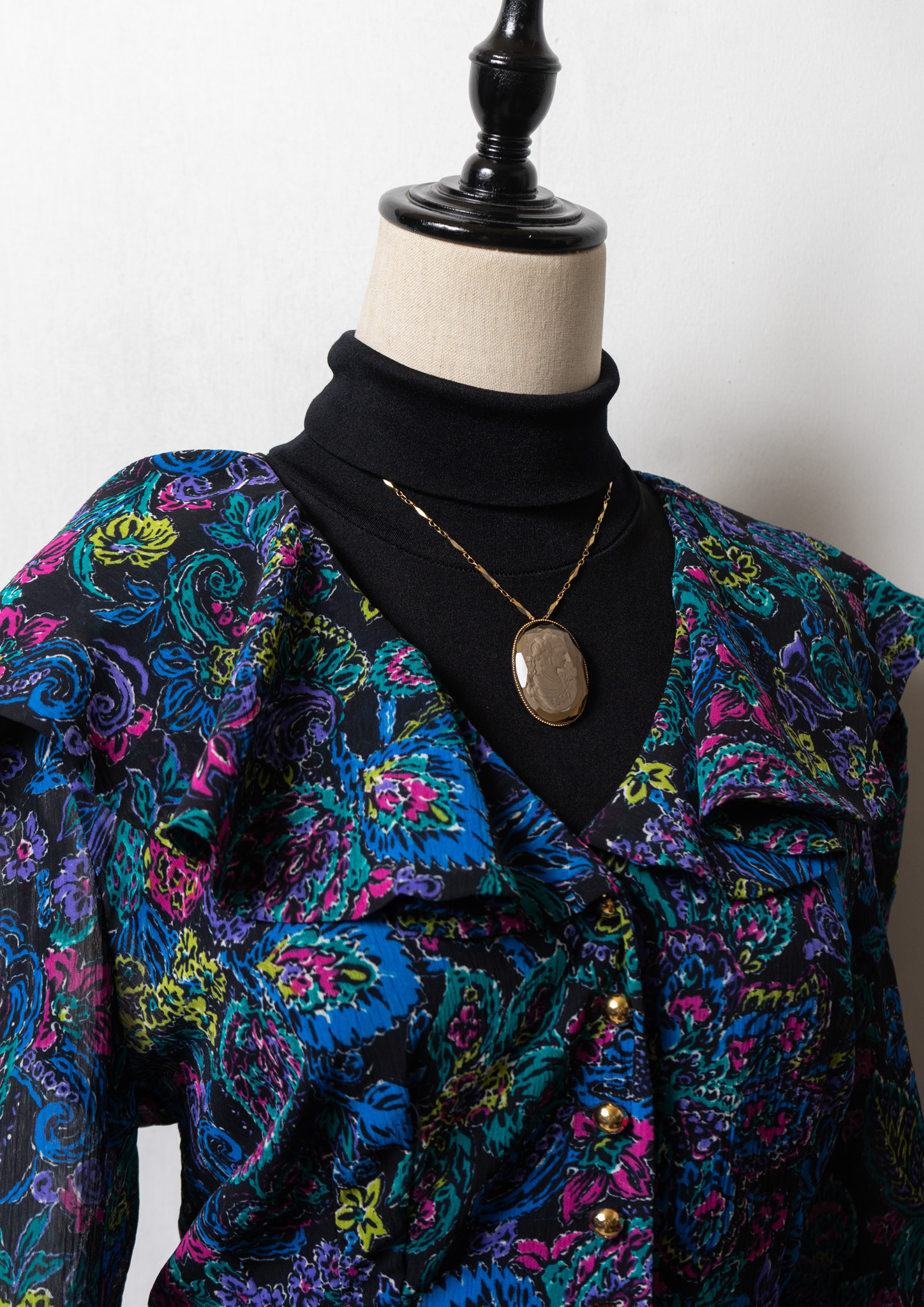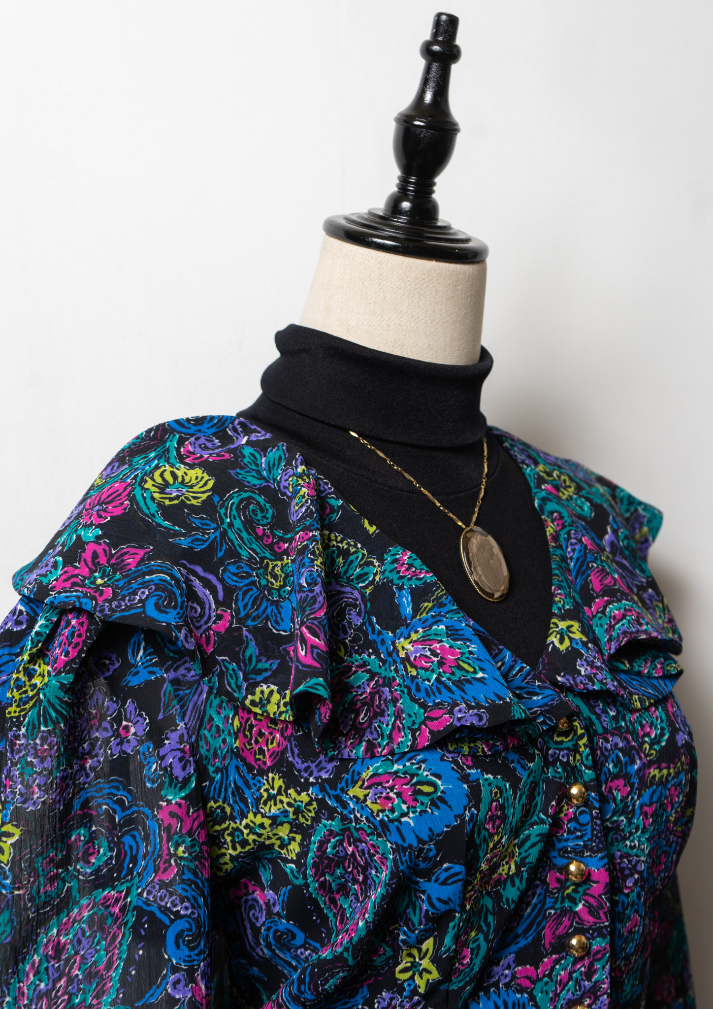 80~90's LESLIE FAY Peplum Design Colorful Botanical Pattern Blouse