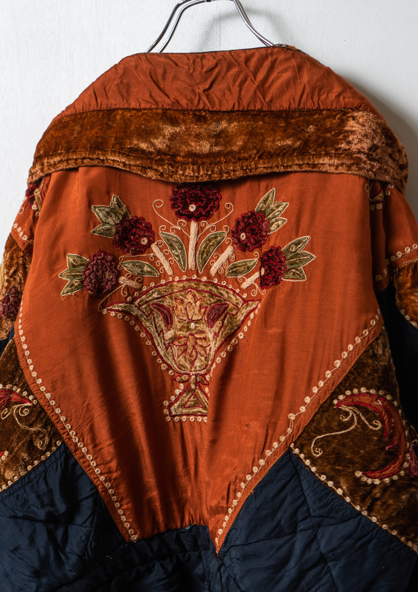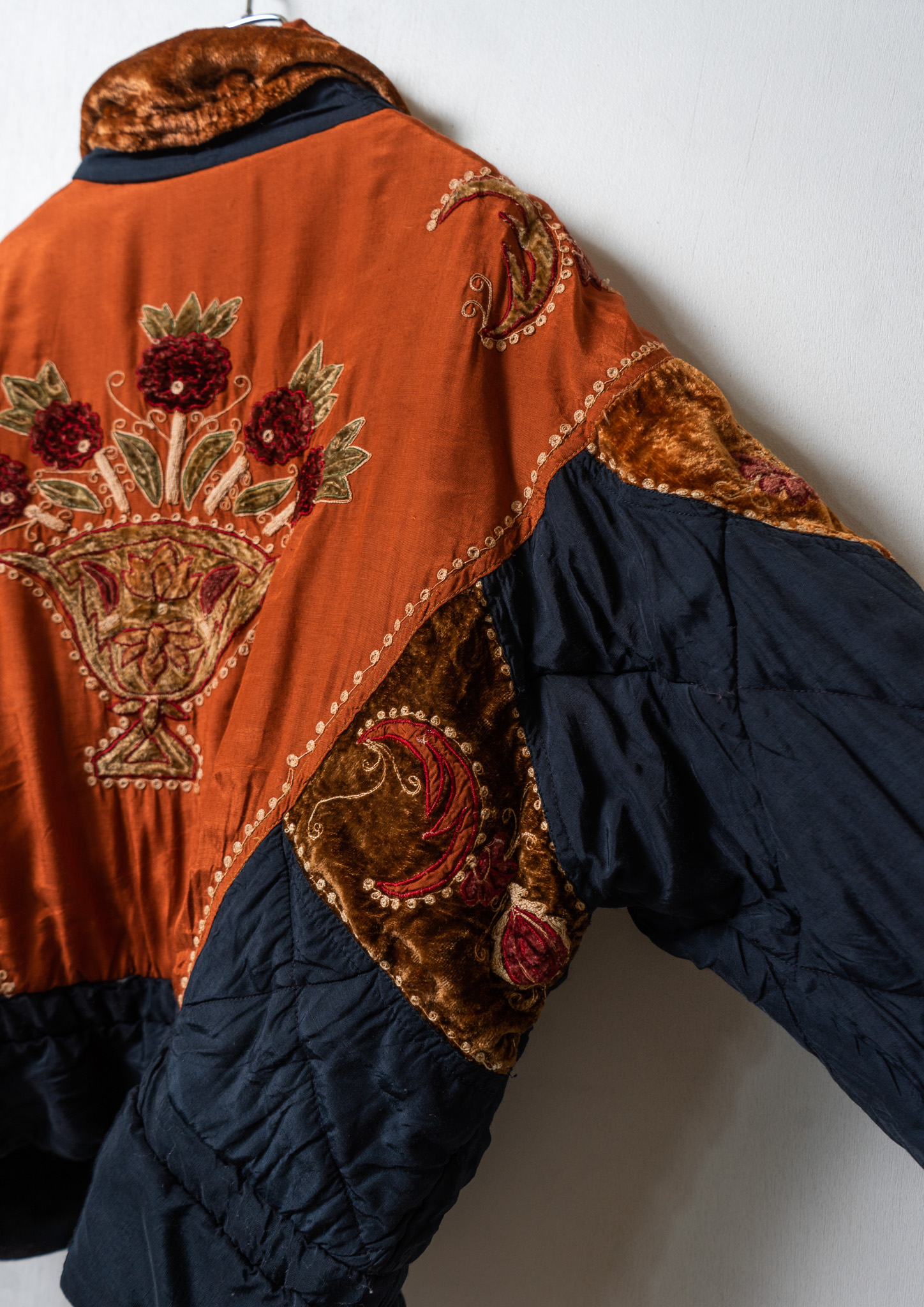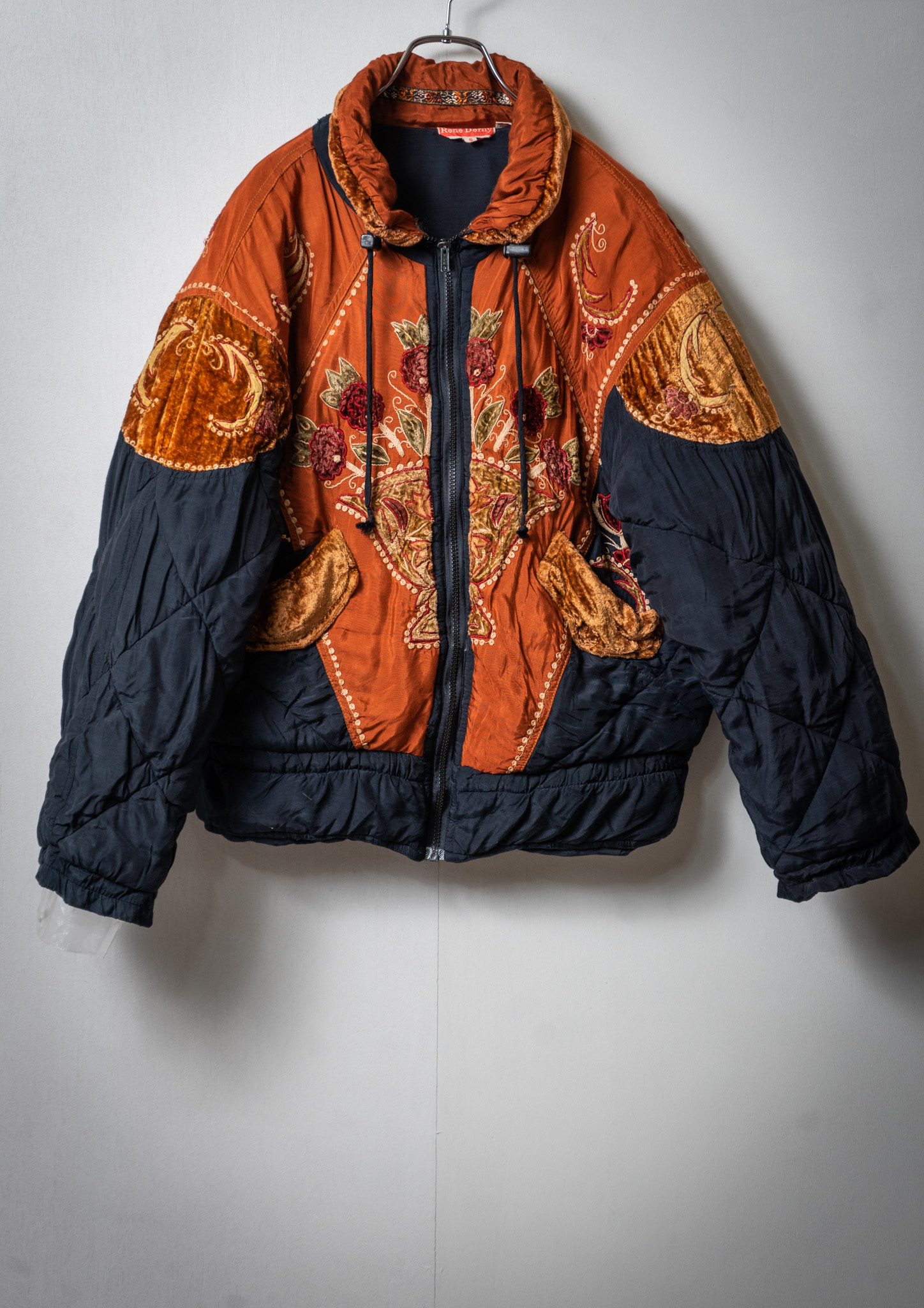 80’s Double Pocket Design Botanical Embroidery Pattern× Black Quilting Jacket
