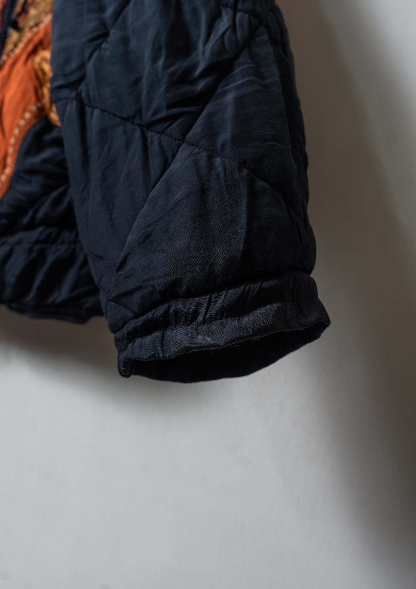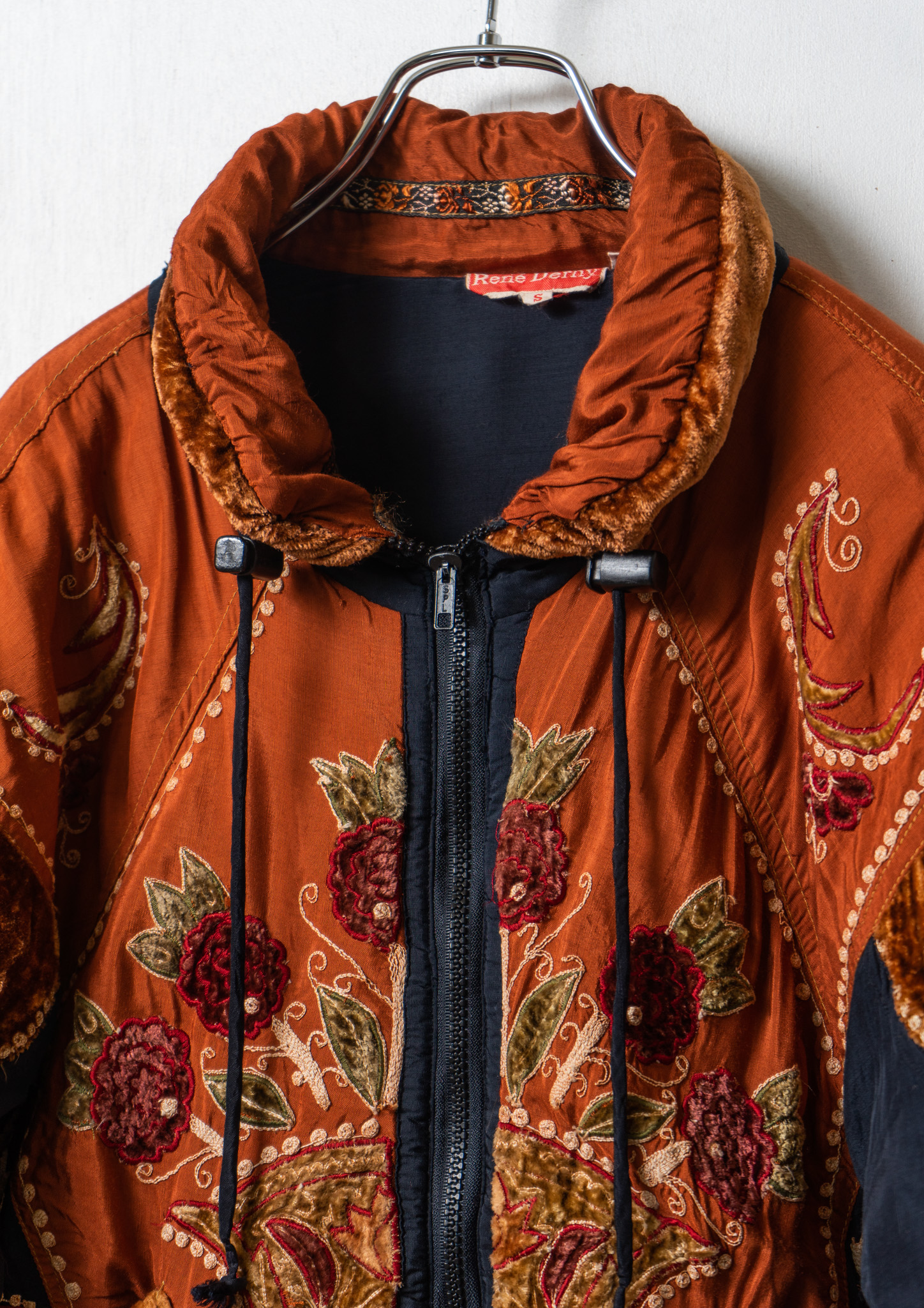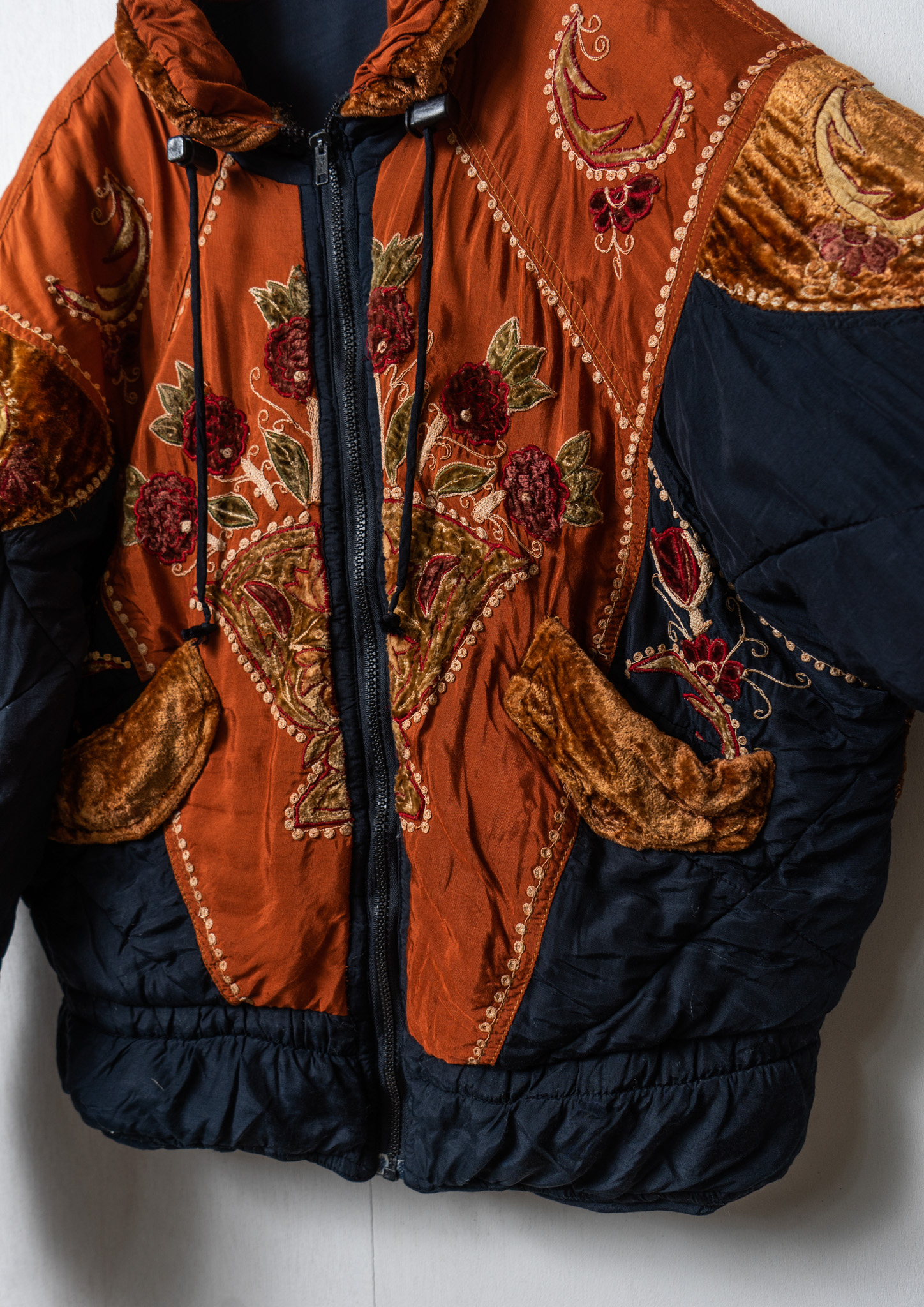 80’s Double Pocket Design Botanical Embroidery Pattern× Black Quilting Jacket