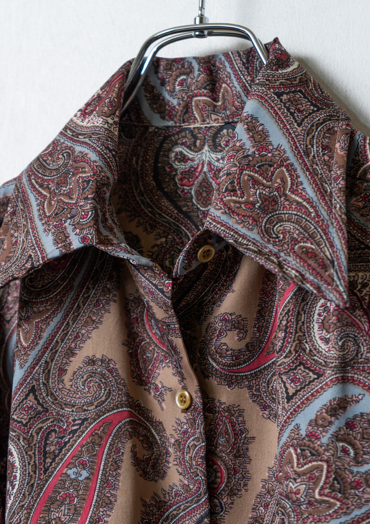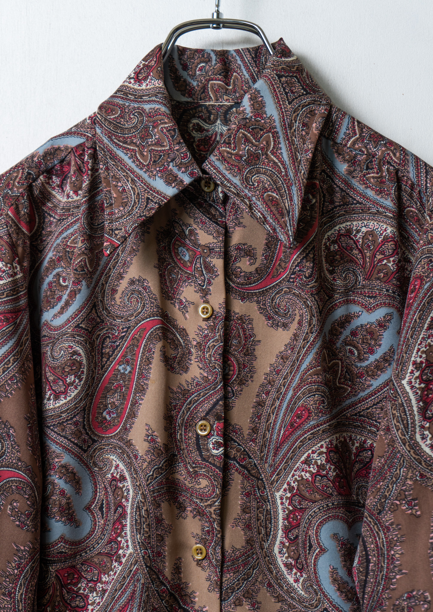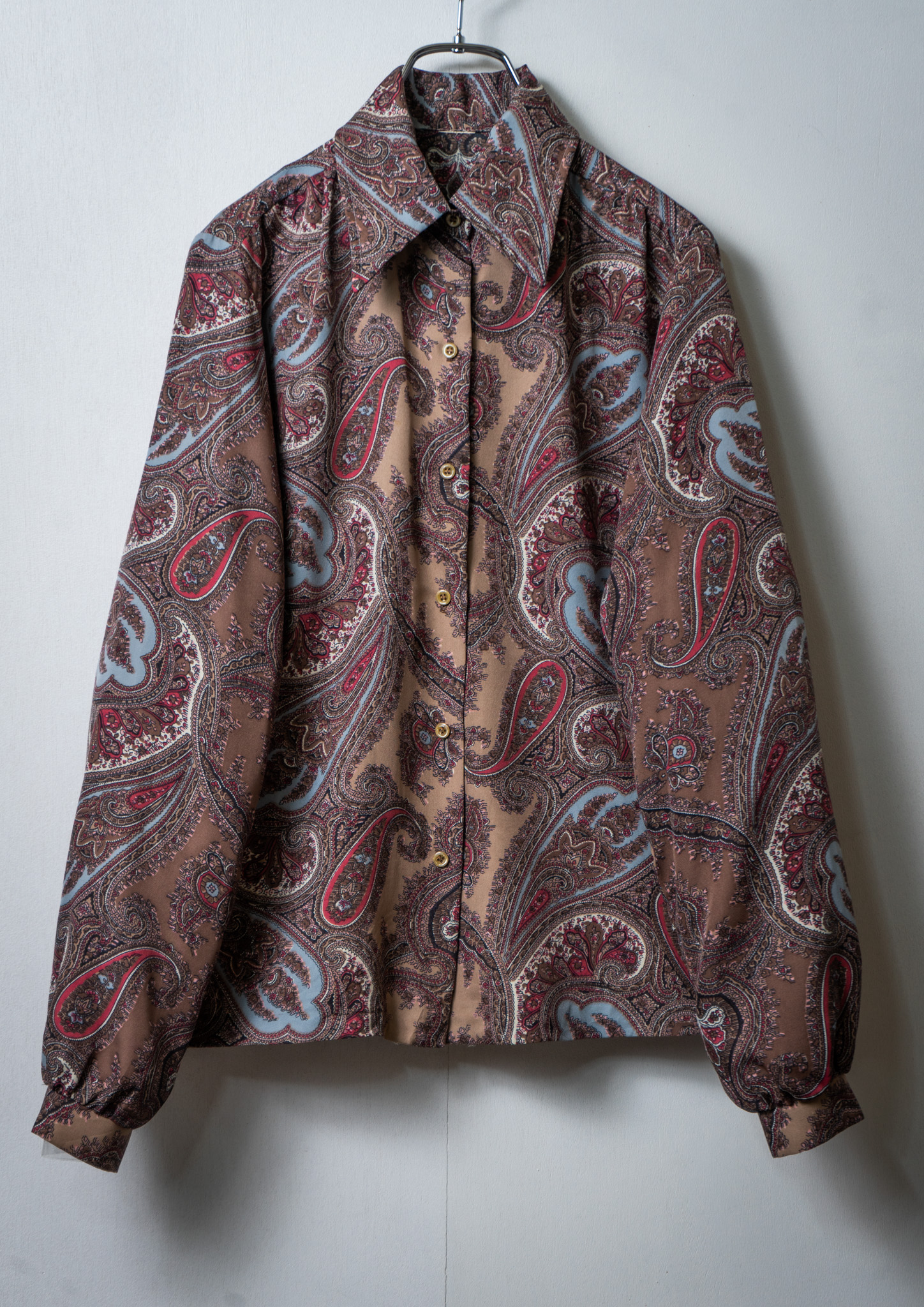 80’s Ethnic Pattern Turquoise × Purple Blouse