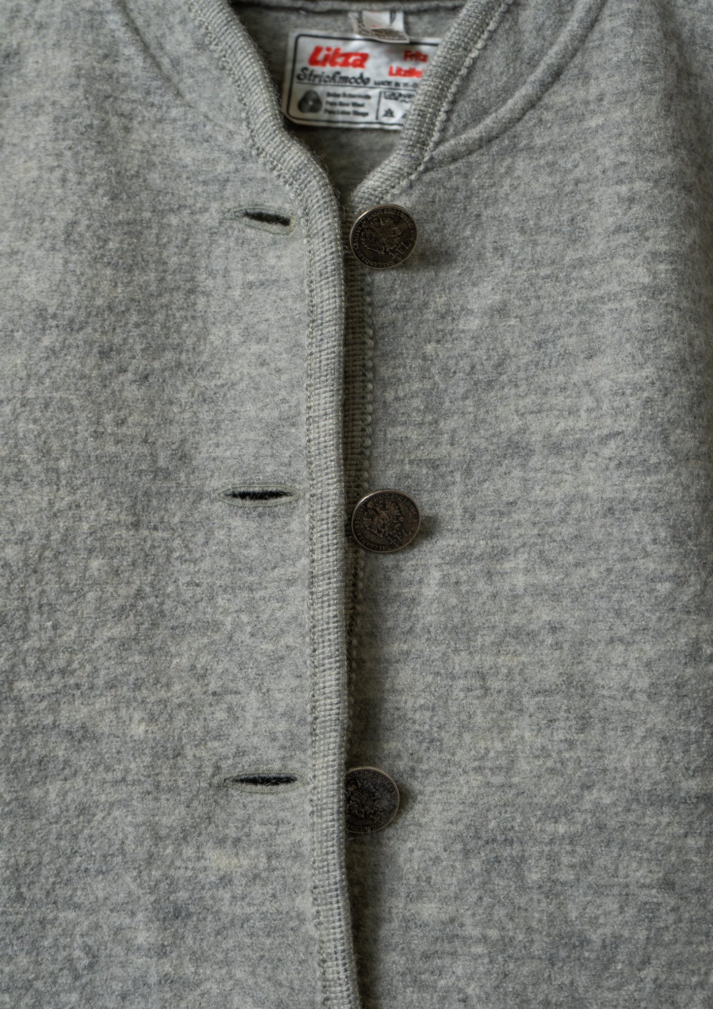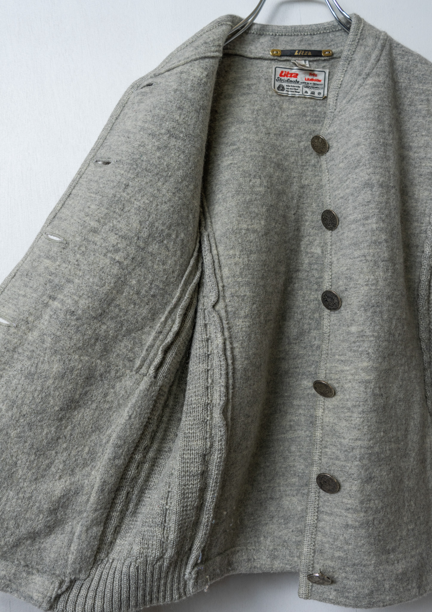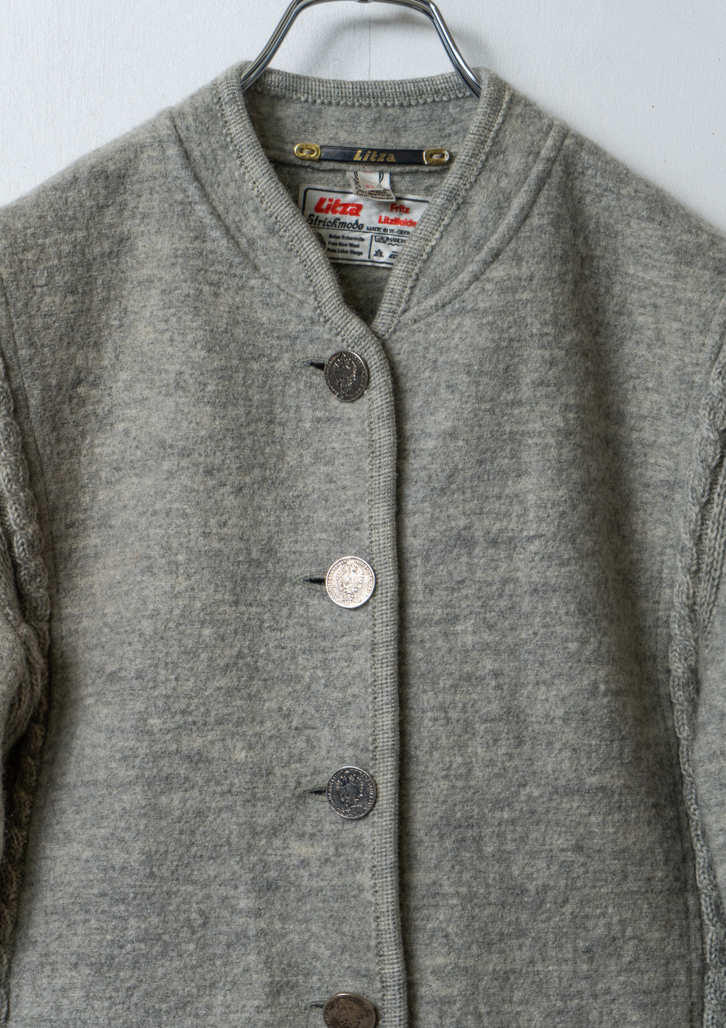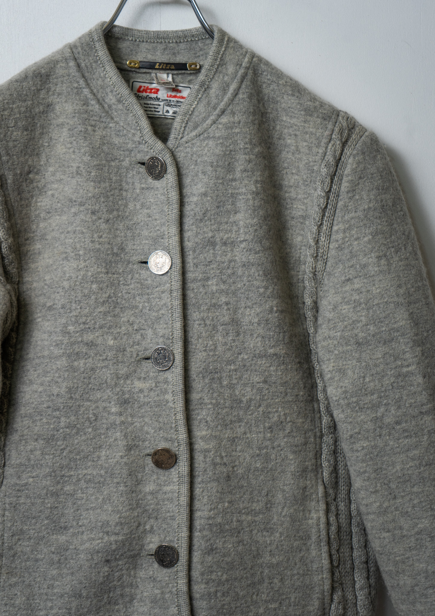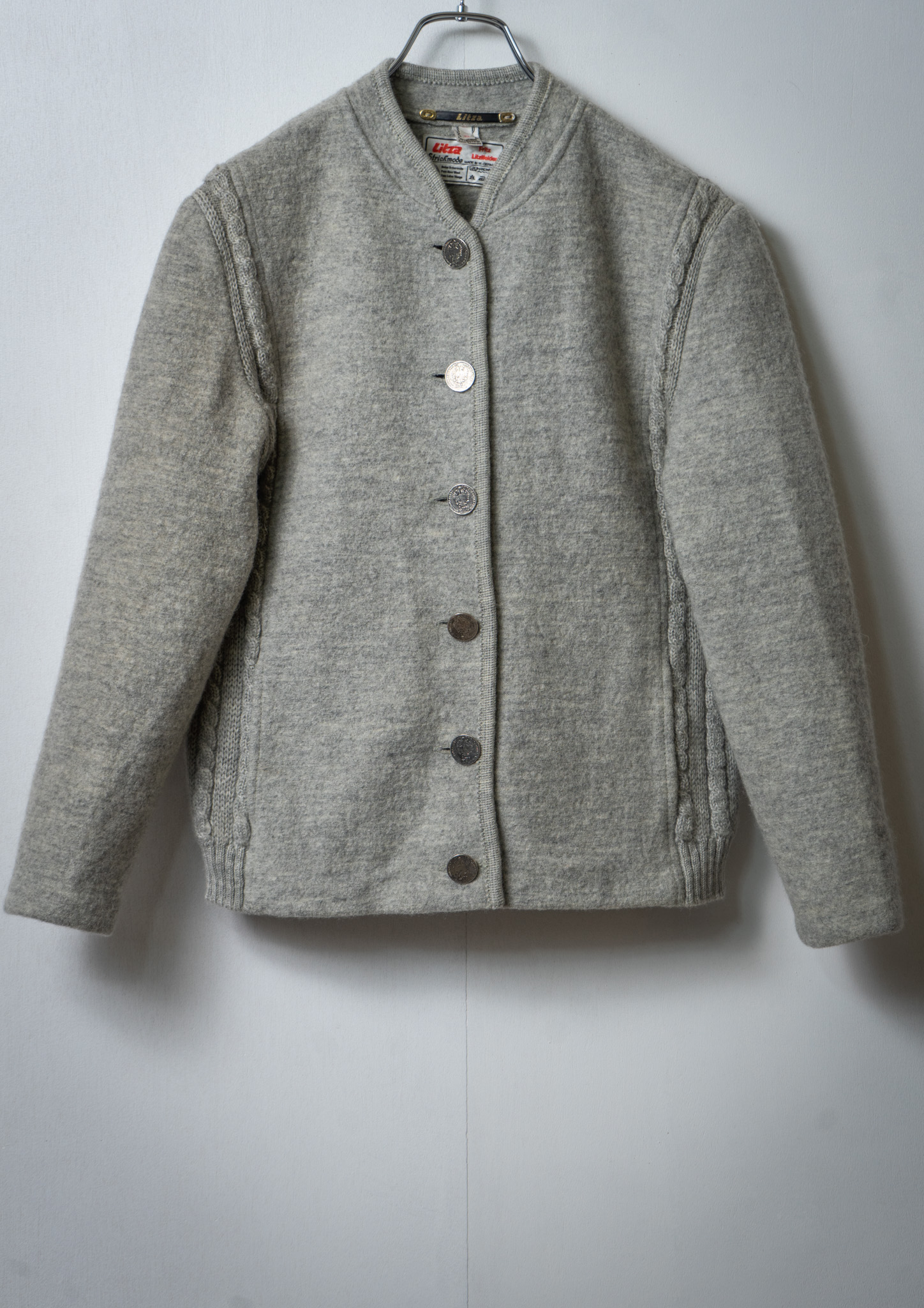 80's W.Germany Coin Motif Button Design Light Gray Wool Jacket