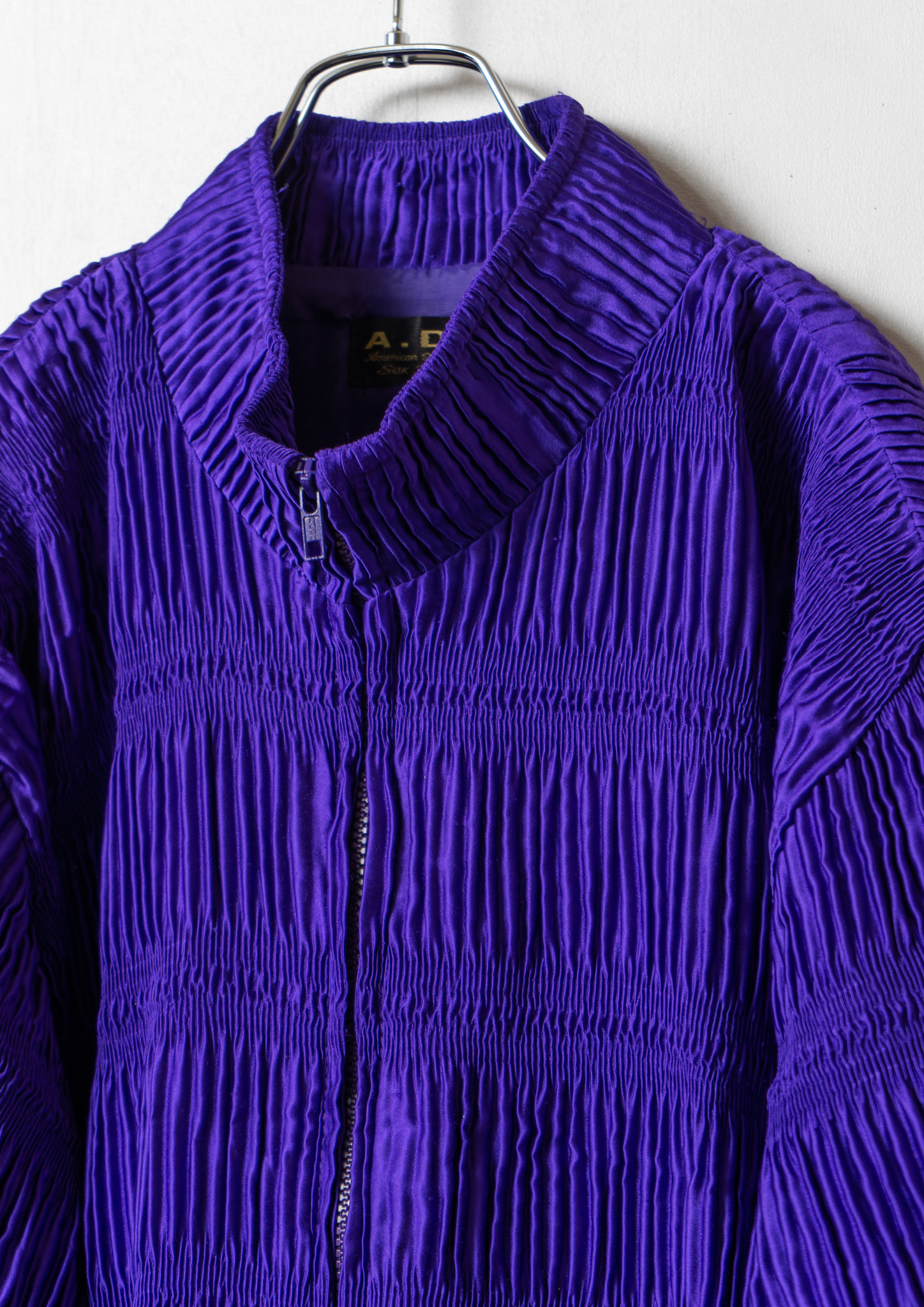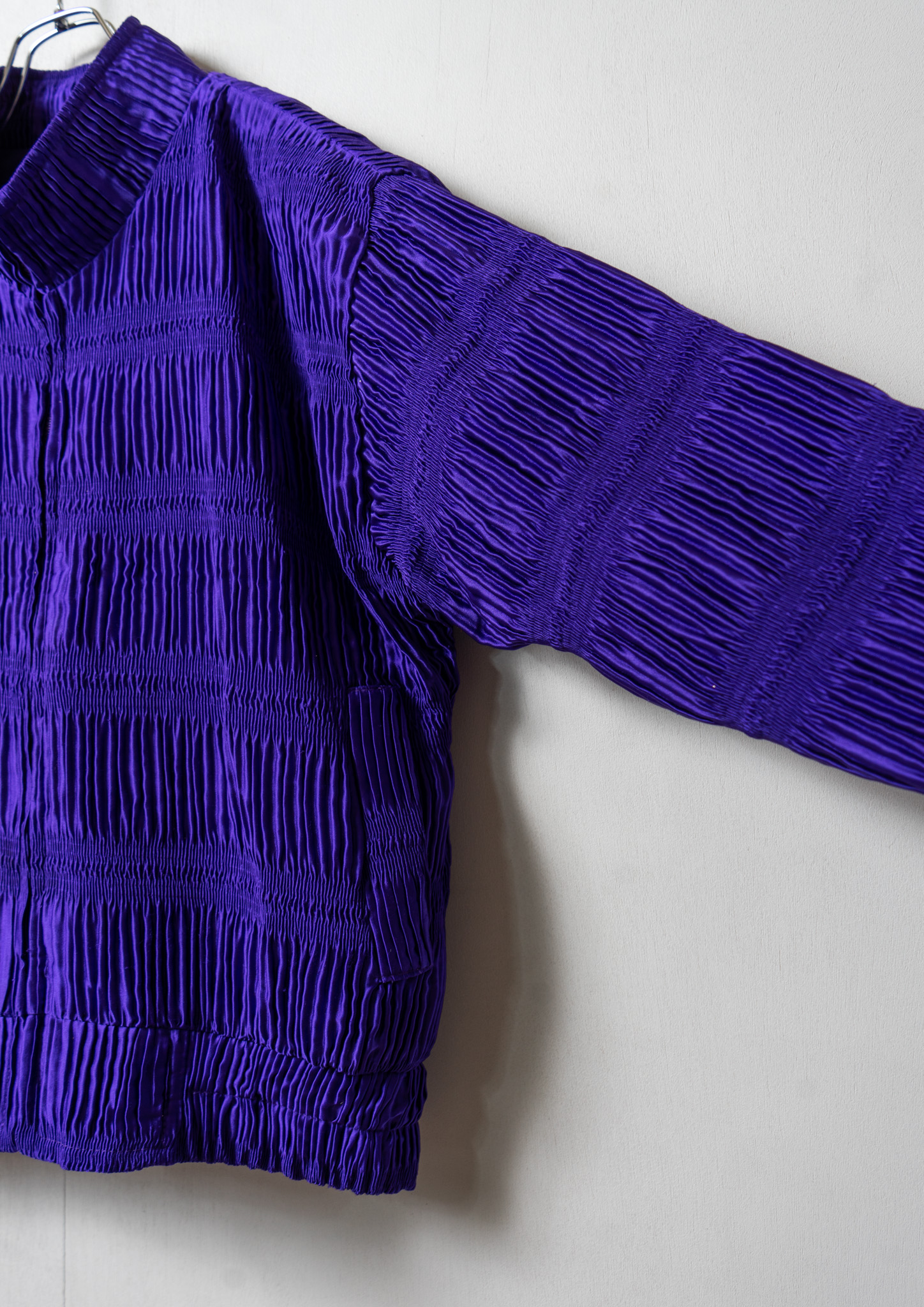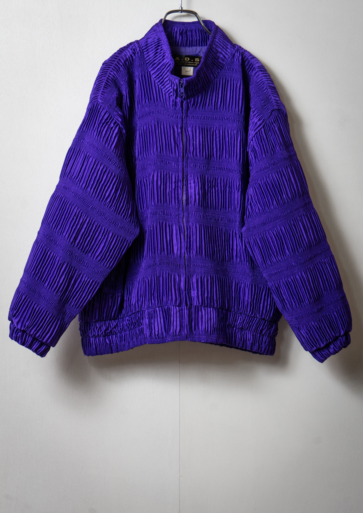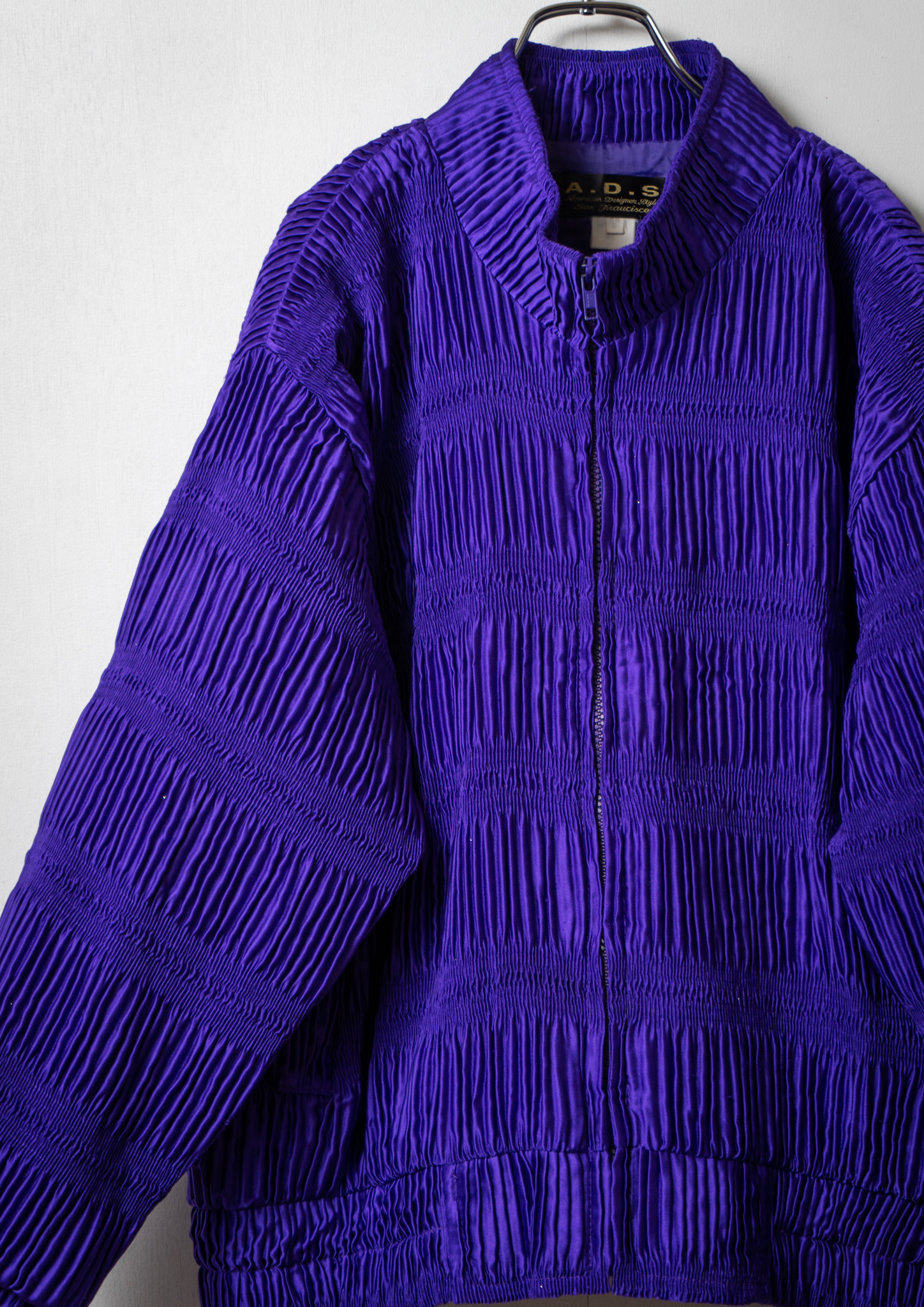 90's Double Pocket Design Shirring Pattern Purple Jacket