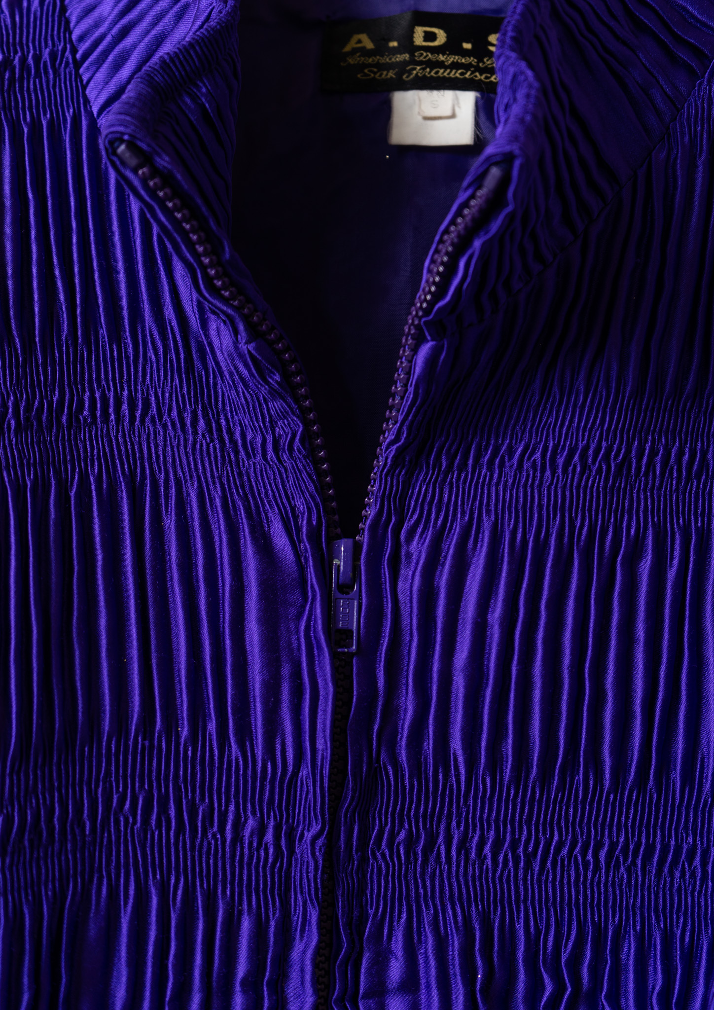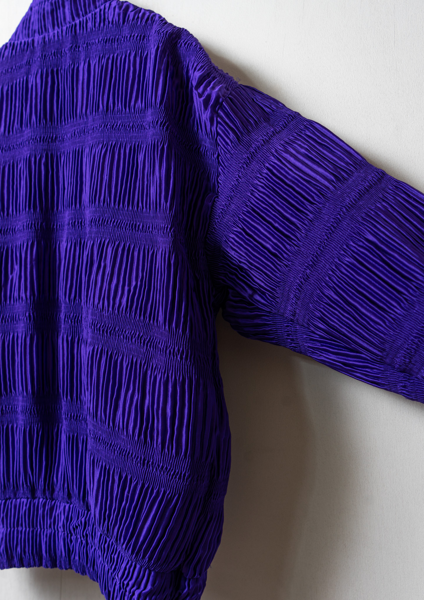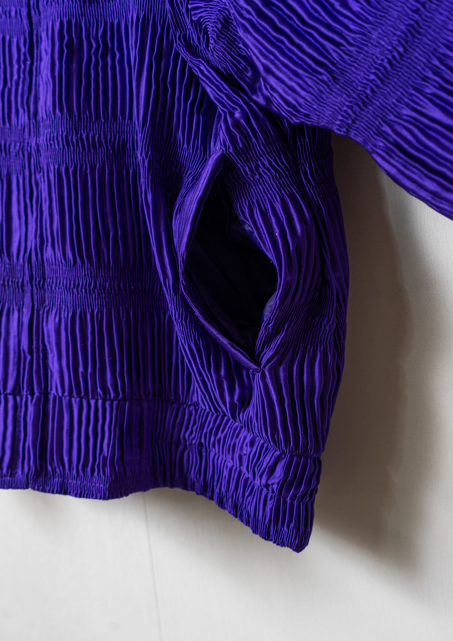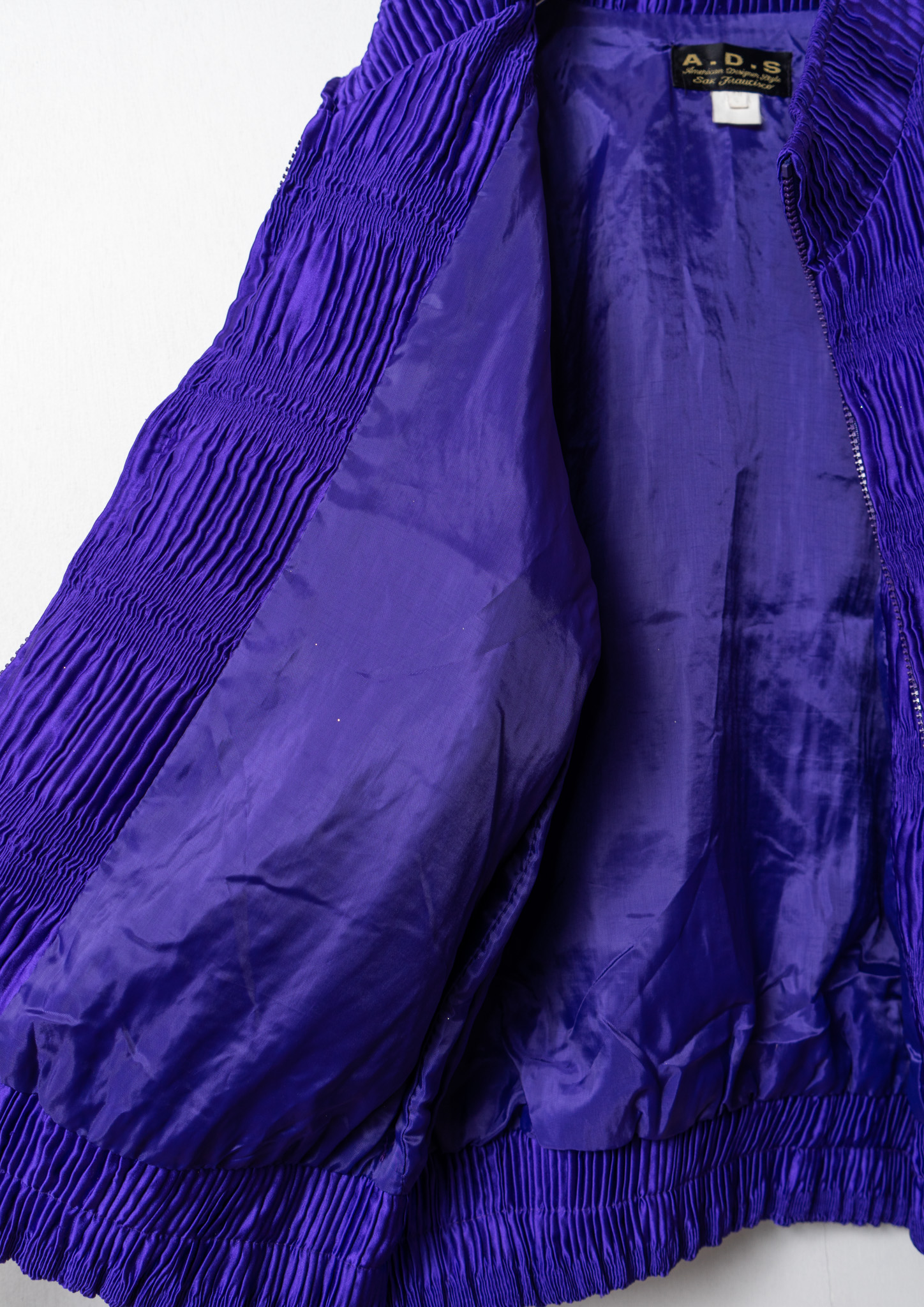 90's Double Pocket Design Shirring Pattern Purple Jacket