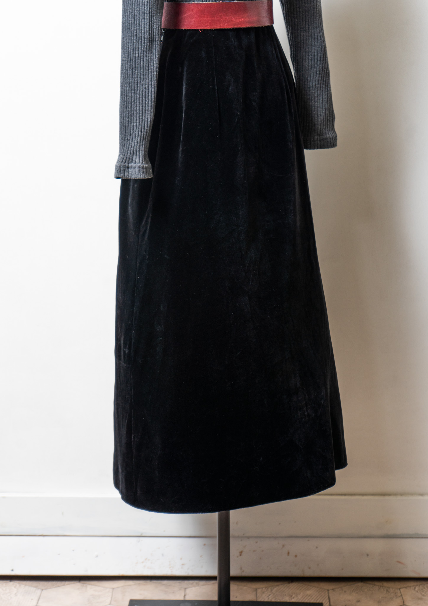 70~80's Black Velour Maxi Skirt