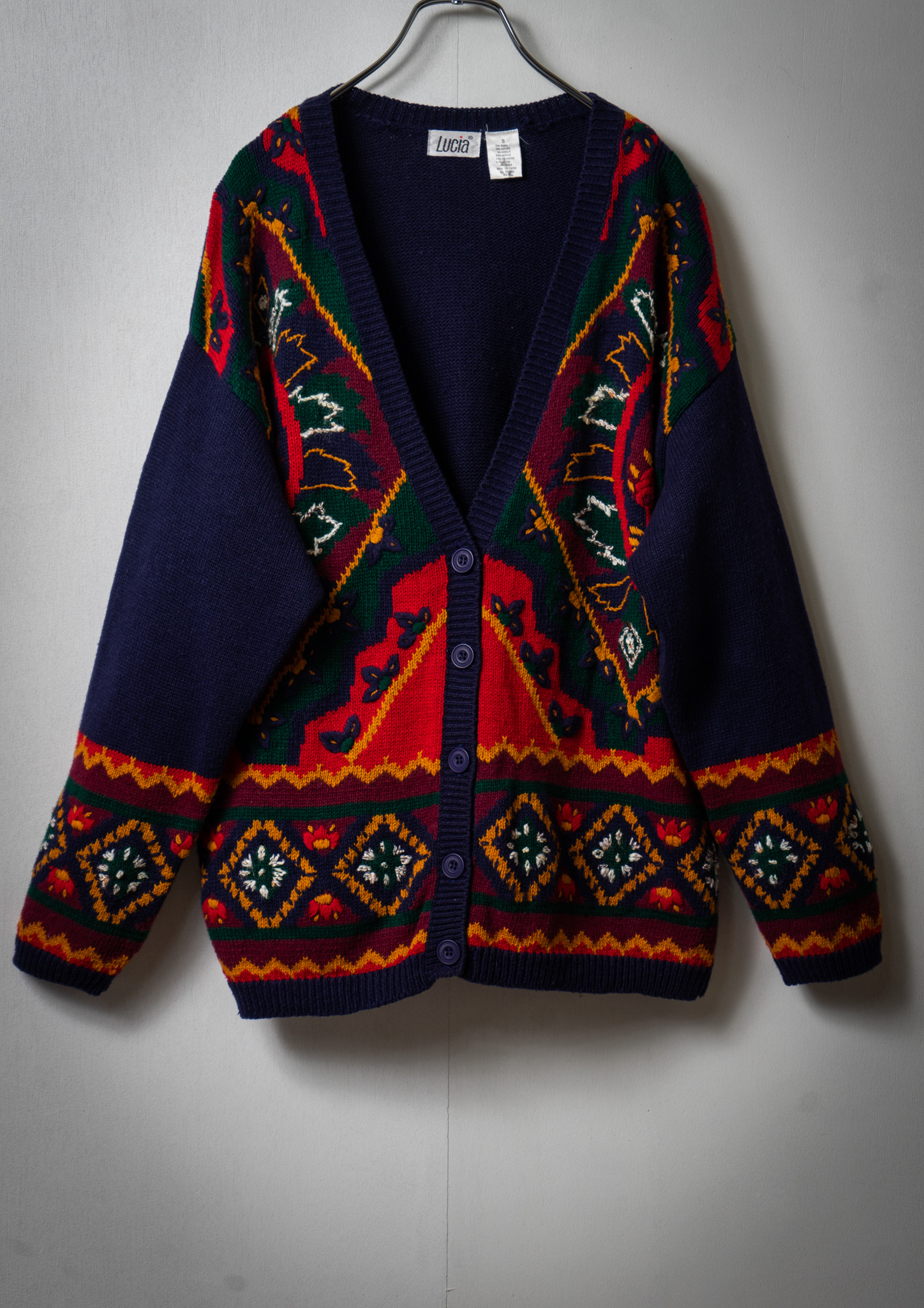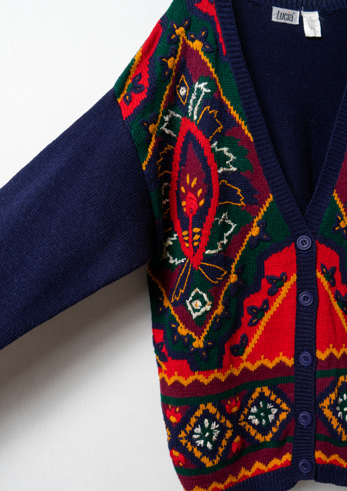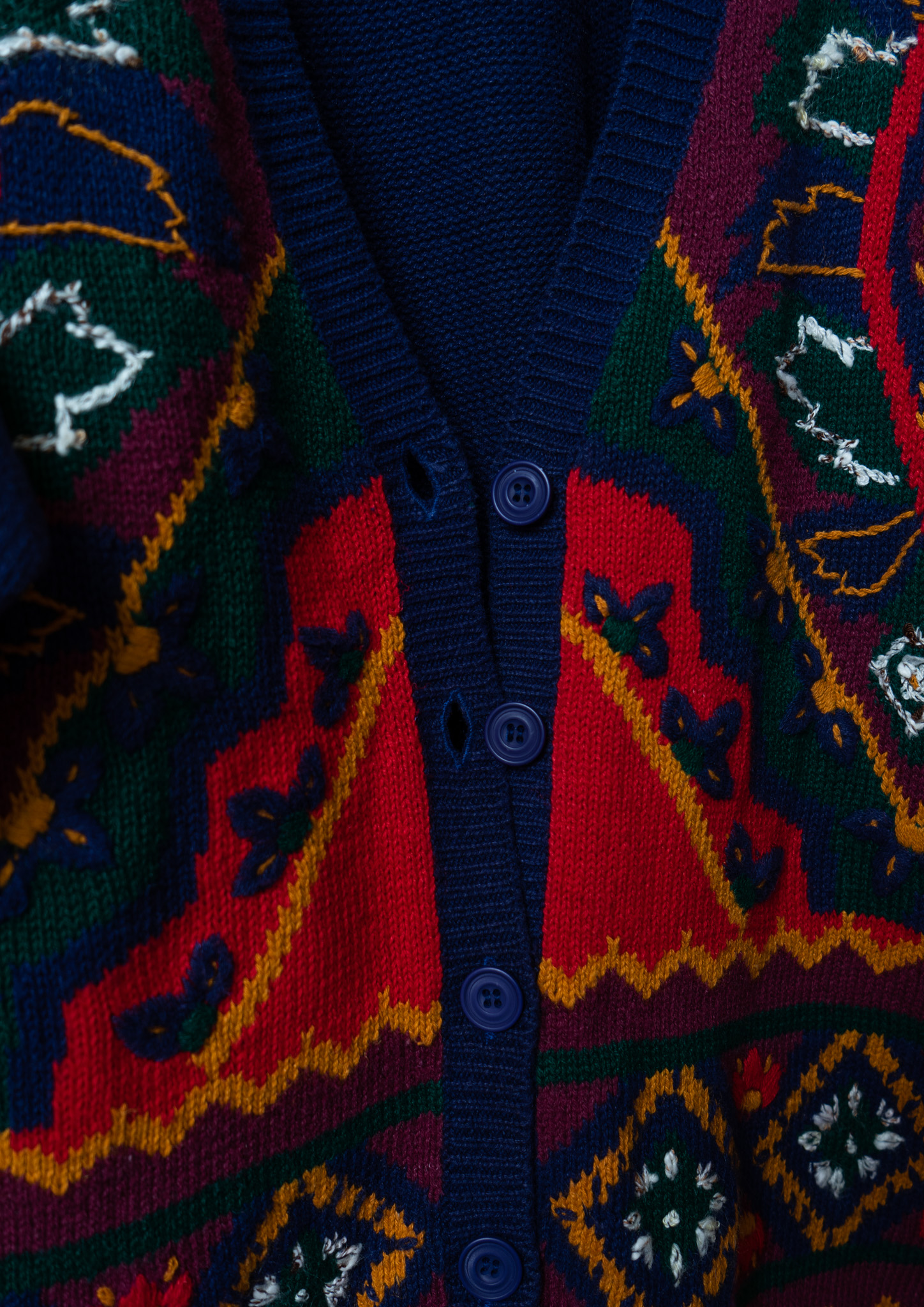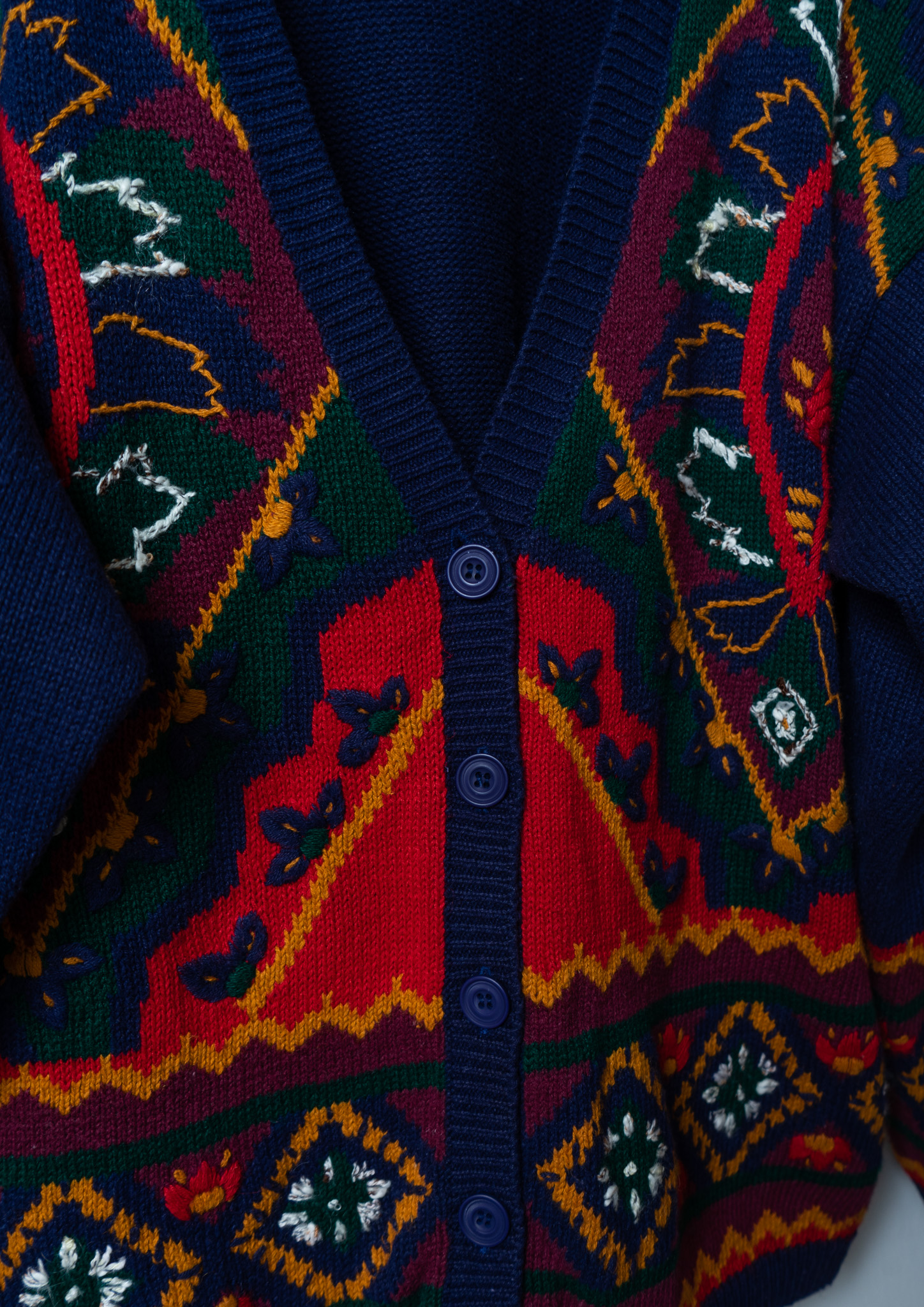 80's Botanical Embroidery Design Navy Cardigan