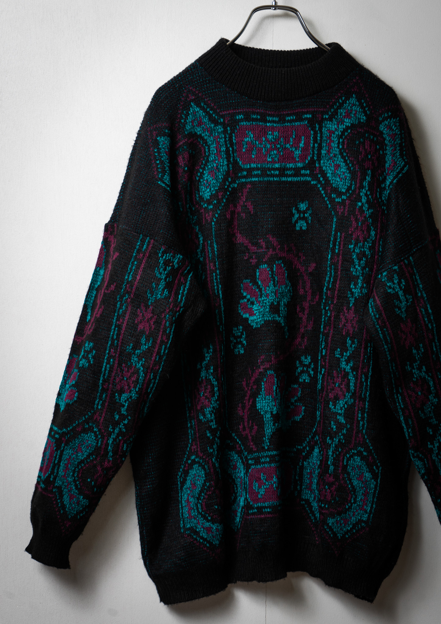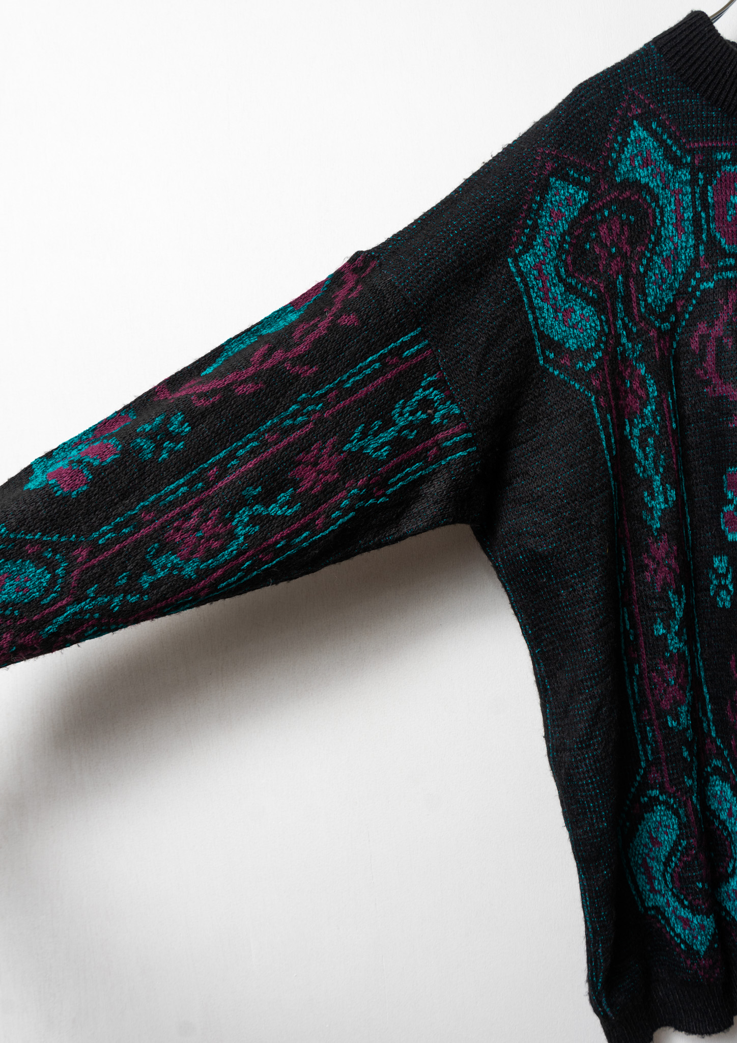 80's Double Pocket Design Unique Pattern Multi Color Mohair Cardigan