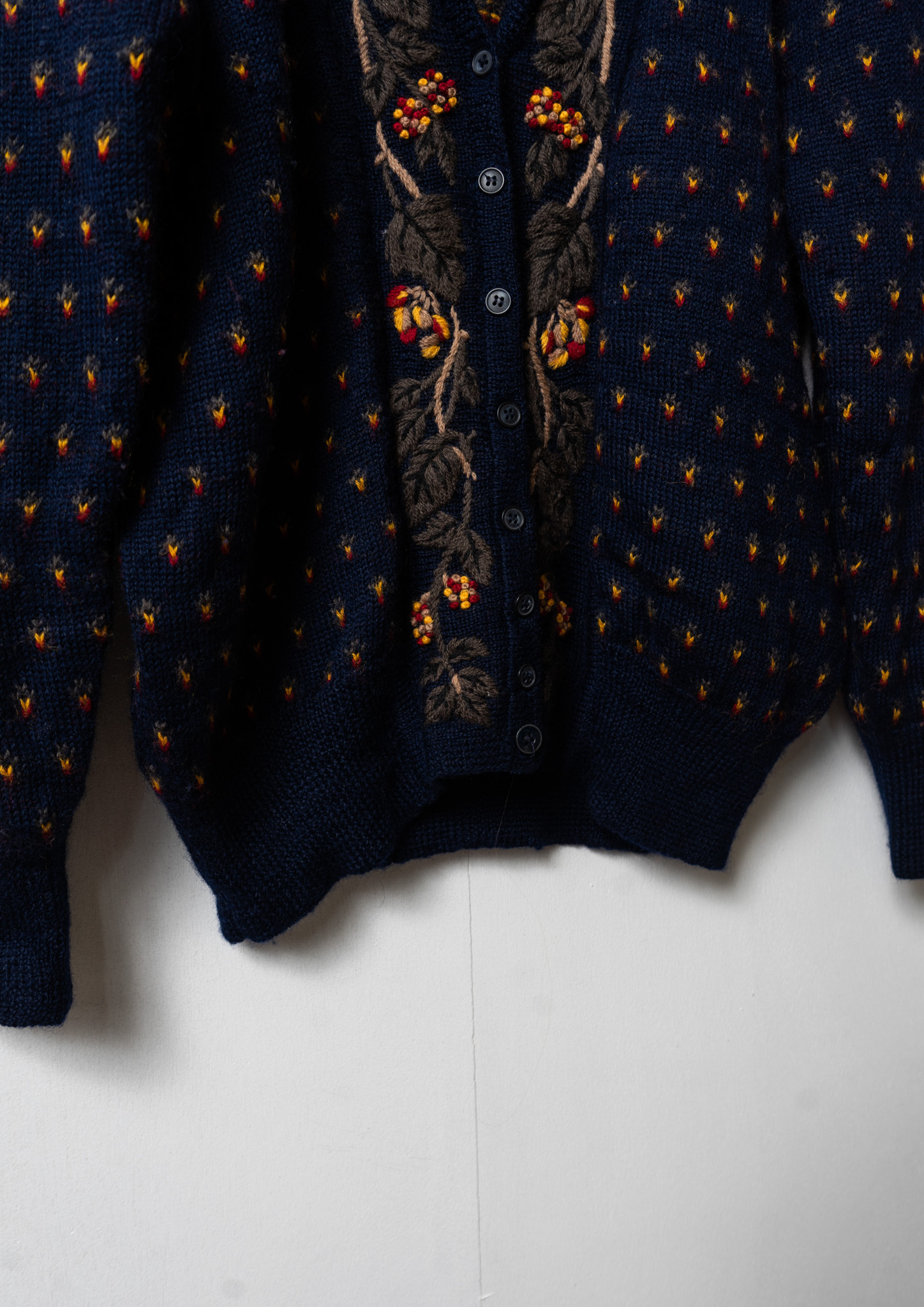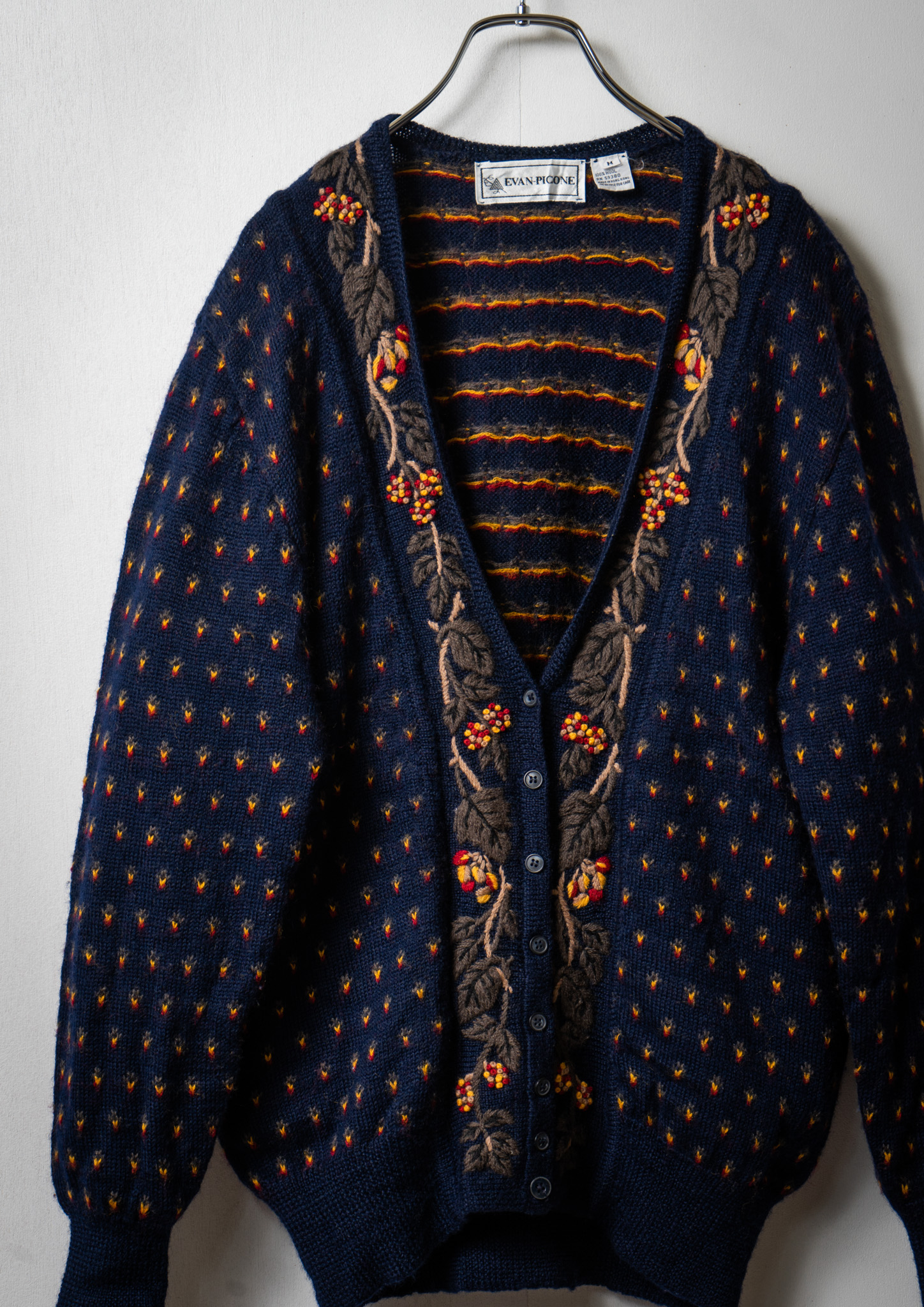 80's Botanical Cord Embroidery Double Pocket Design Angora Black Cardigan