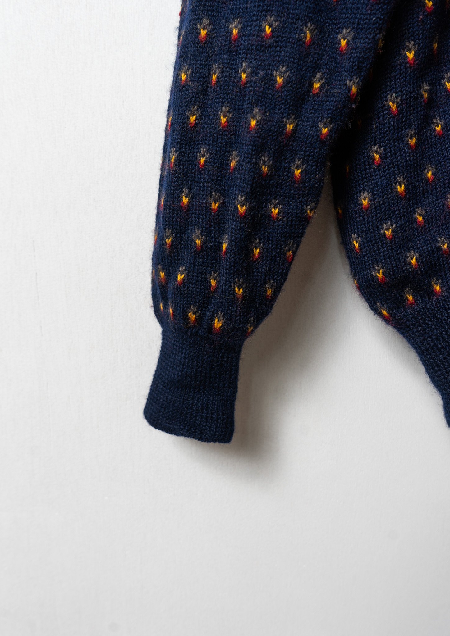 80's Double Pocket Design Unique Pattern Multi Color Mohair Cardigan