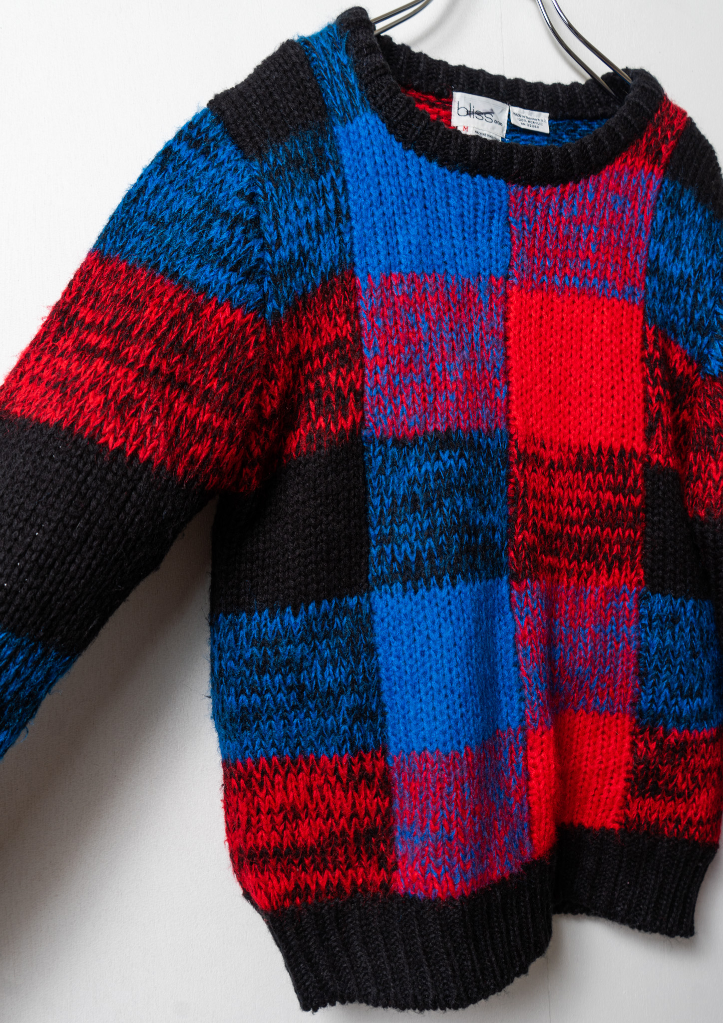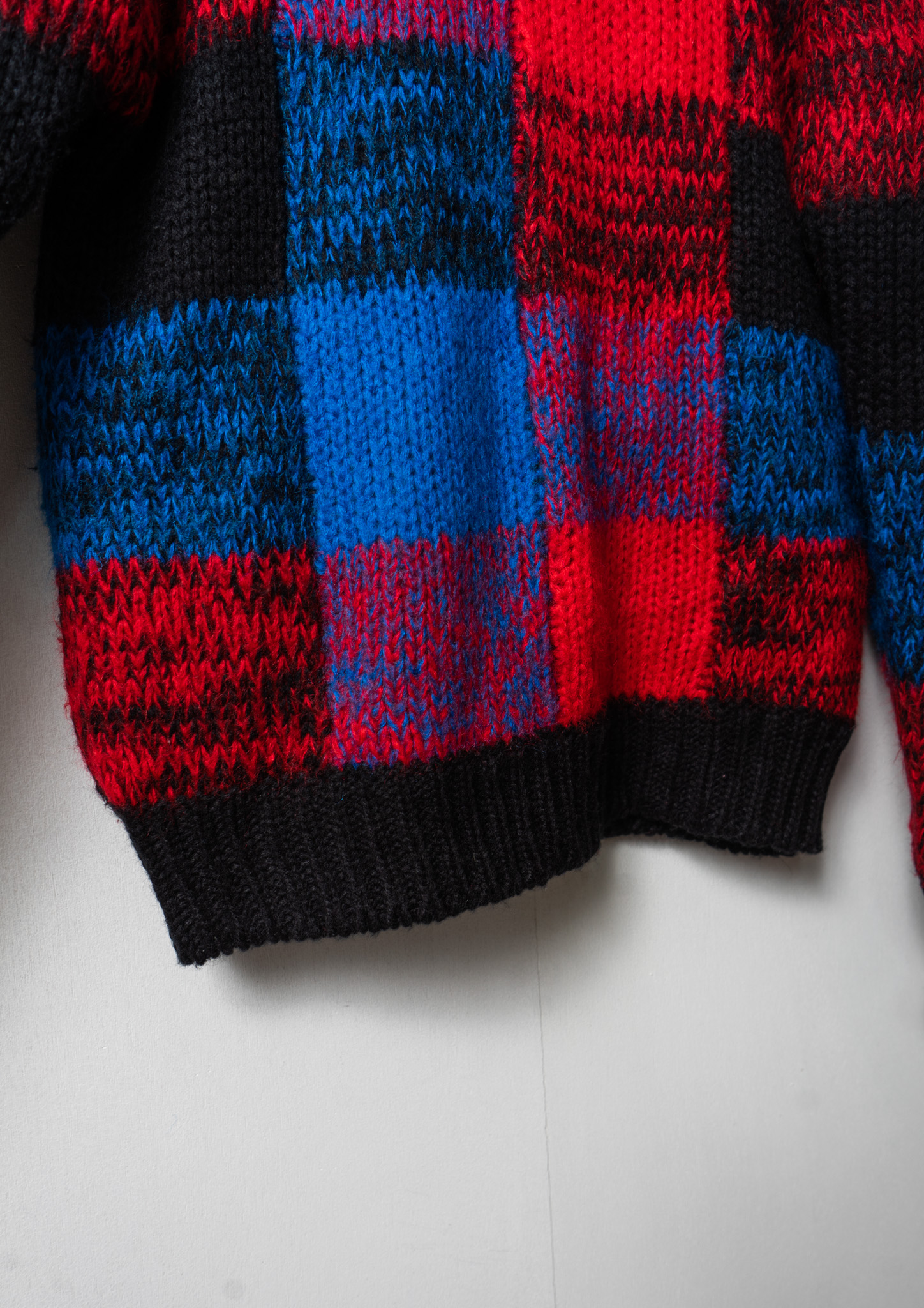 80's Red × Blue Check Like Pattern Black Knit Sweater