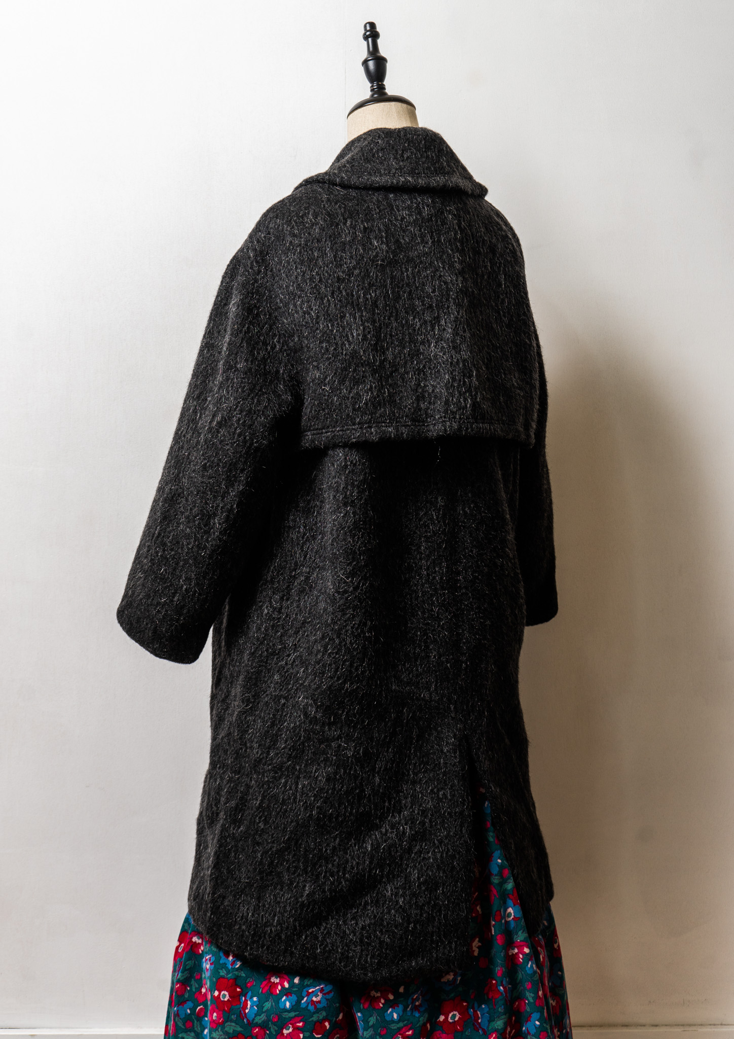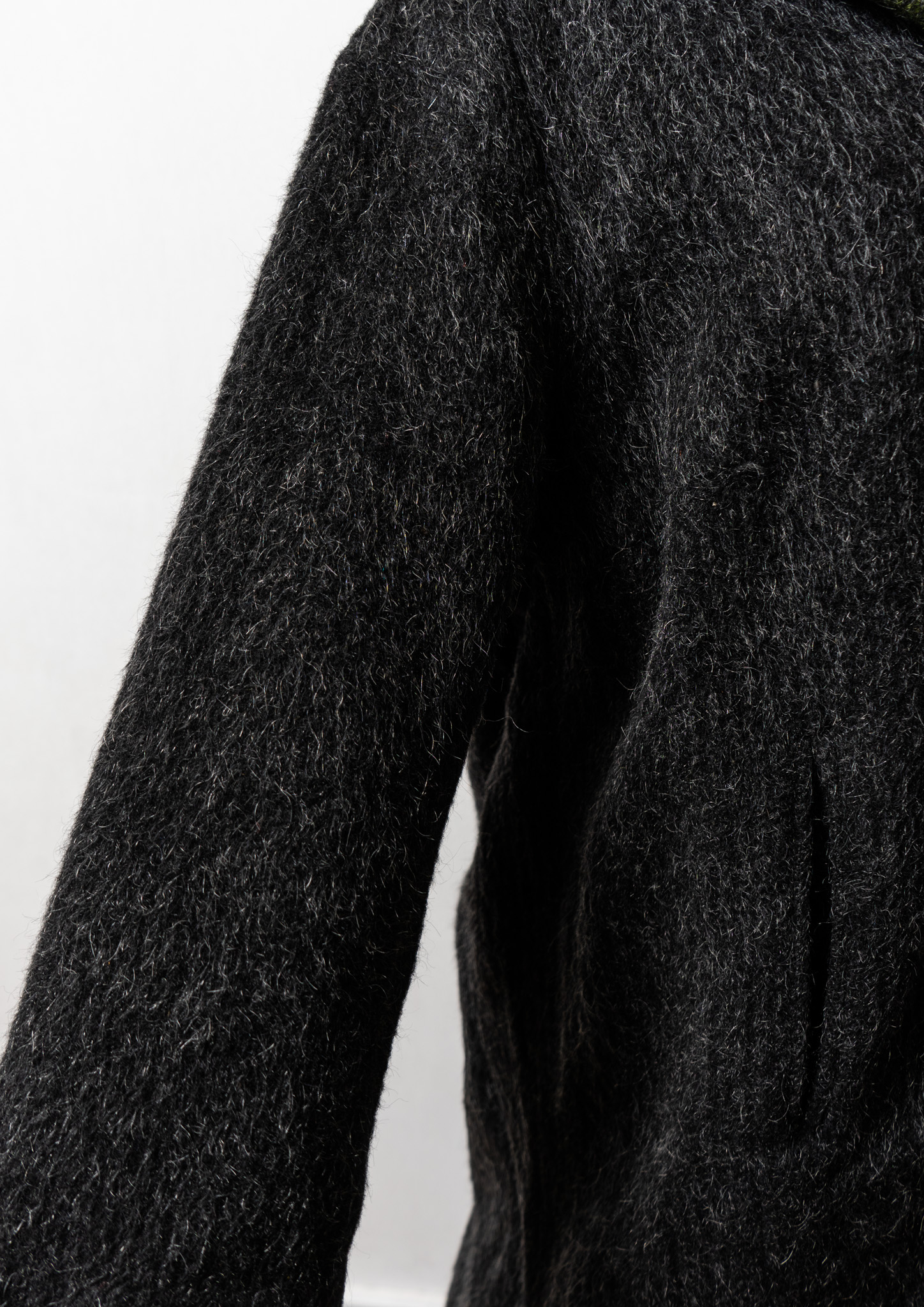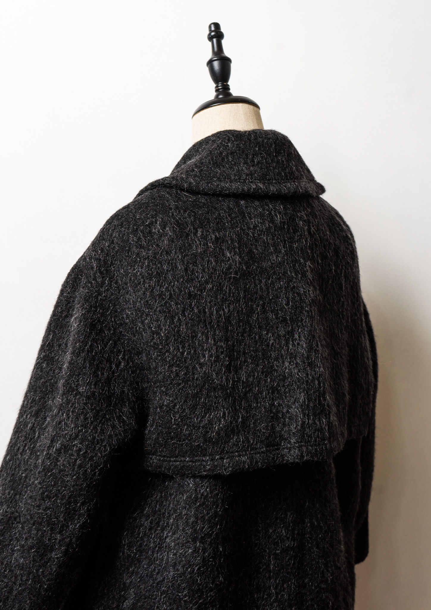80's Big Button × Double Pocket Design Black Shaggy Tyrol Coat