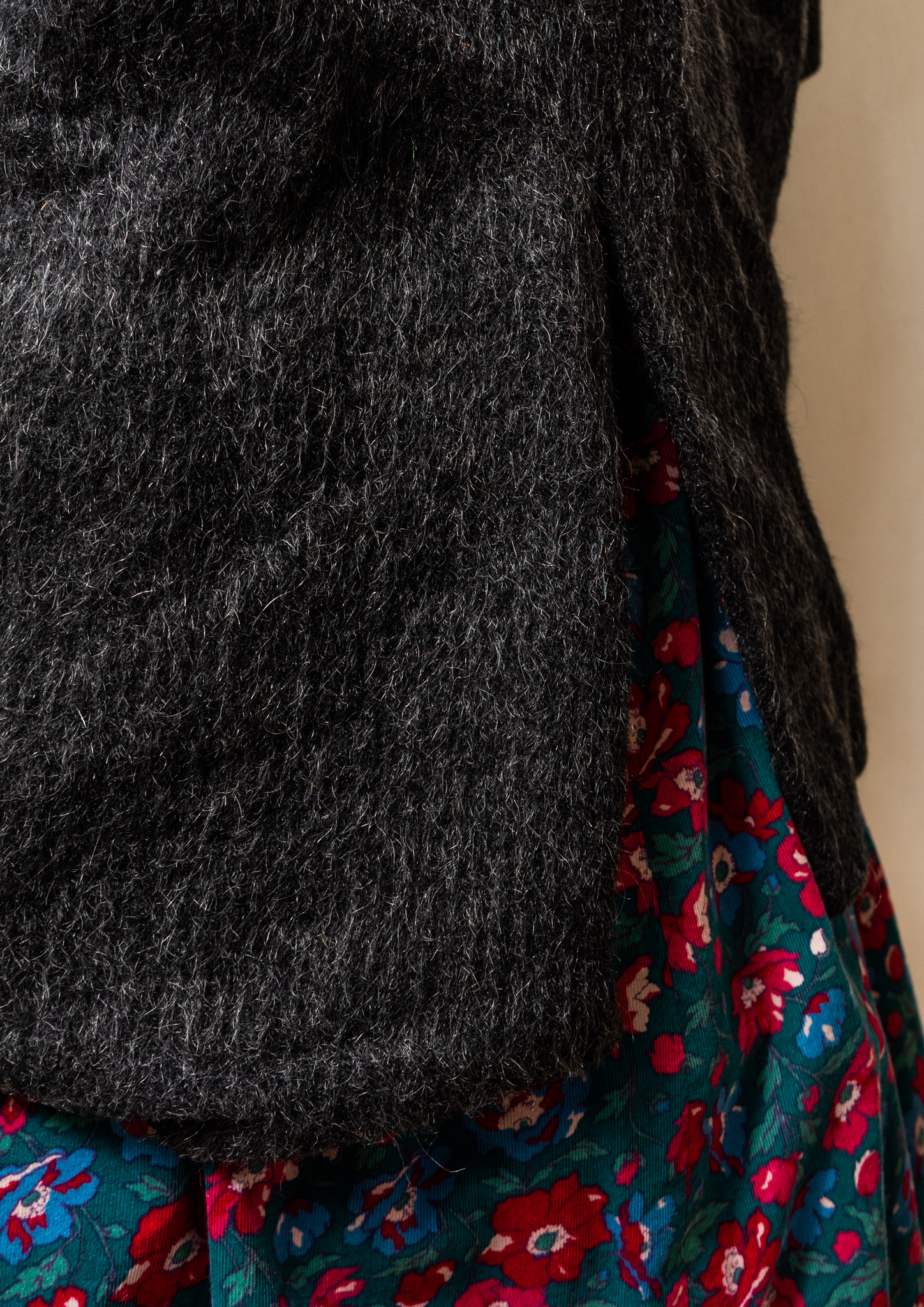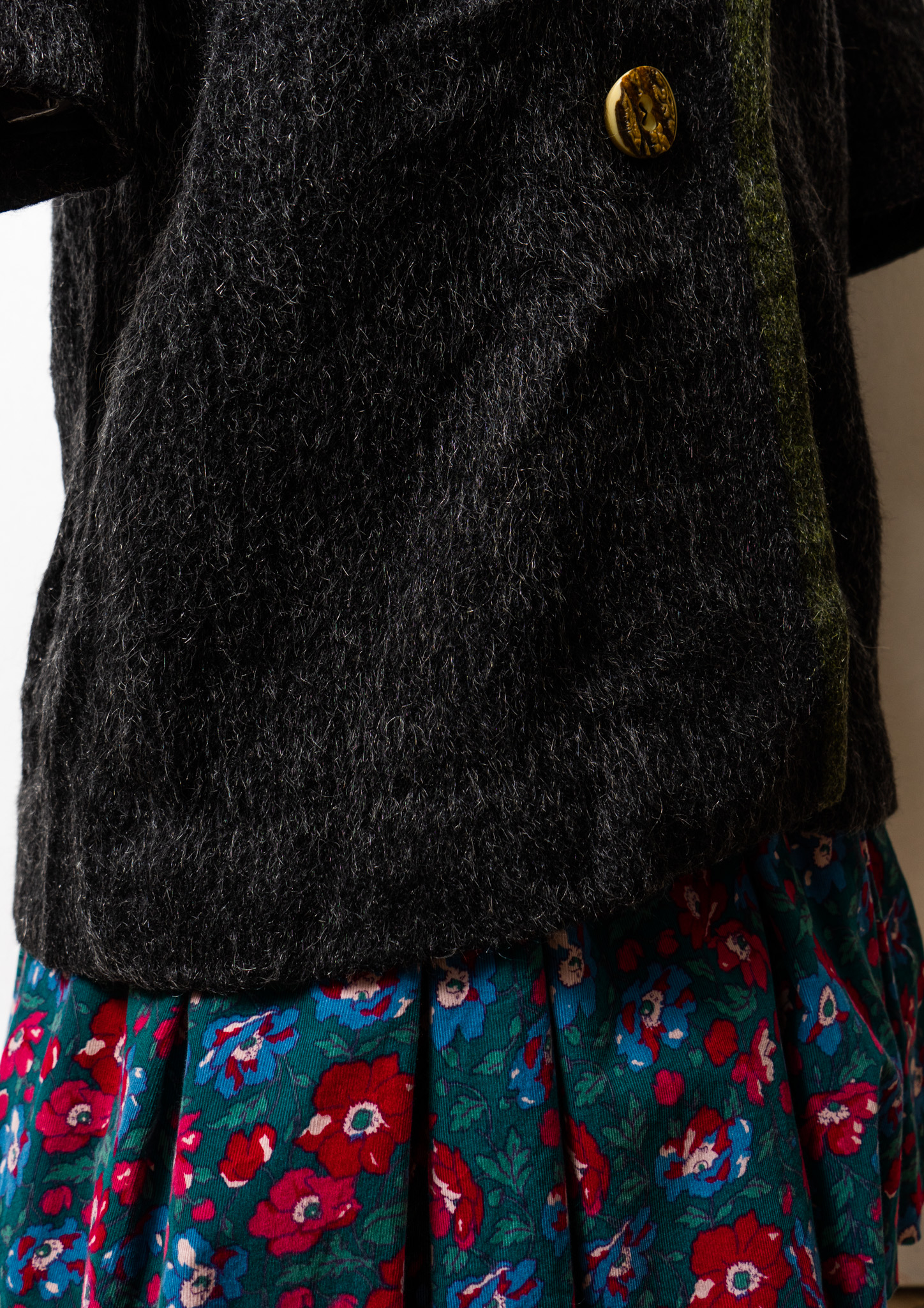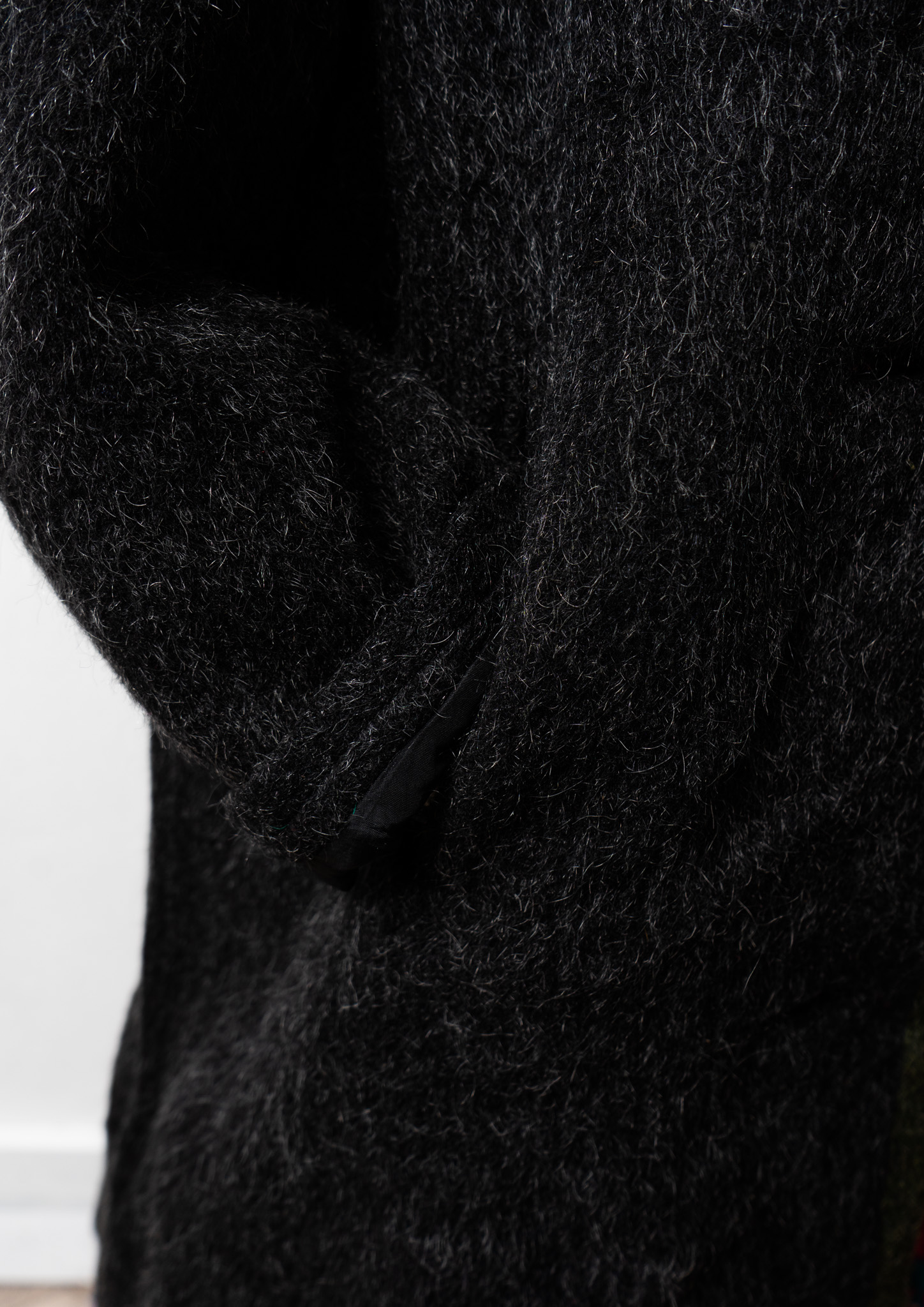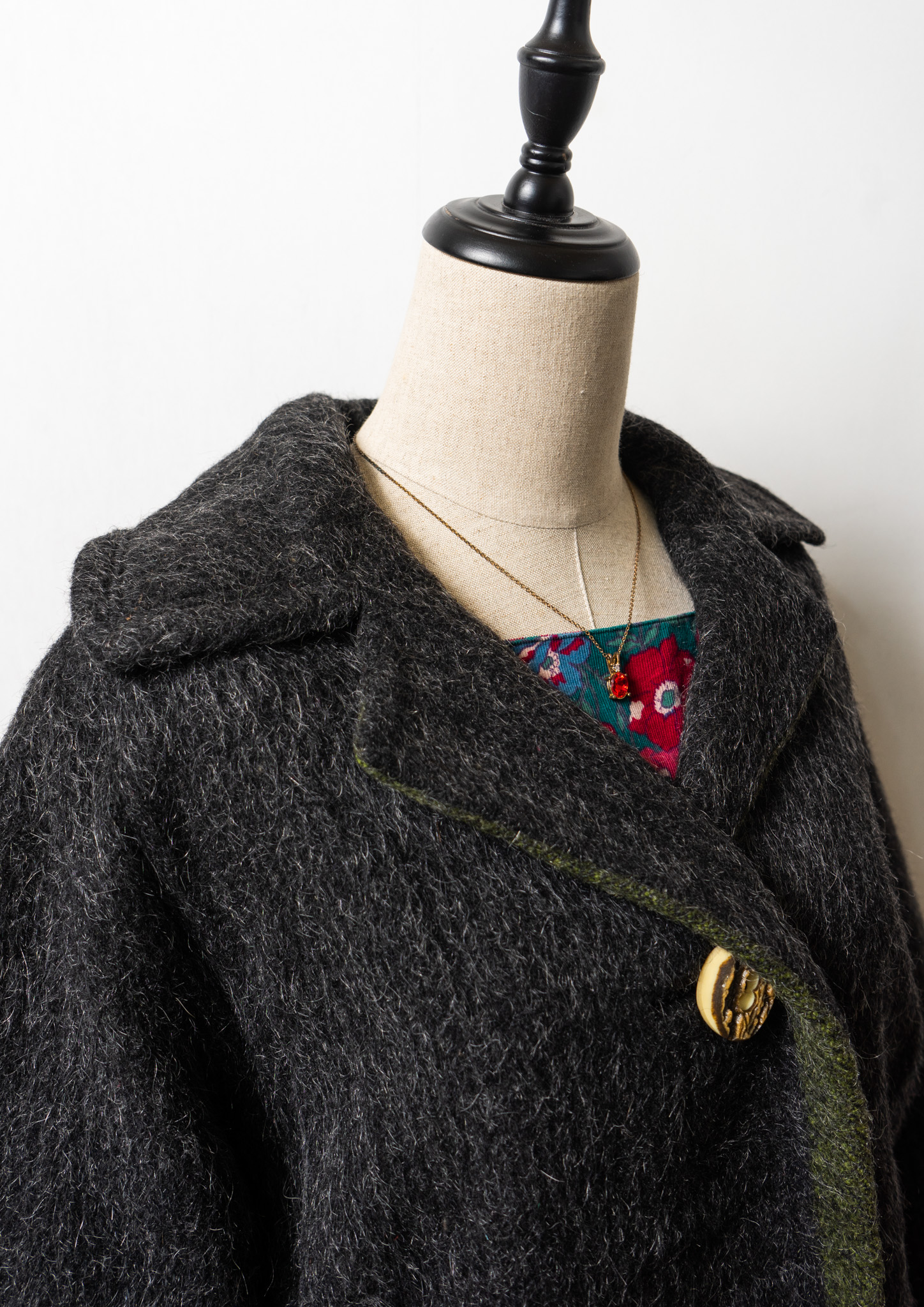 80's Big Button × Double Pocket Design Black Shaggy Tyrol Coat