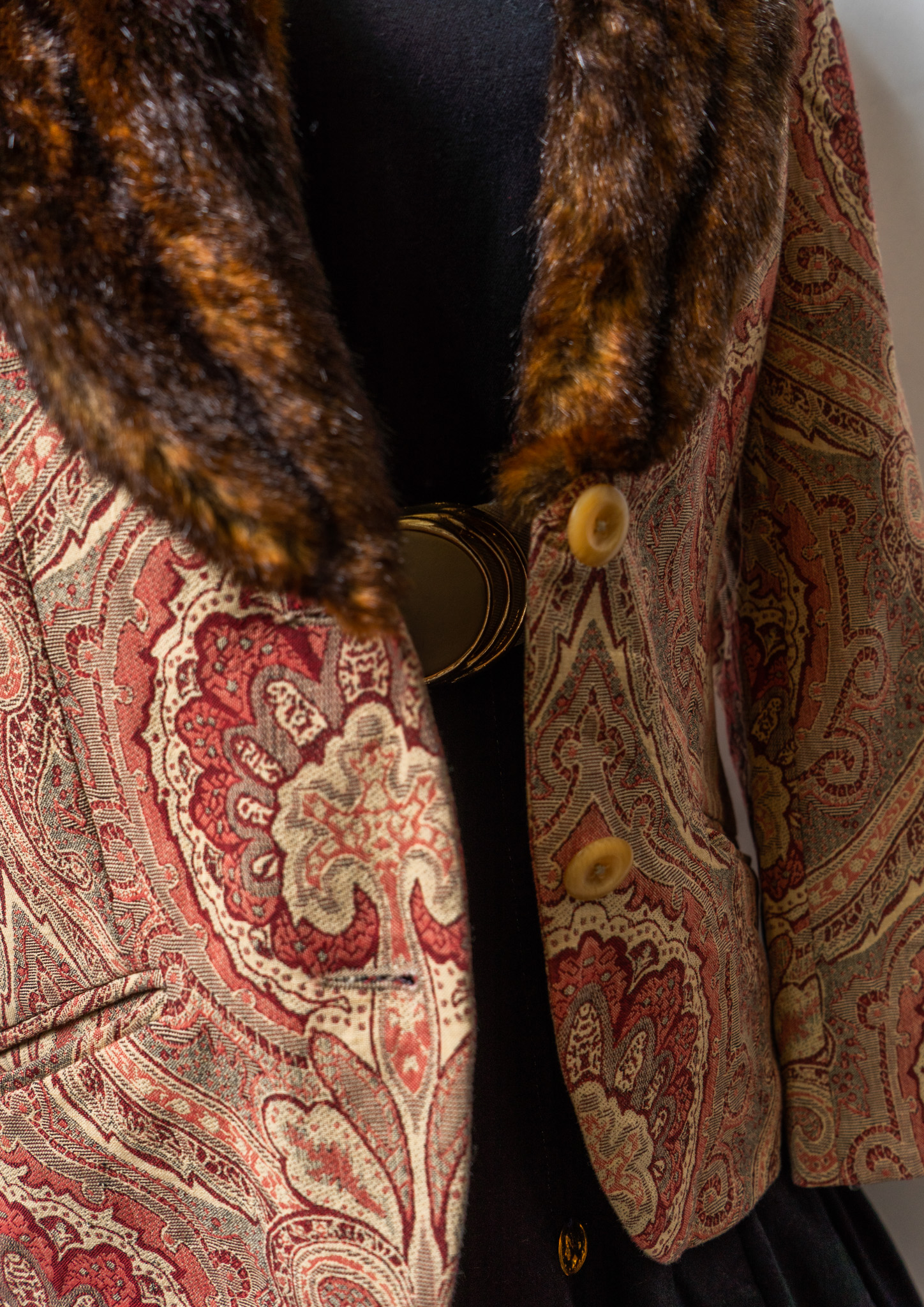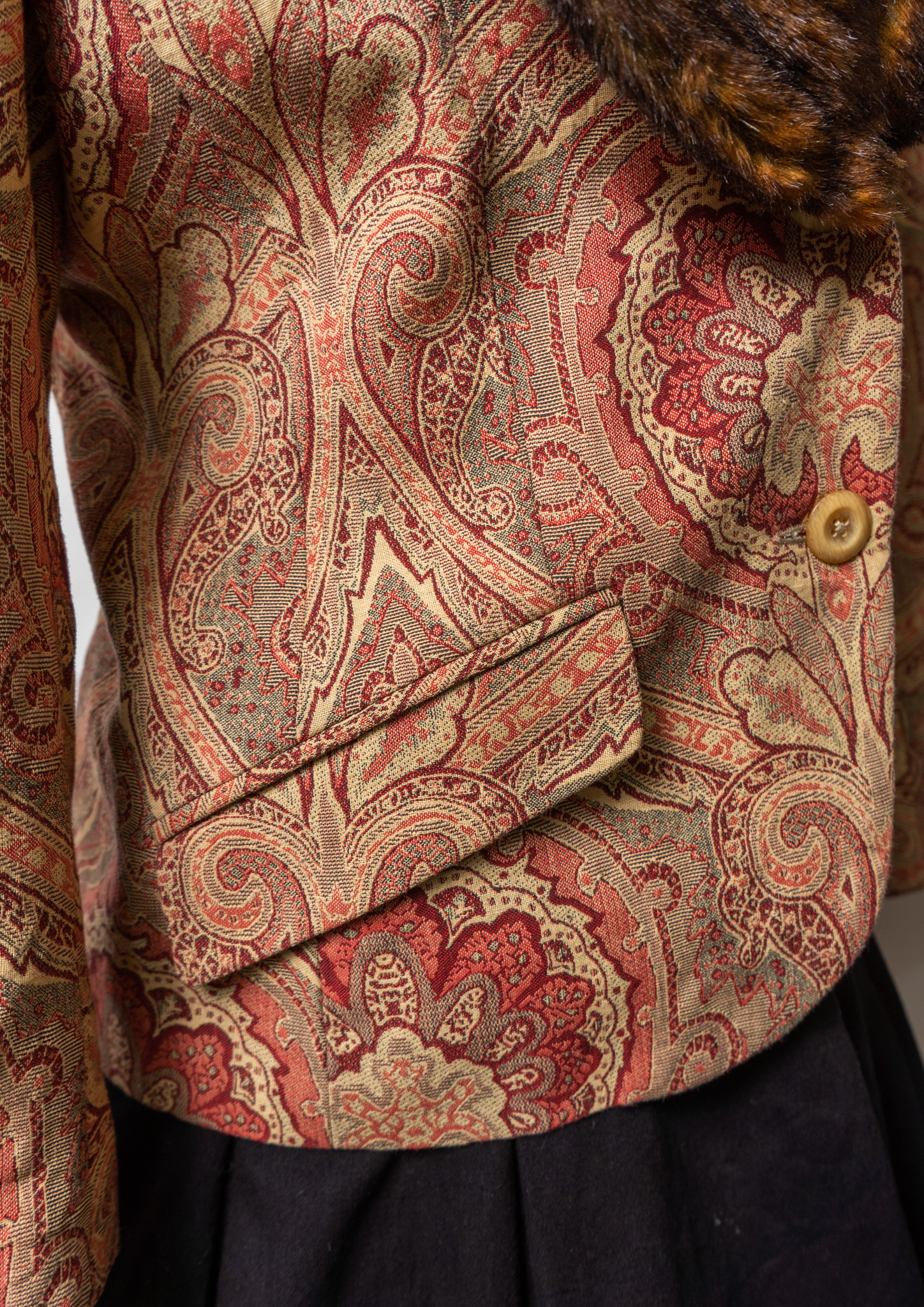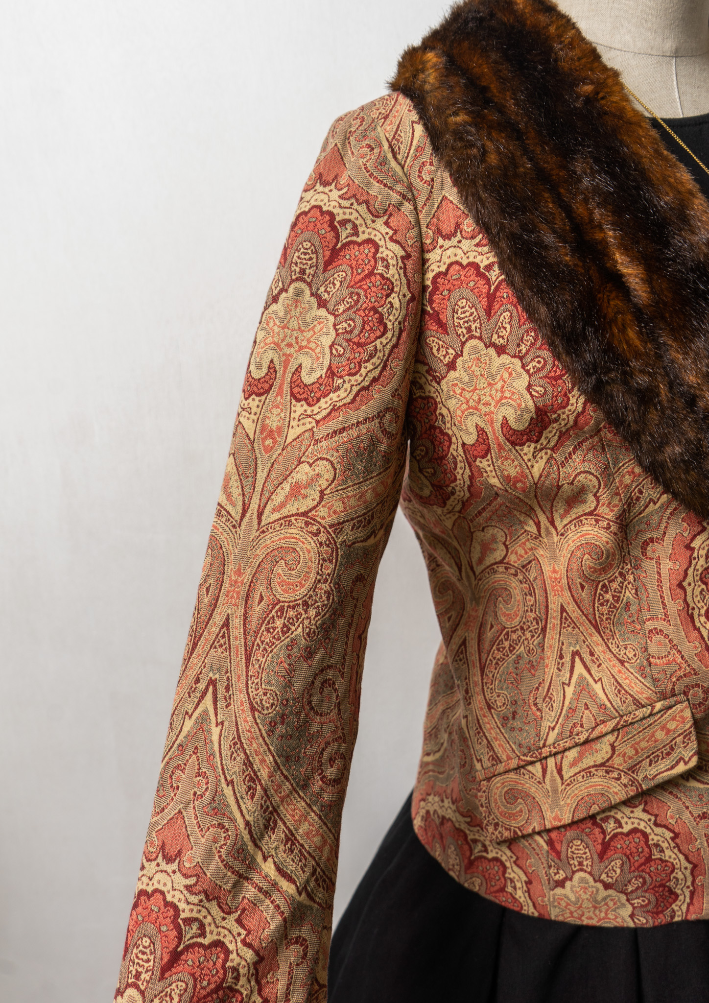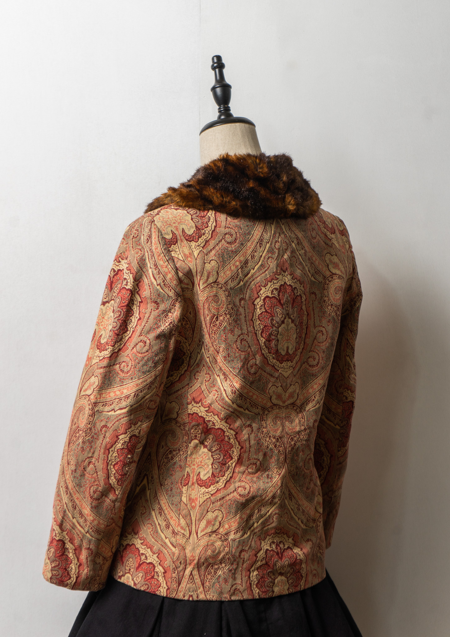 LAUREN Fur Design Paisley Pattern Double Pocket Gobelin Jacket