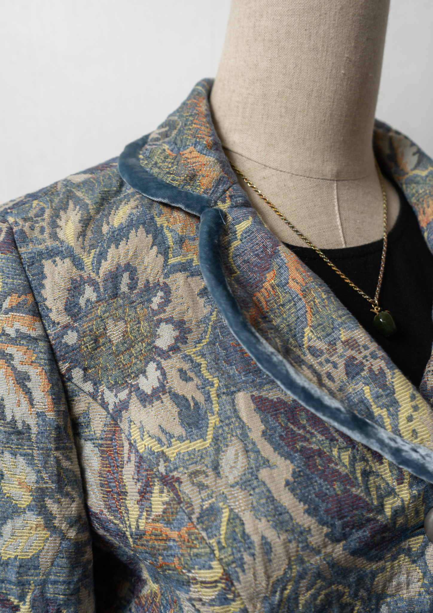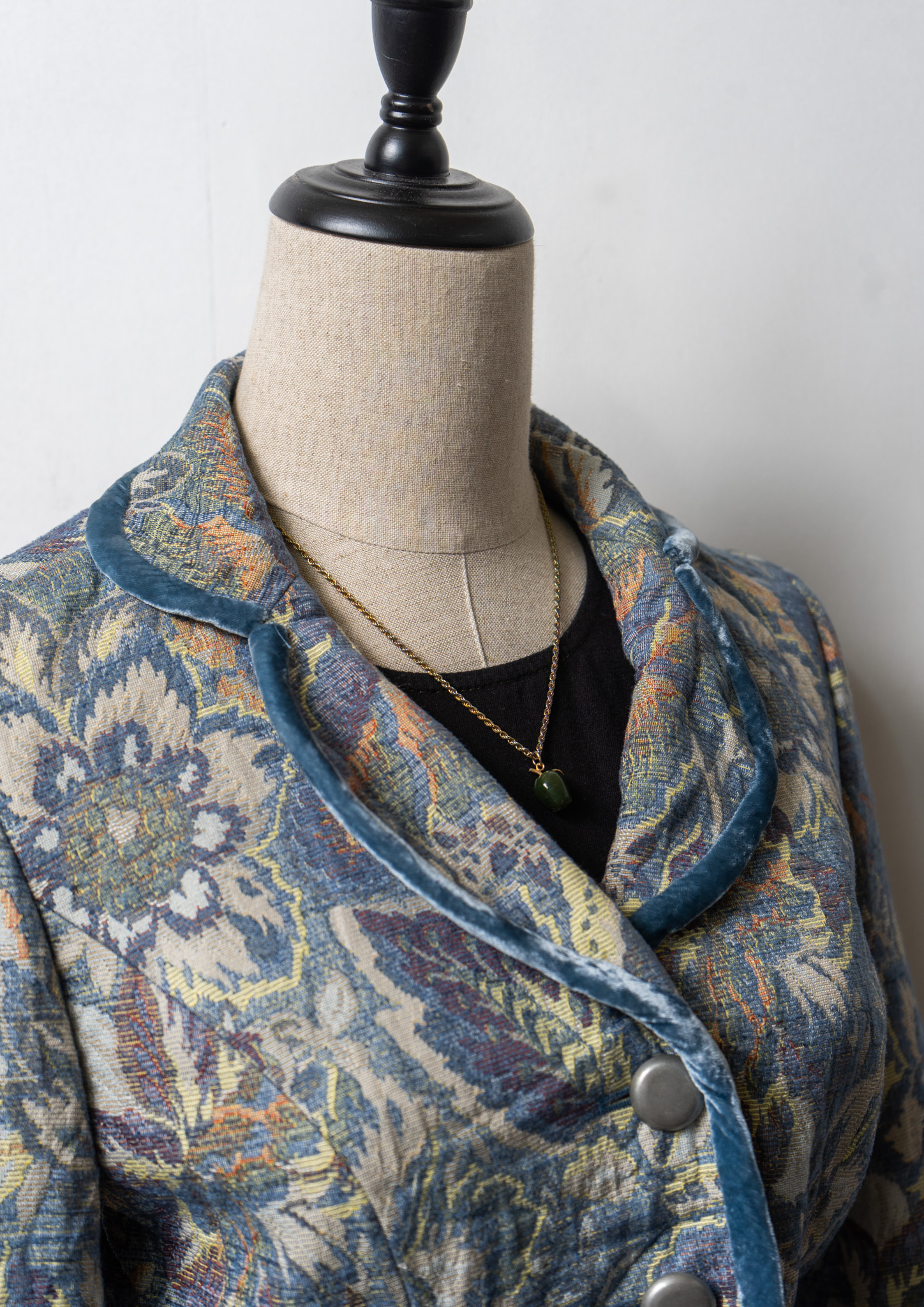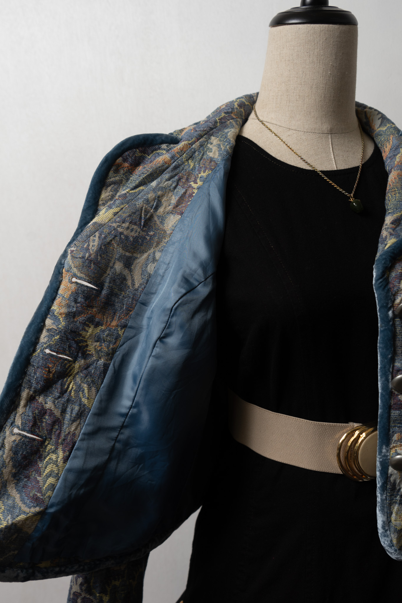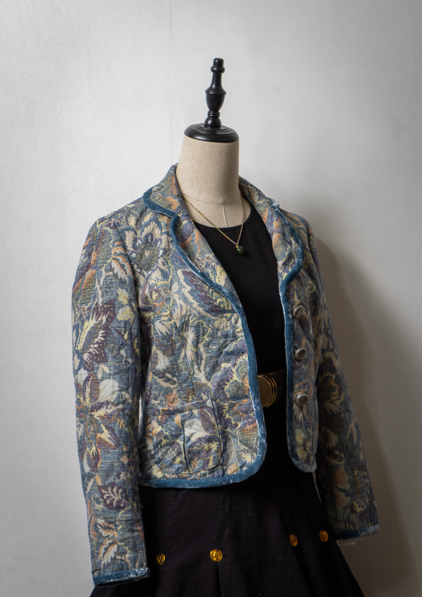 90's Double Pocket Design Botanical Blue Jacquard Jacket