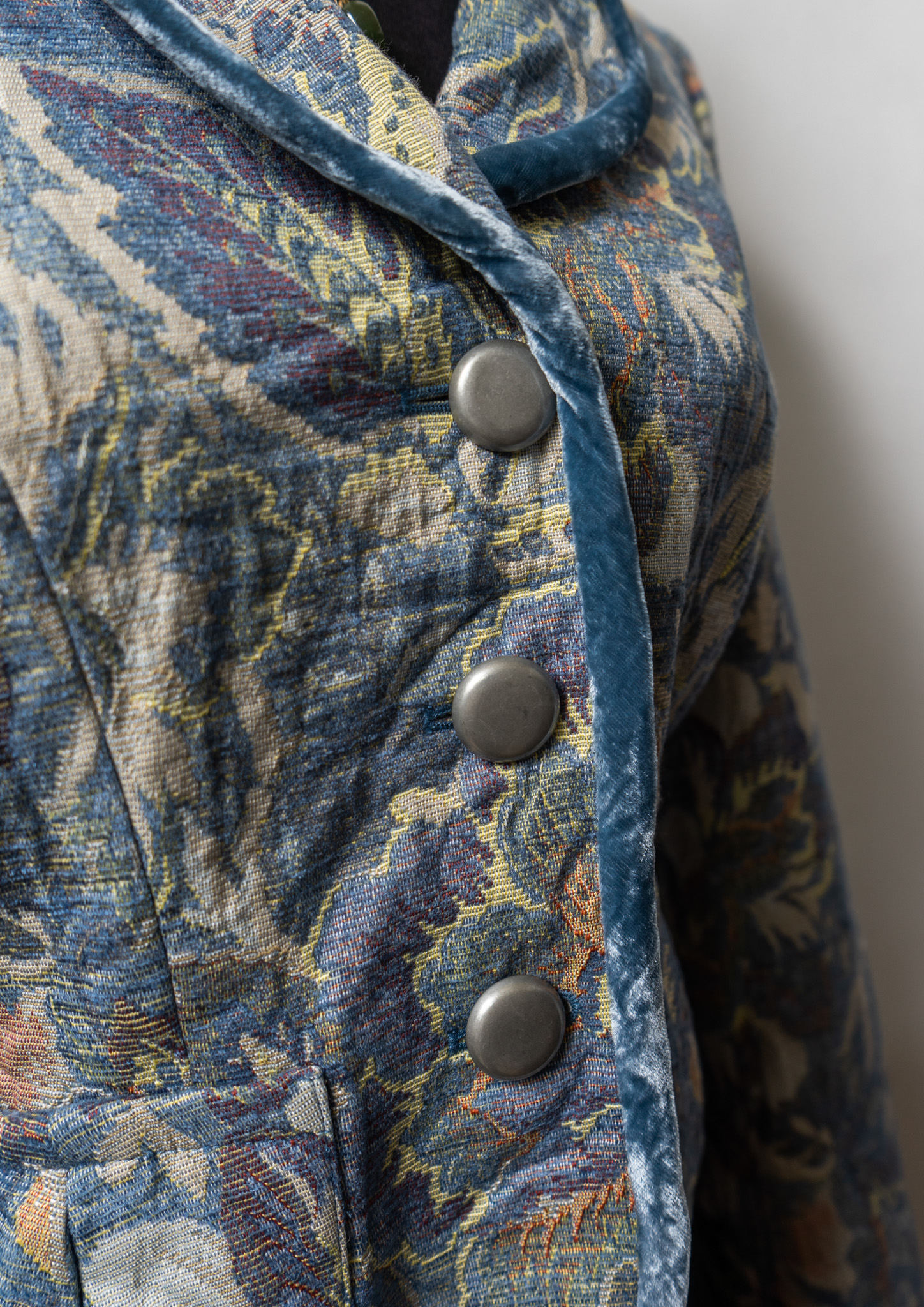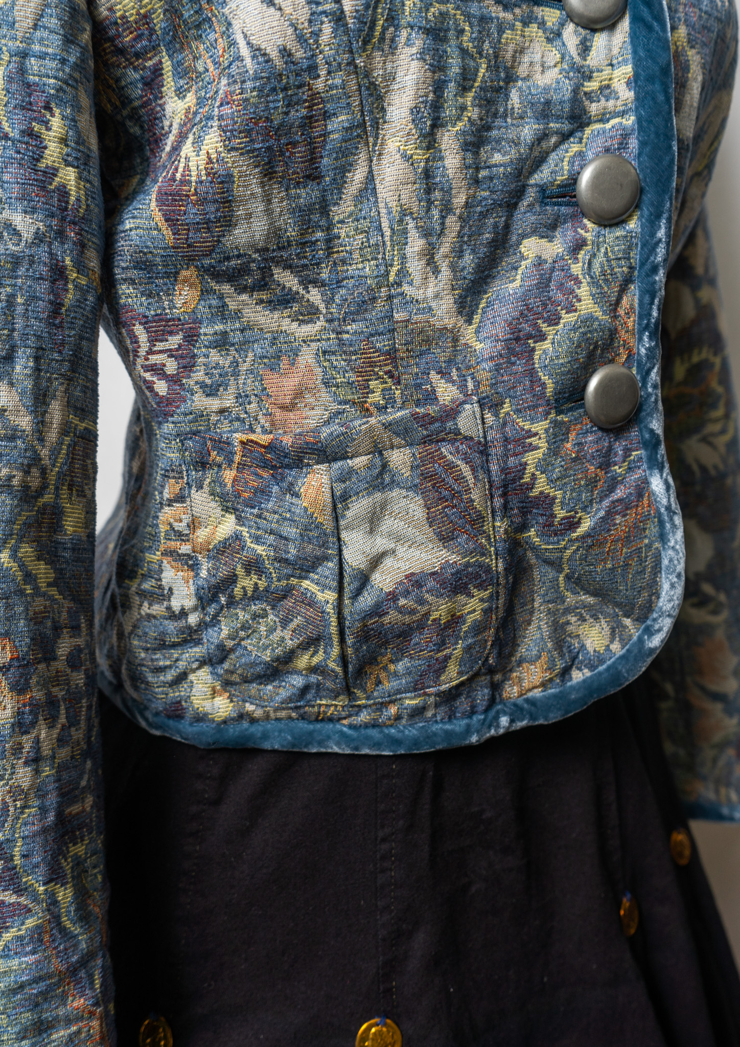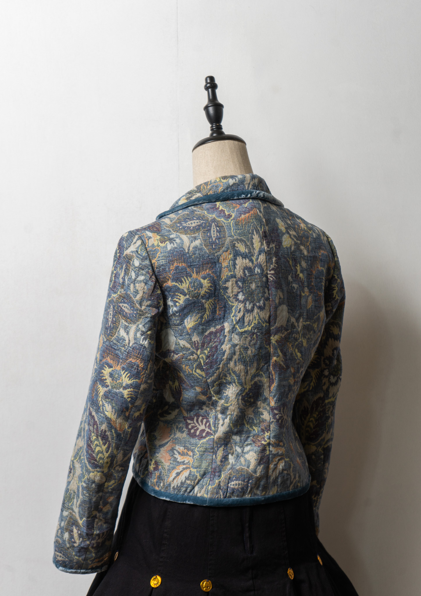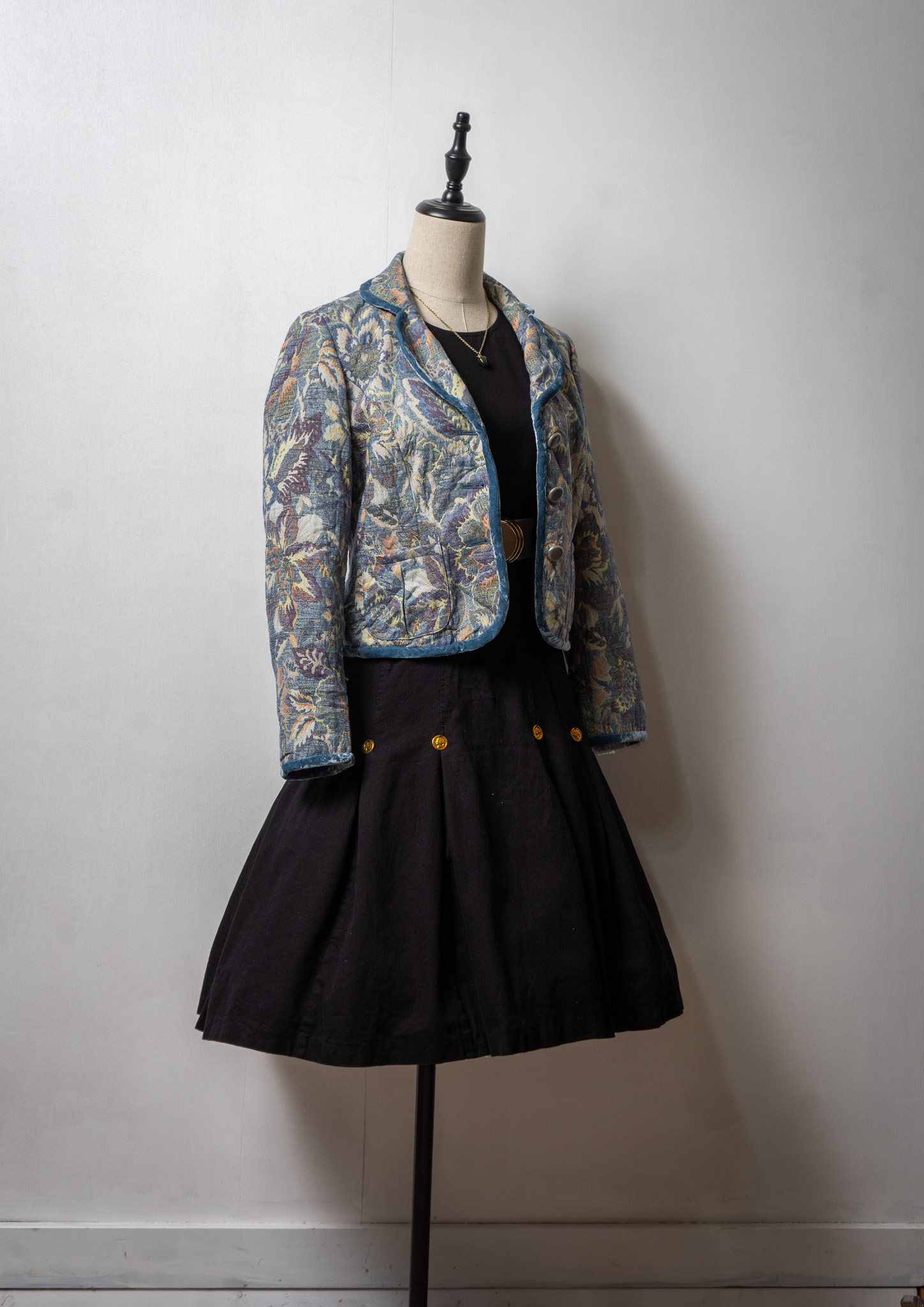 90's Double Pocket Design Botanical Blue Jacquard Jacket