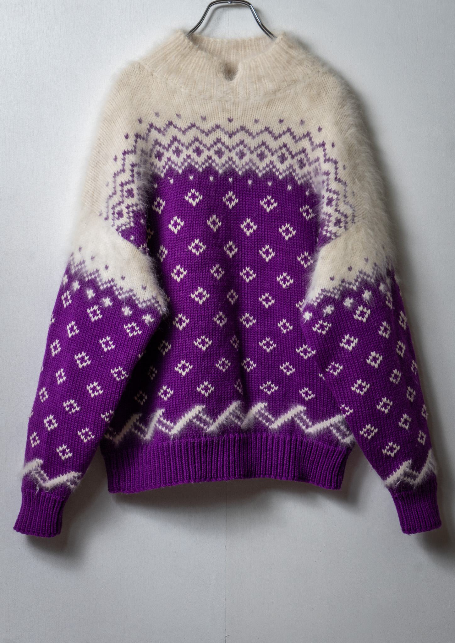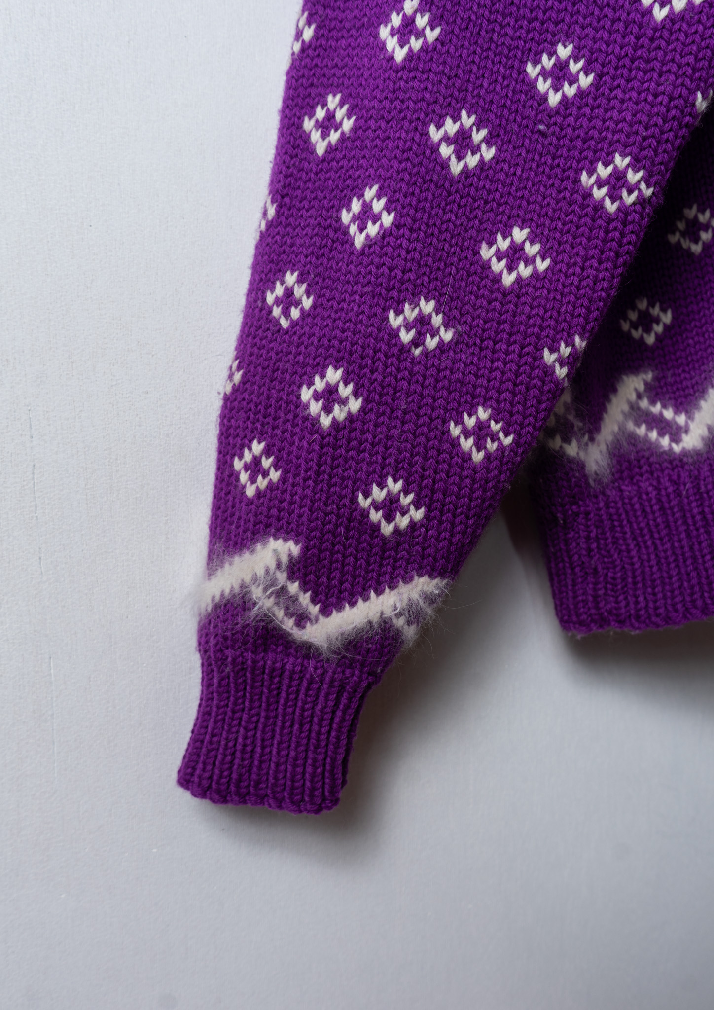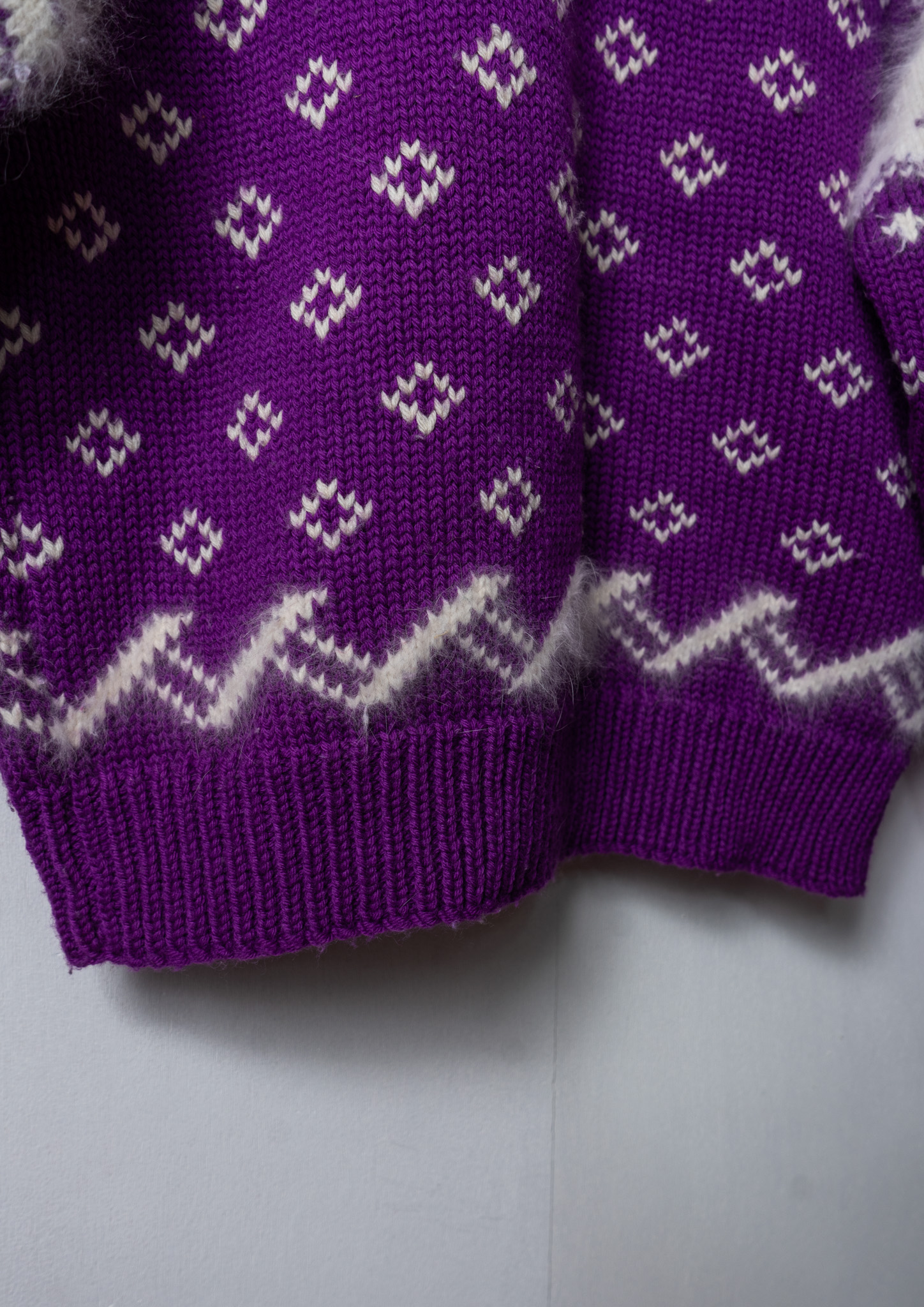 80's USA Diamond Pattern Purple Wool Knit Sweater