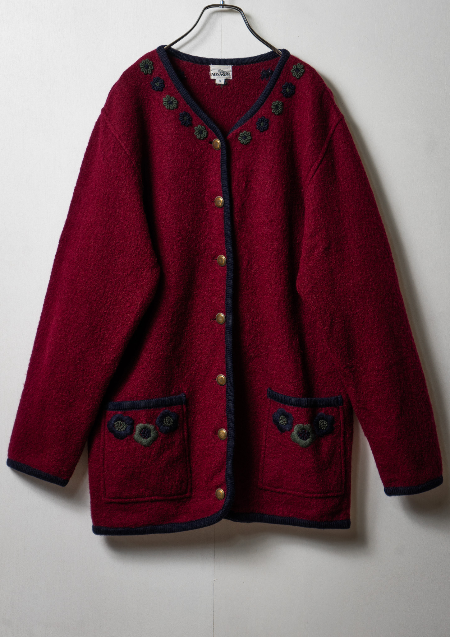 90's Flower Embroidery Bordeaux Wool Jacket