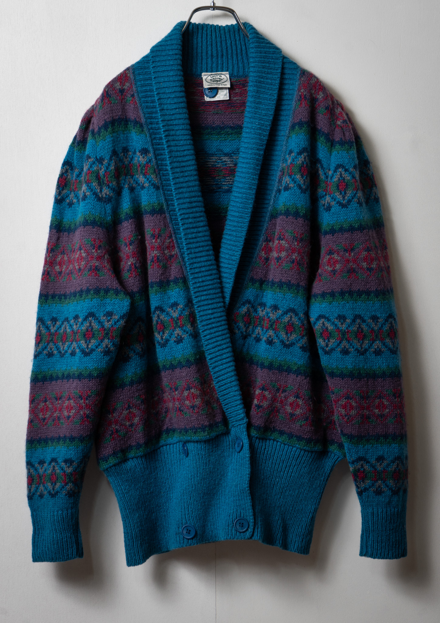 80's Laura Ashley Native Like Pattern Double Button Light Blue Knit Sweater