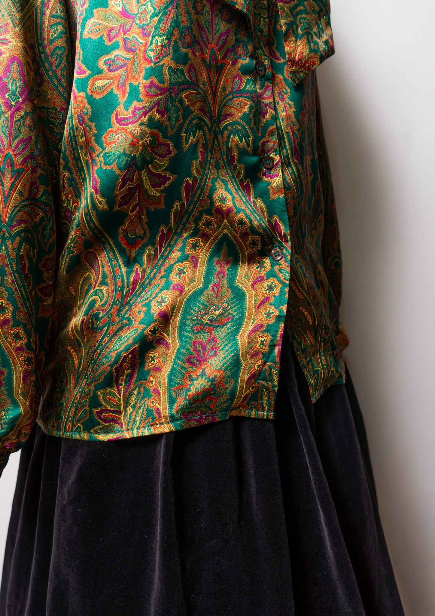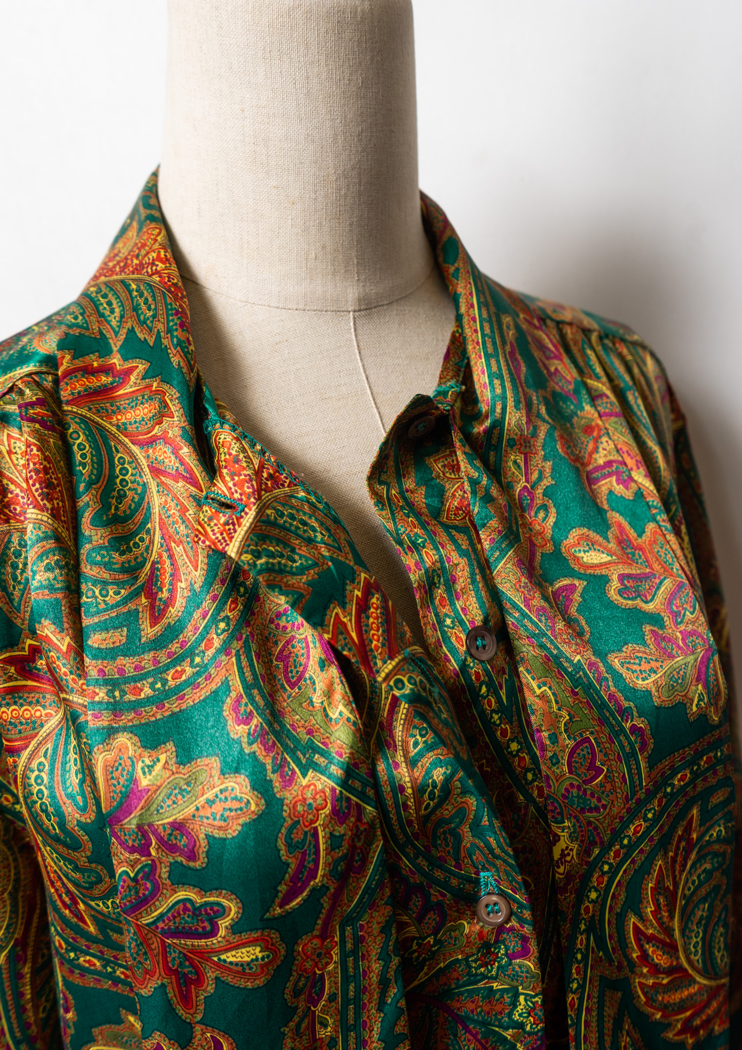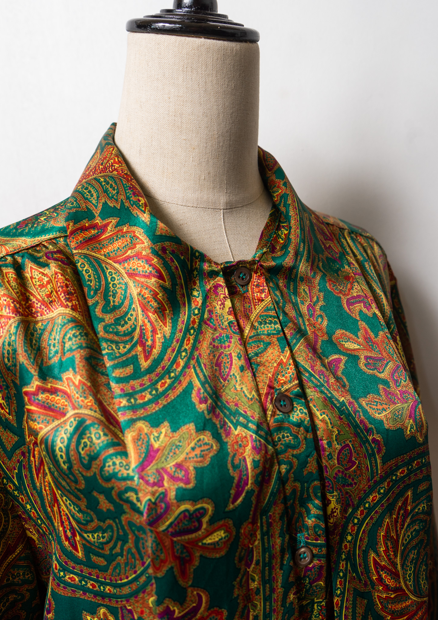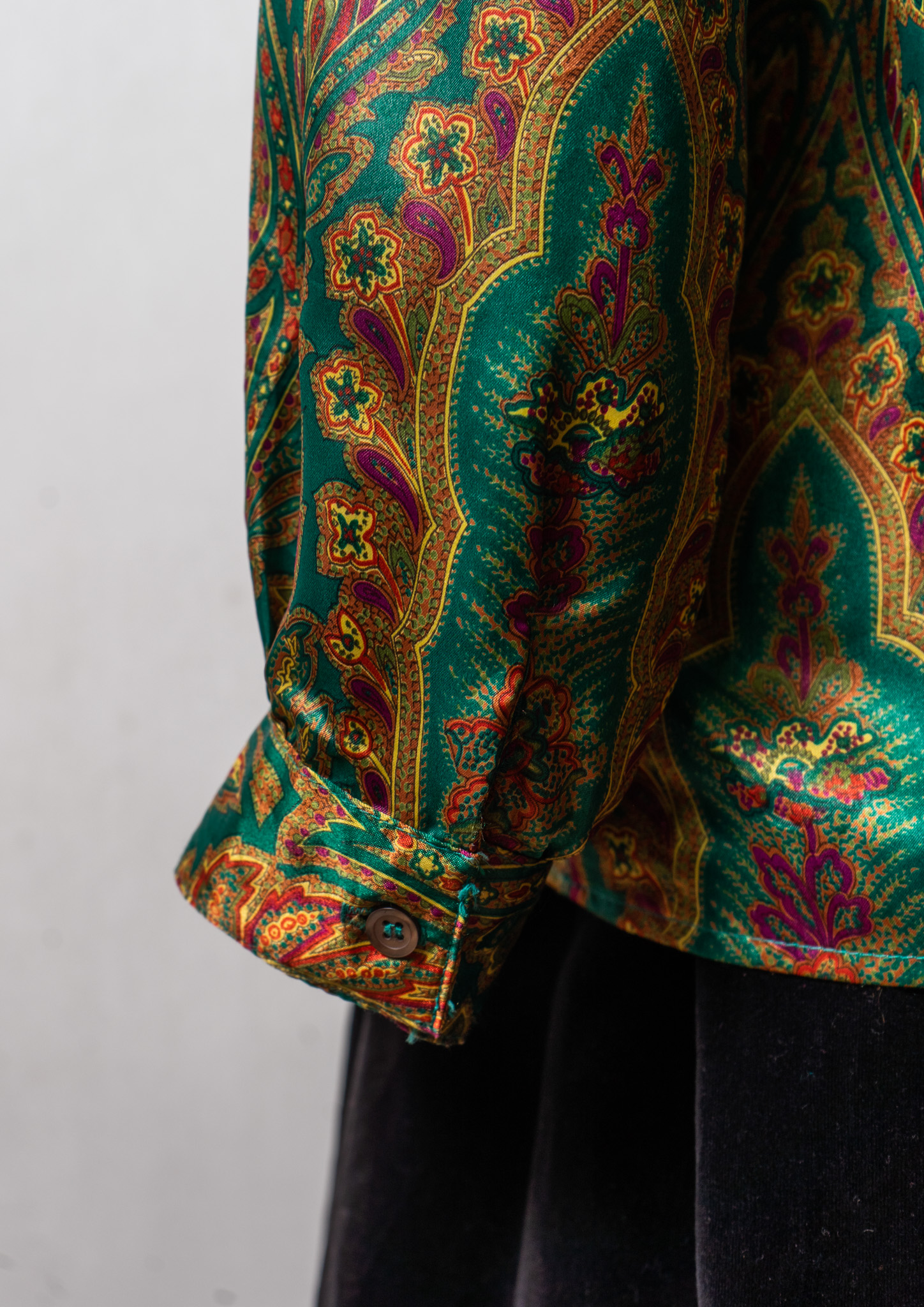 80~90's Canada Multi Color Paisley Pattern Glossy Blouse