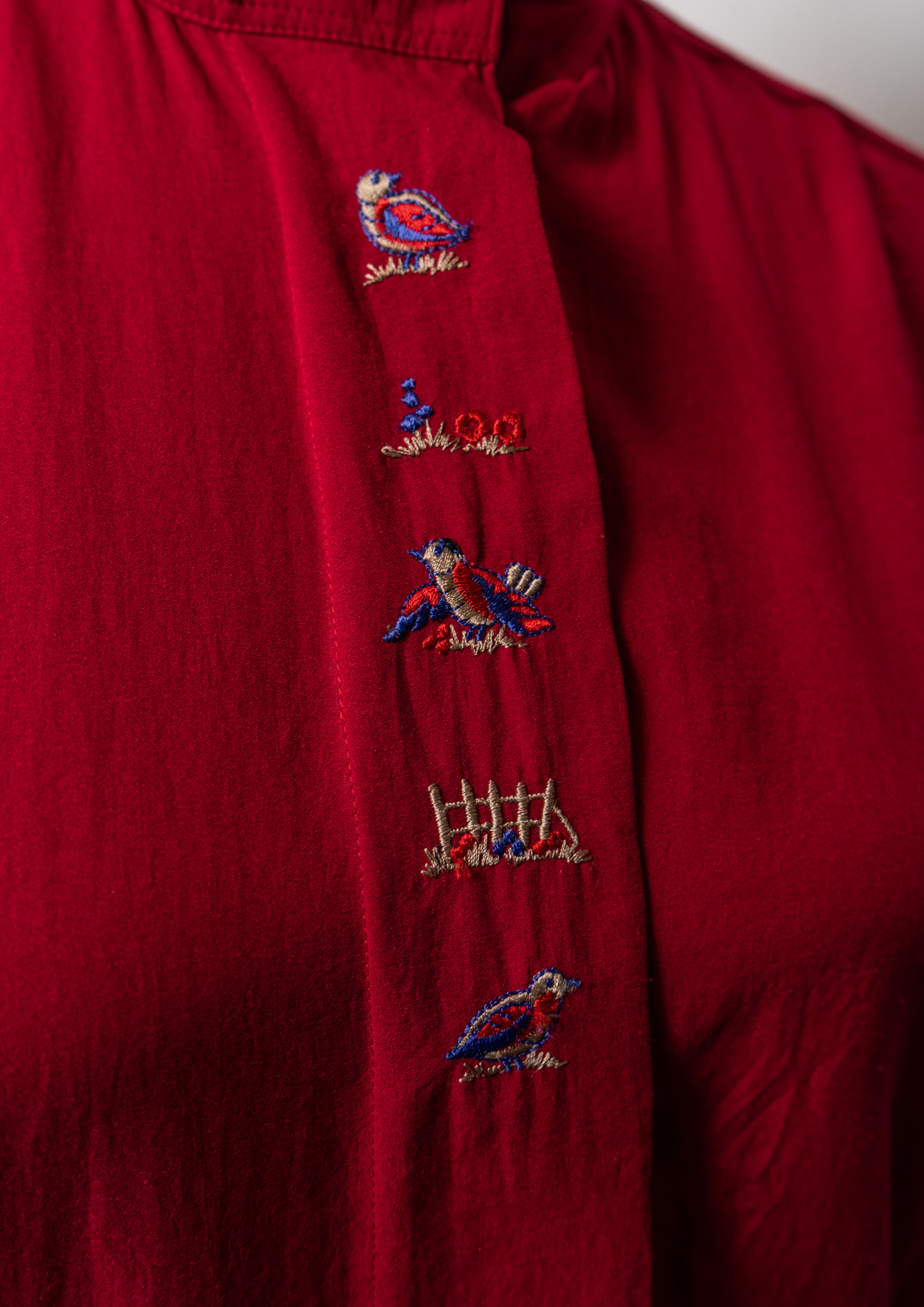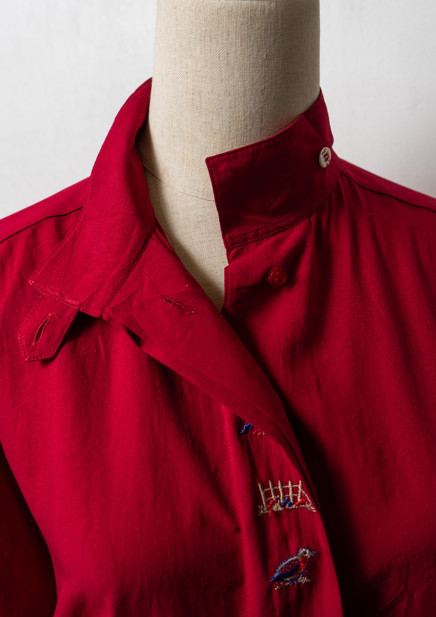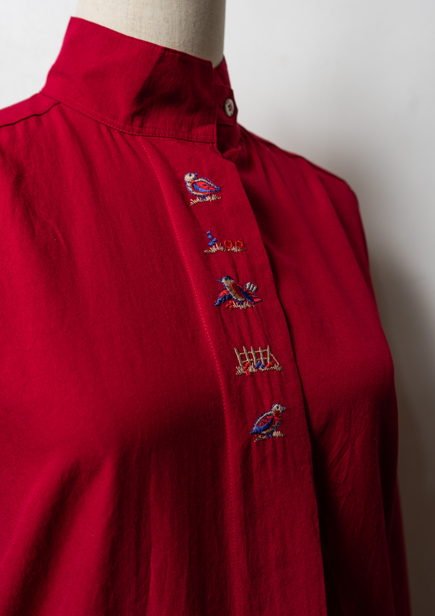 80's Bird Embroidery Red Blouse