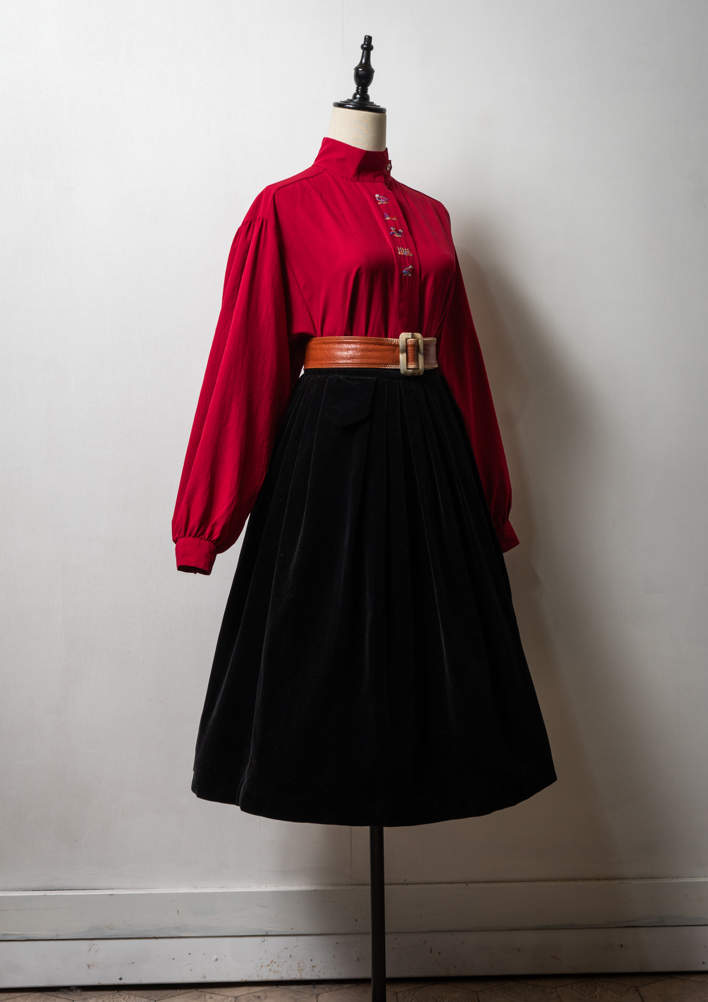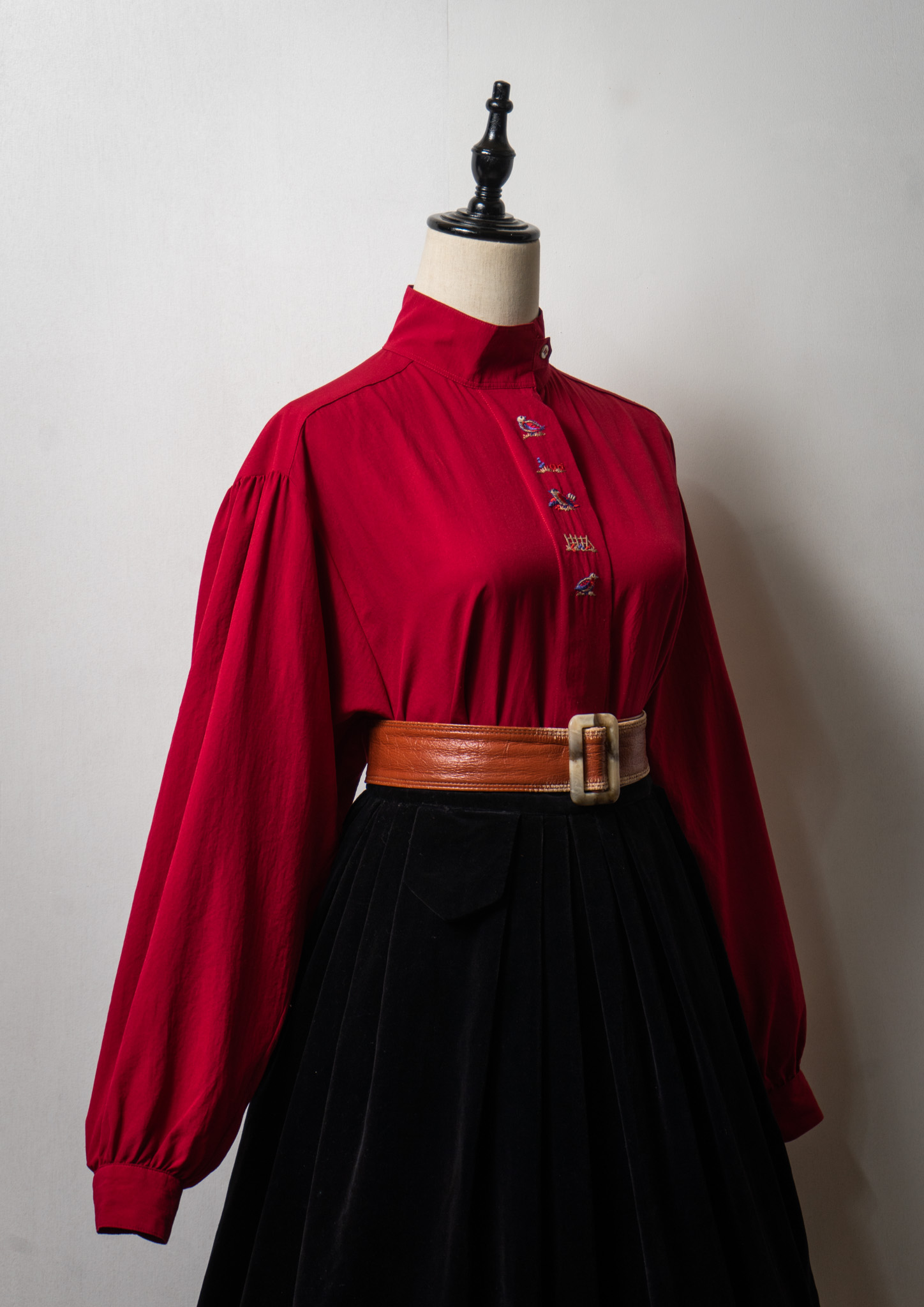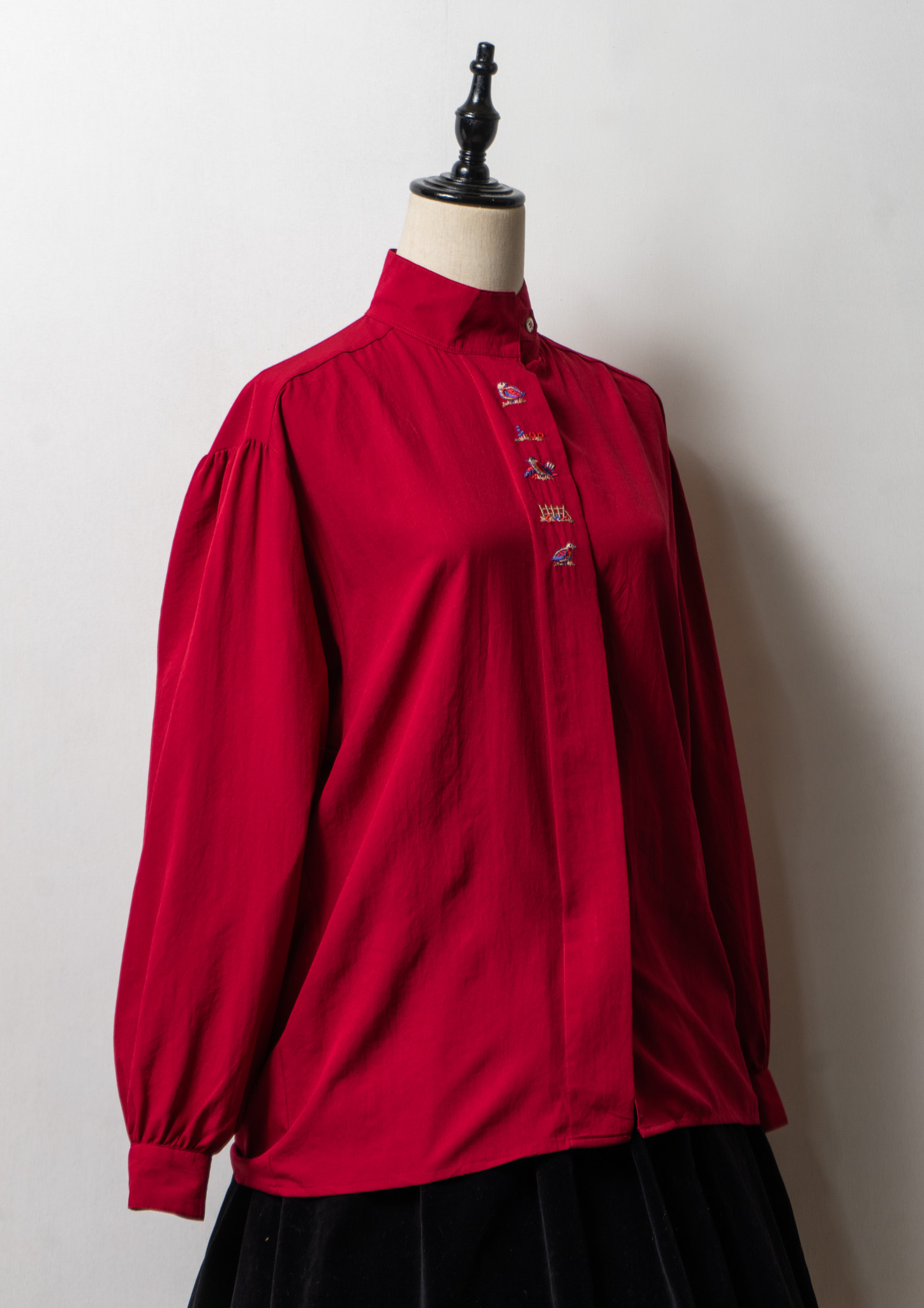 80's Bird Embroidery Red Blouse