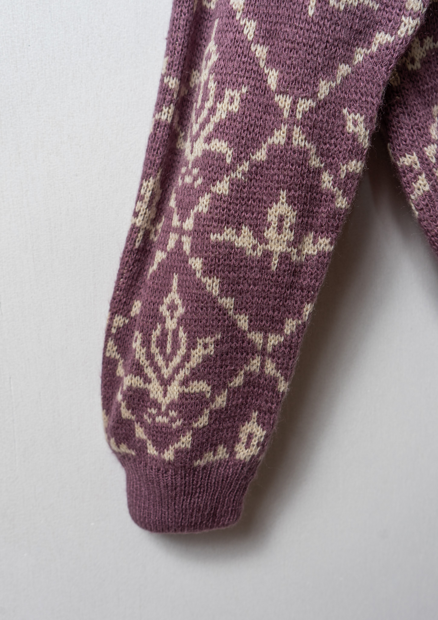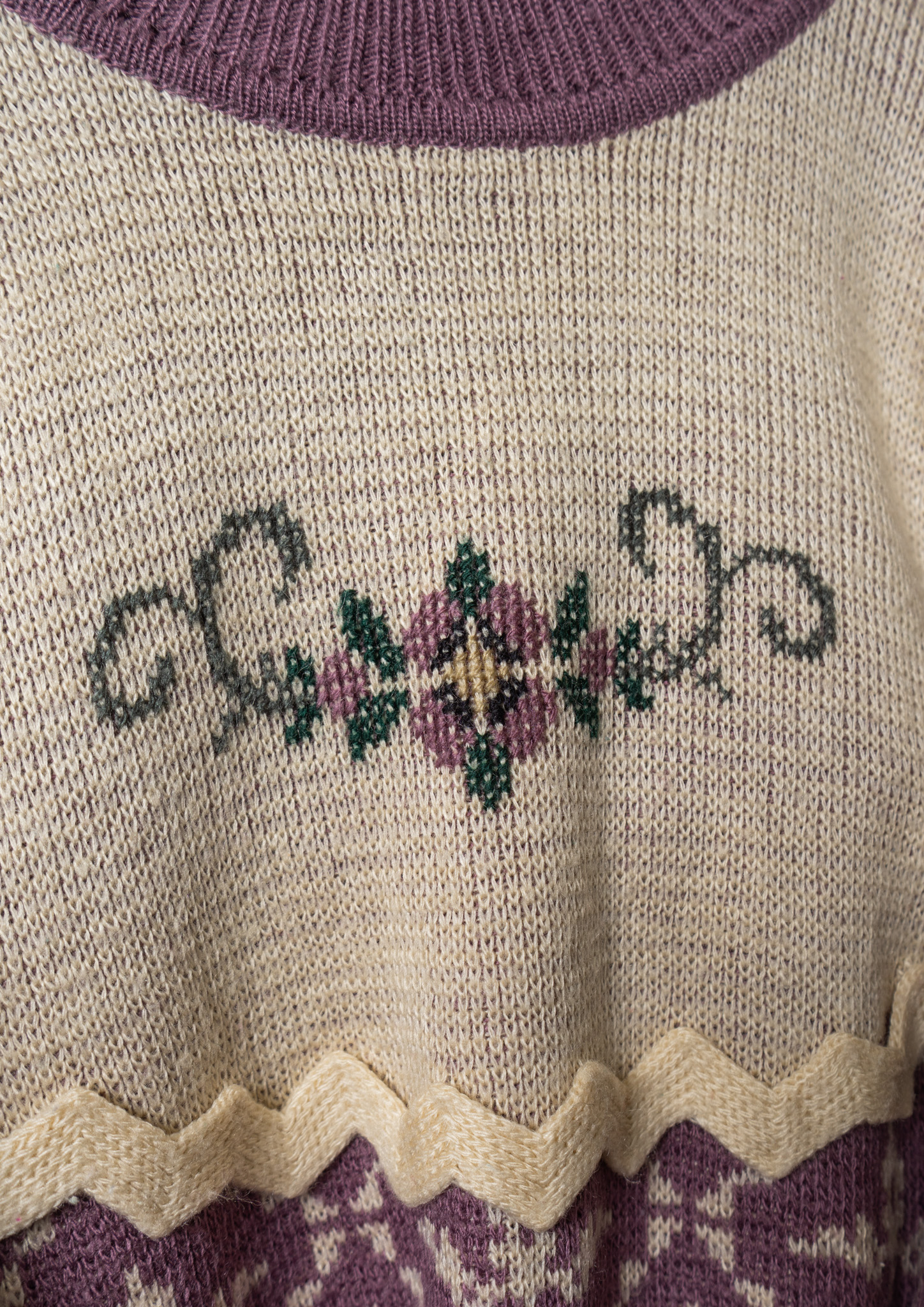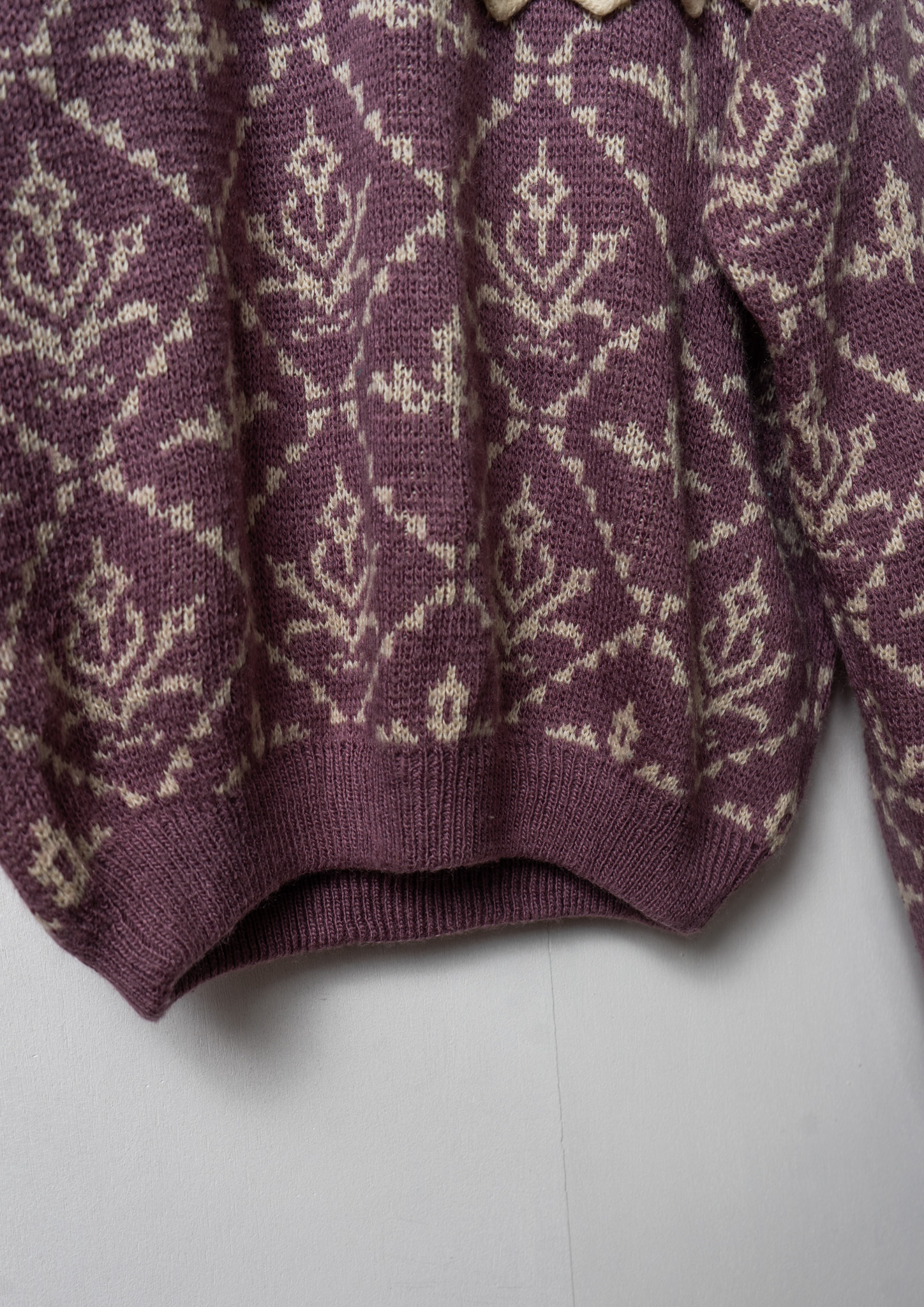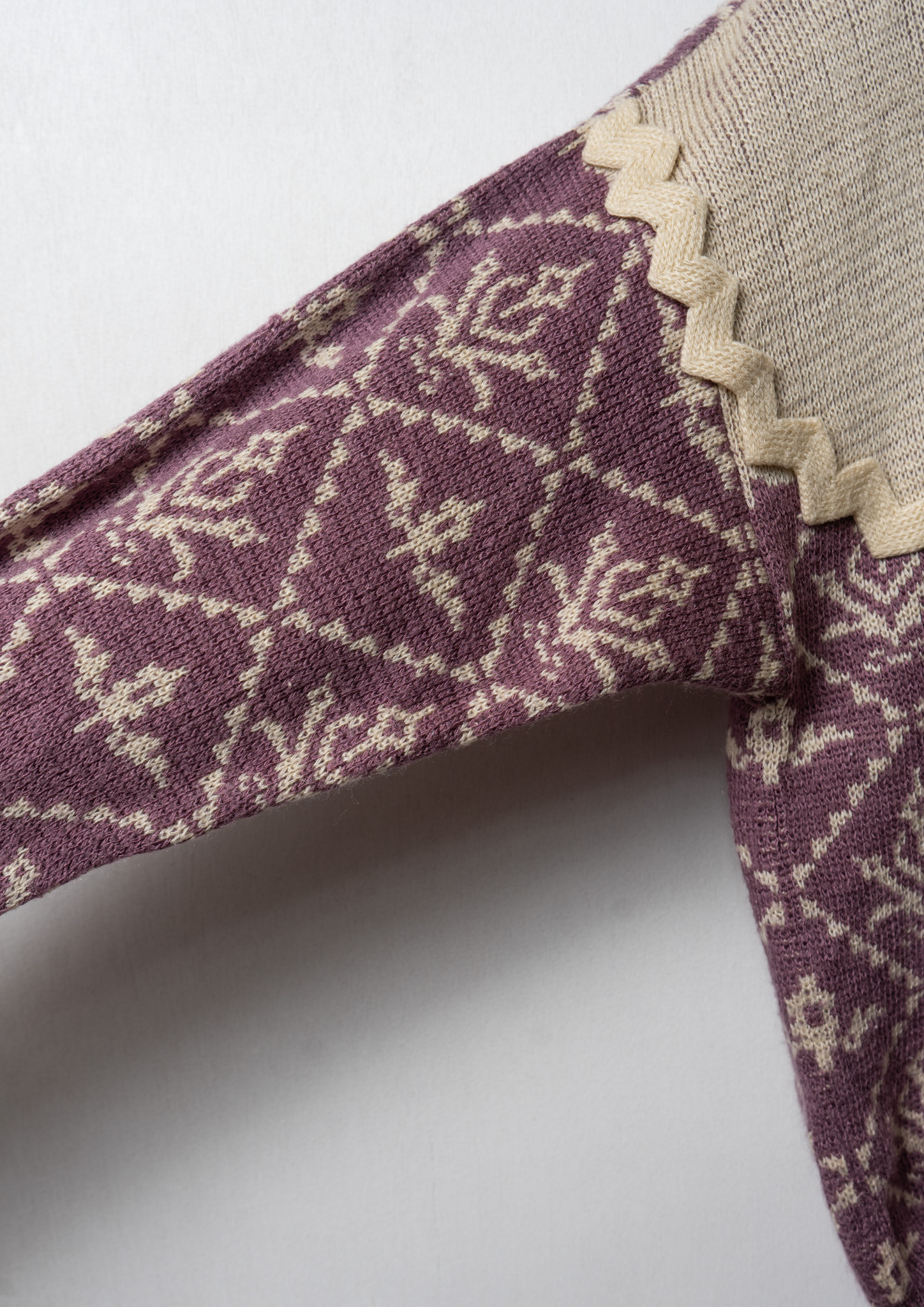 80~90's Flower × Diamond Pattern Light Purple Knit Sweater