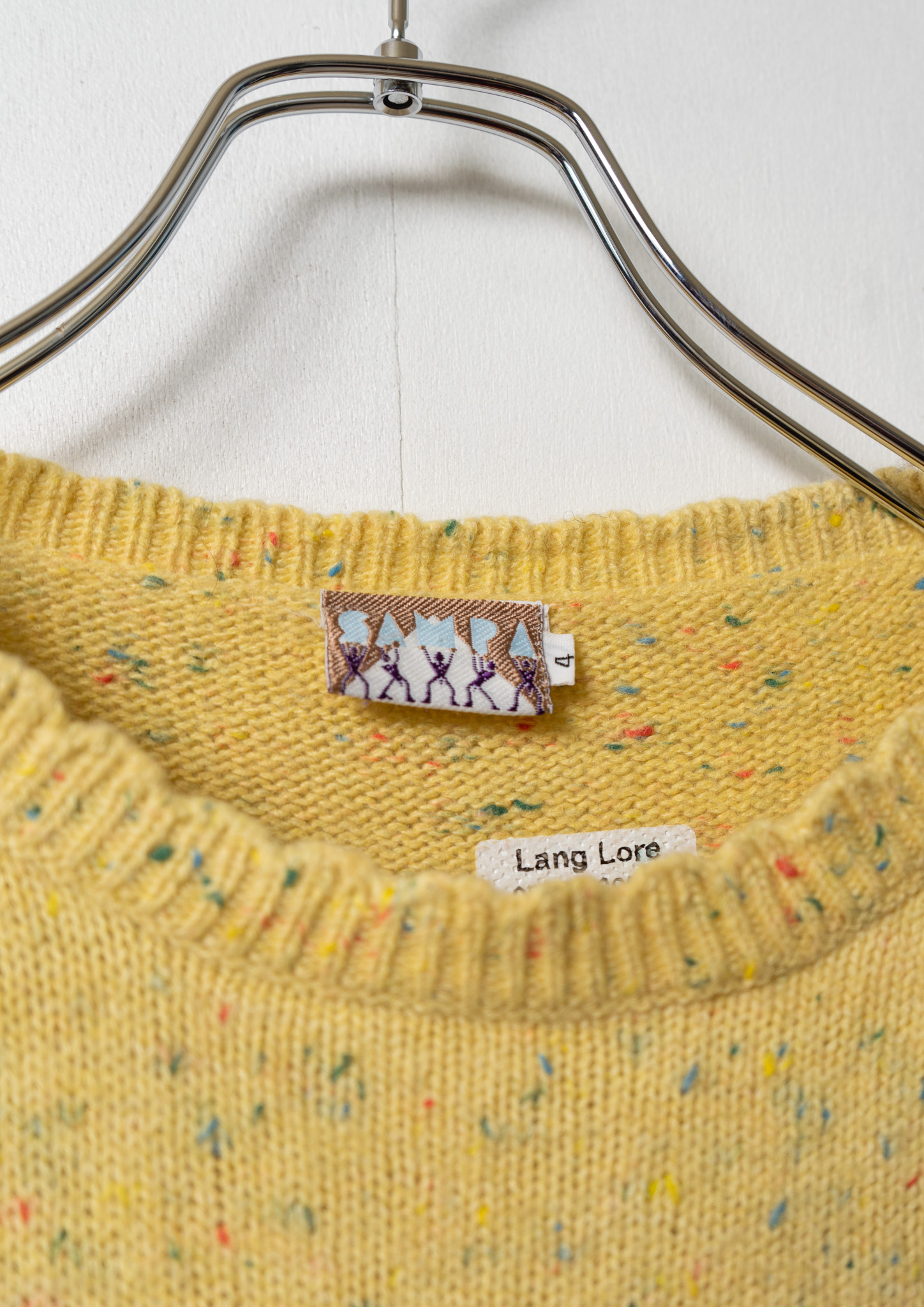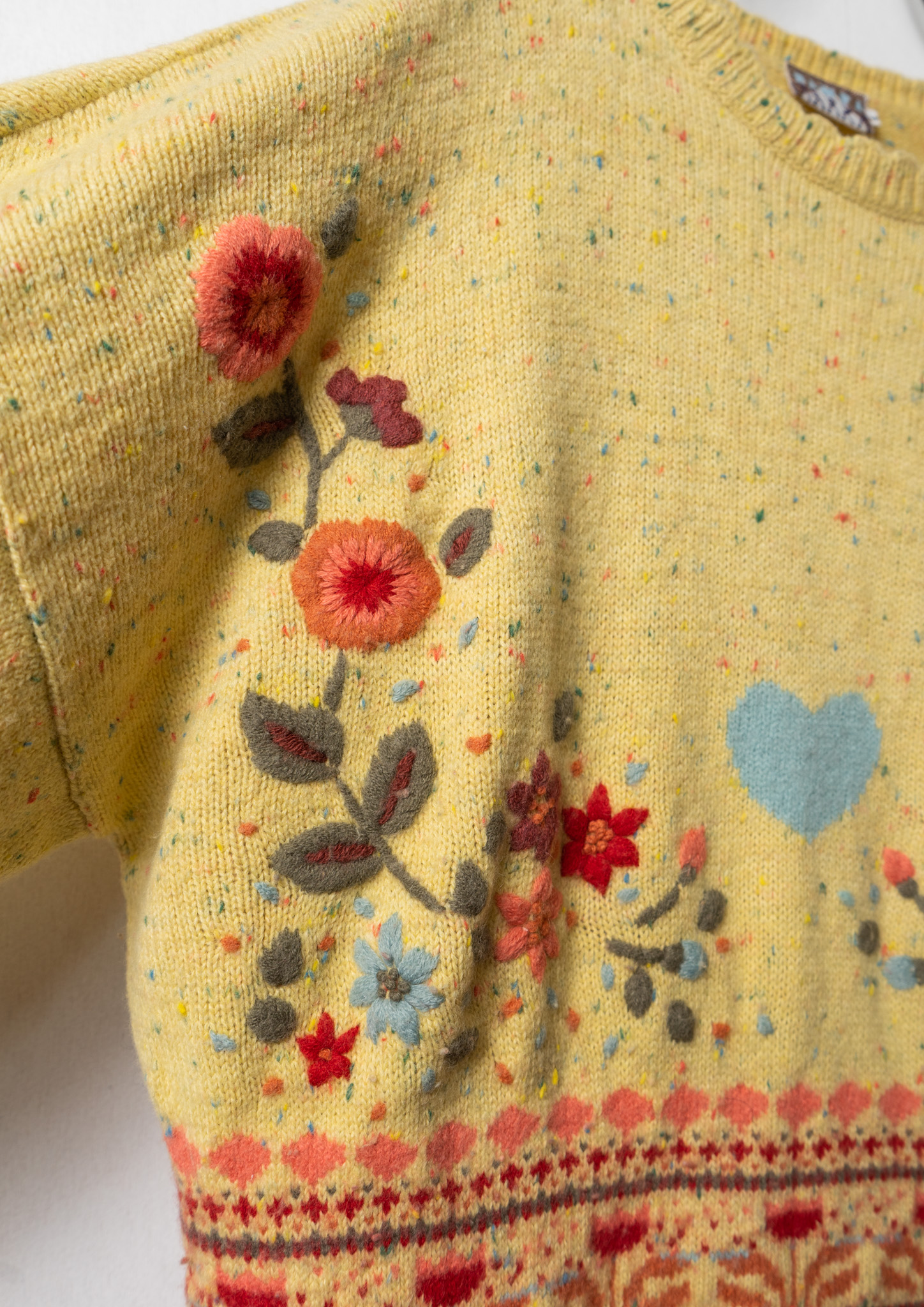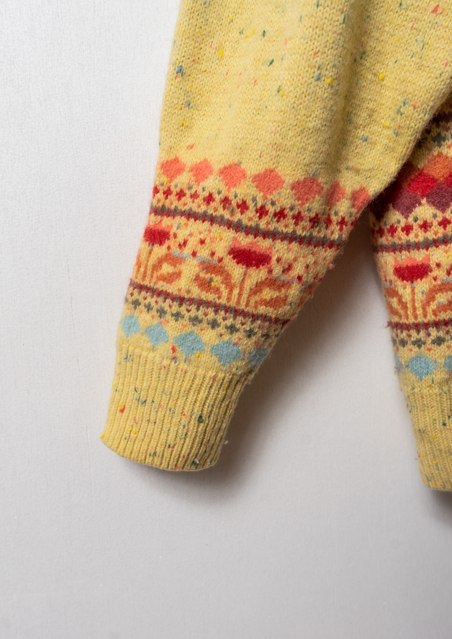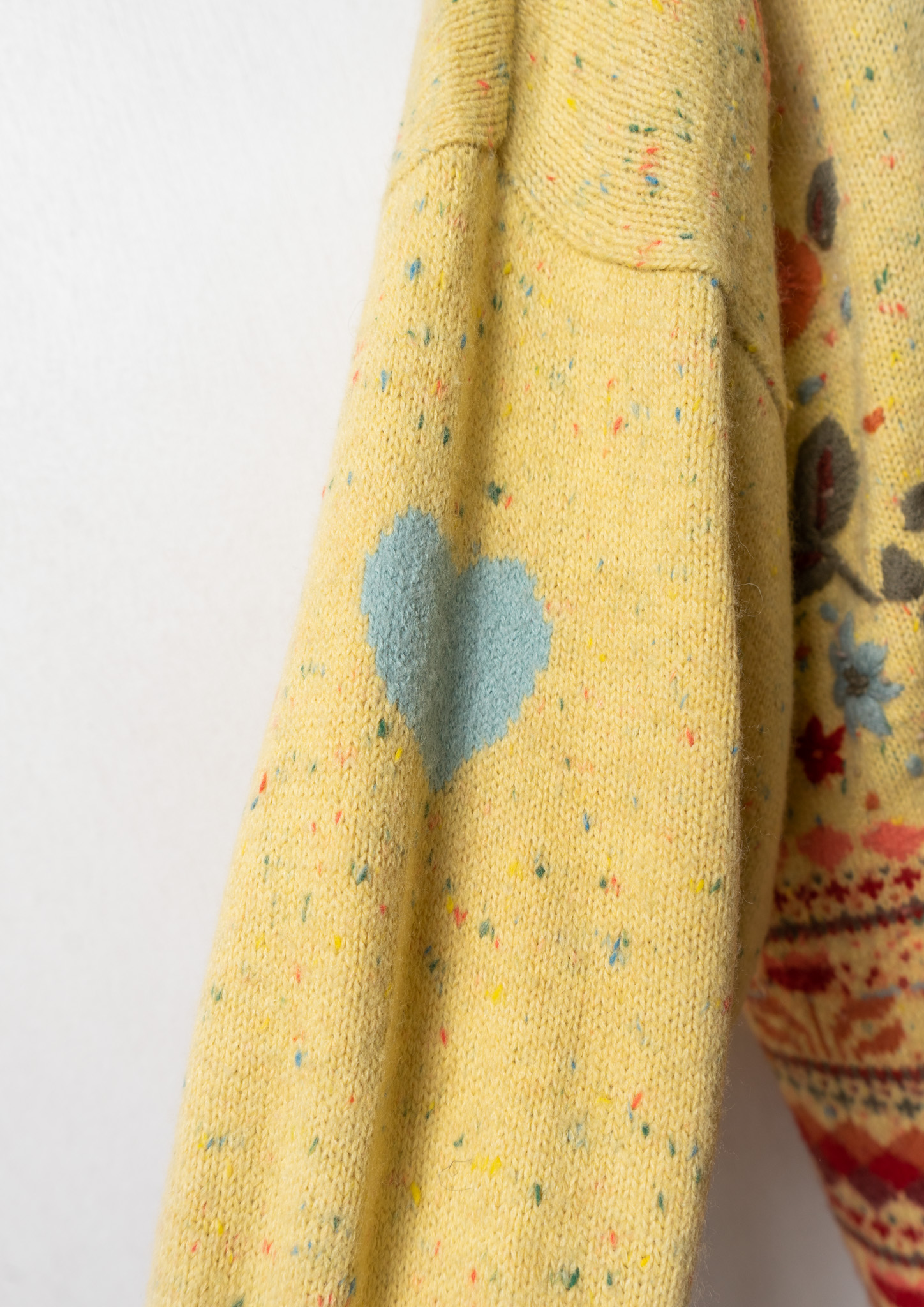 90's Flower Embroidery Color Nep Pattern Yellow Knit Sweater
