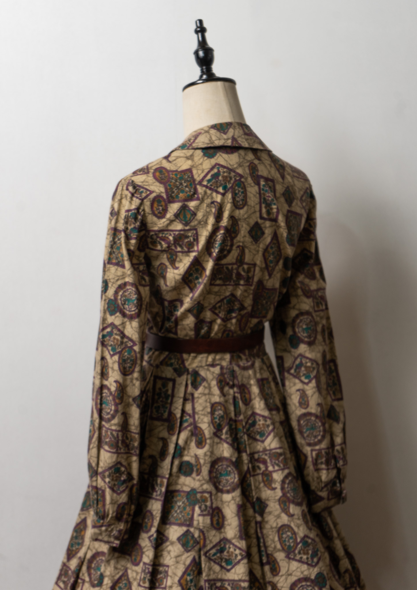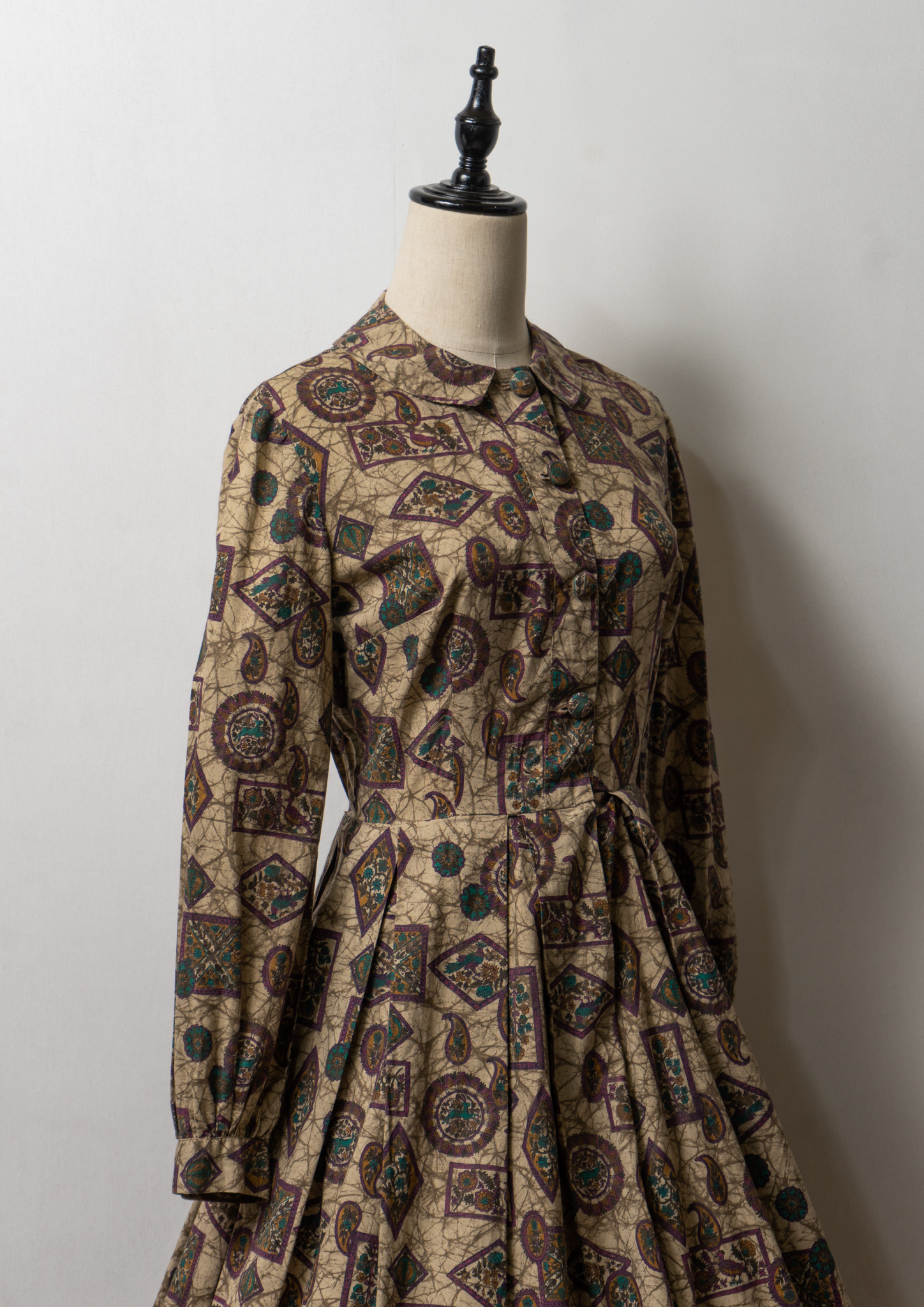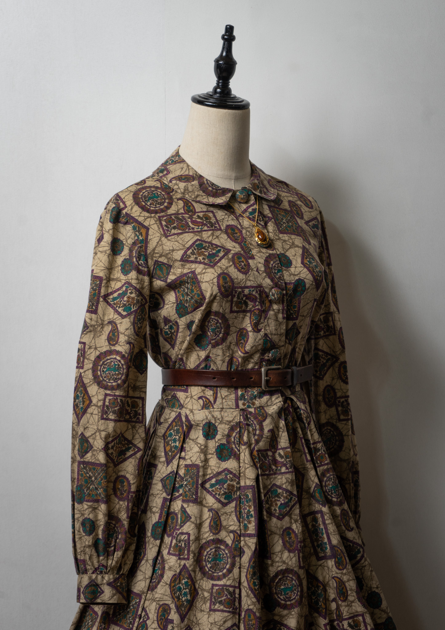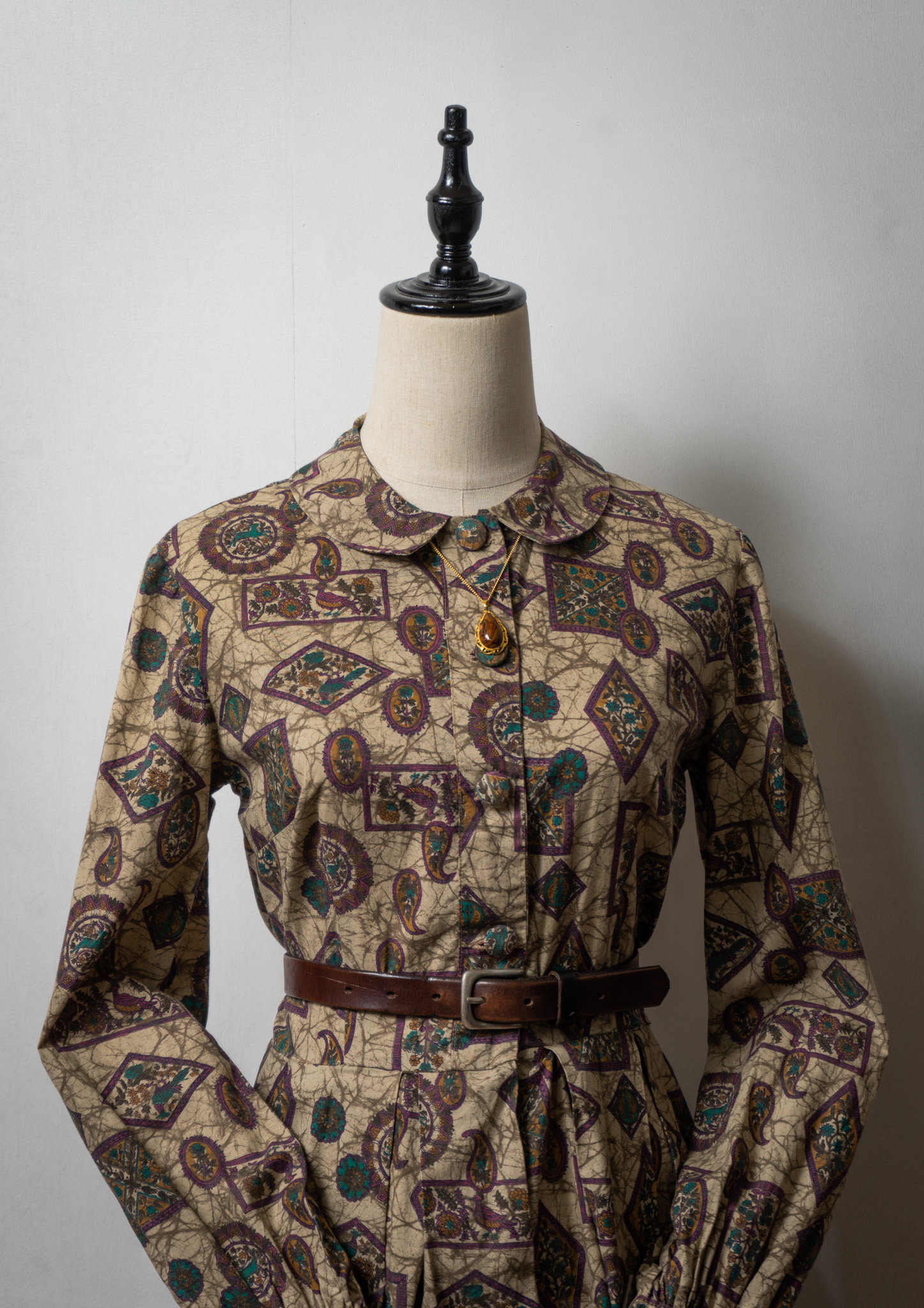 70's Frill Coller Pin Dot Pattern Over Dye Maxi Dress