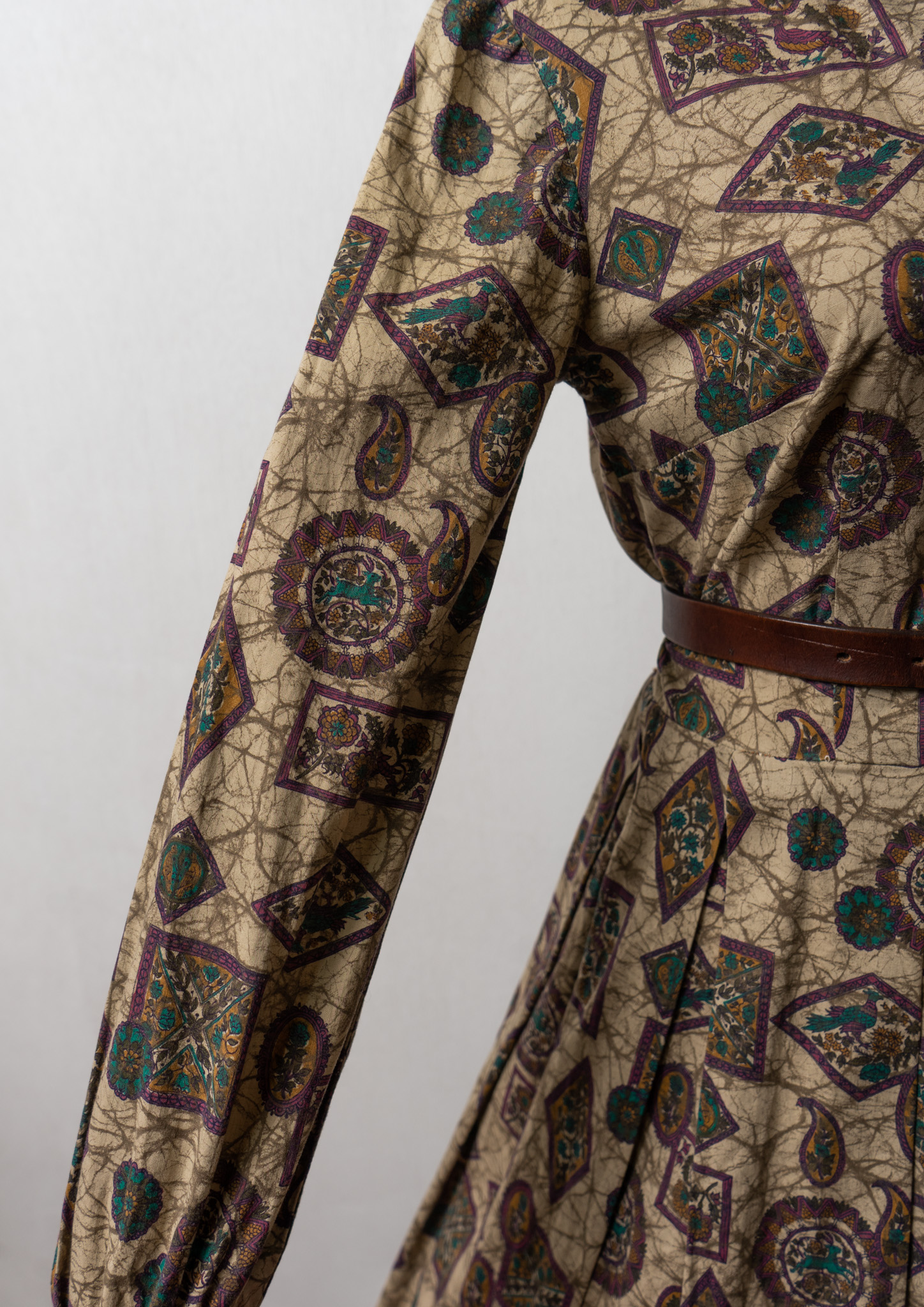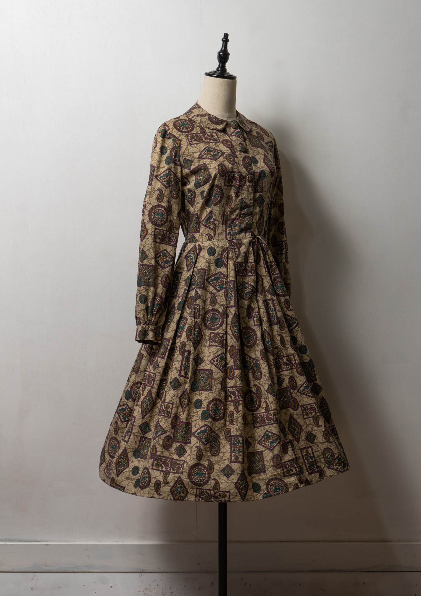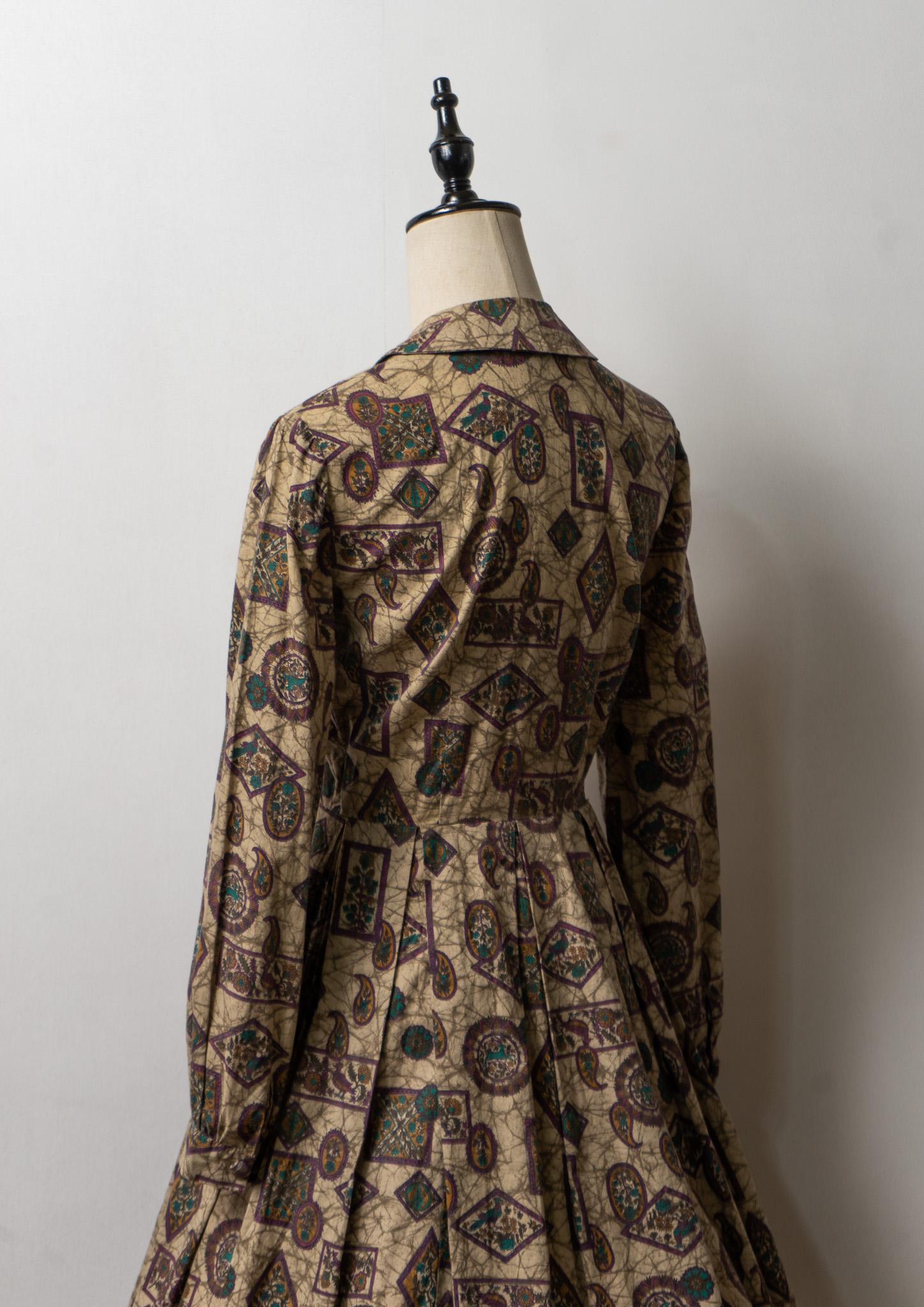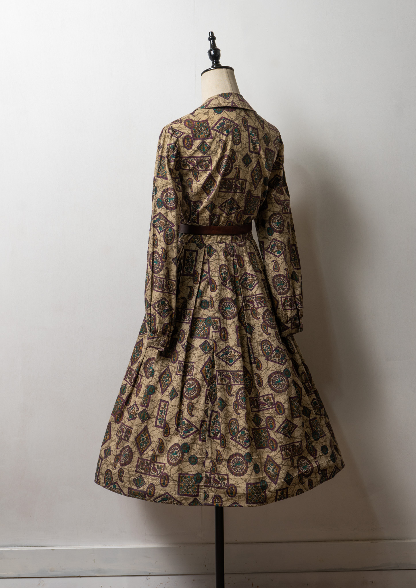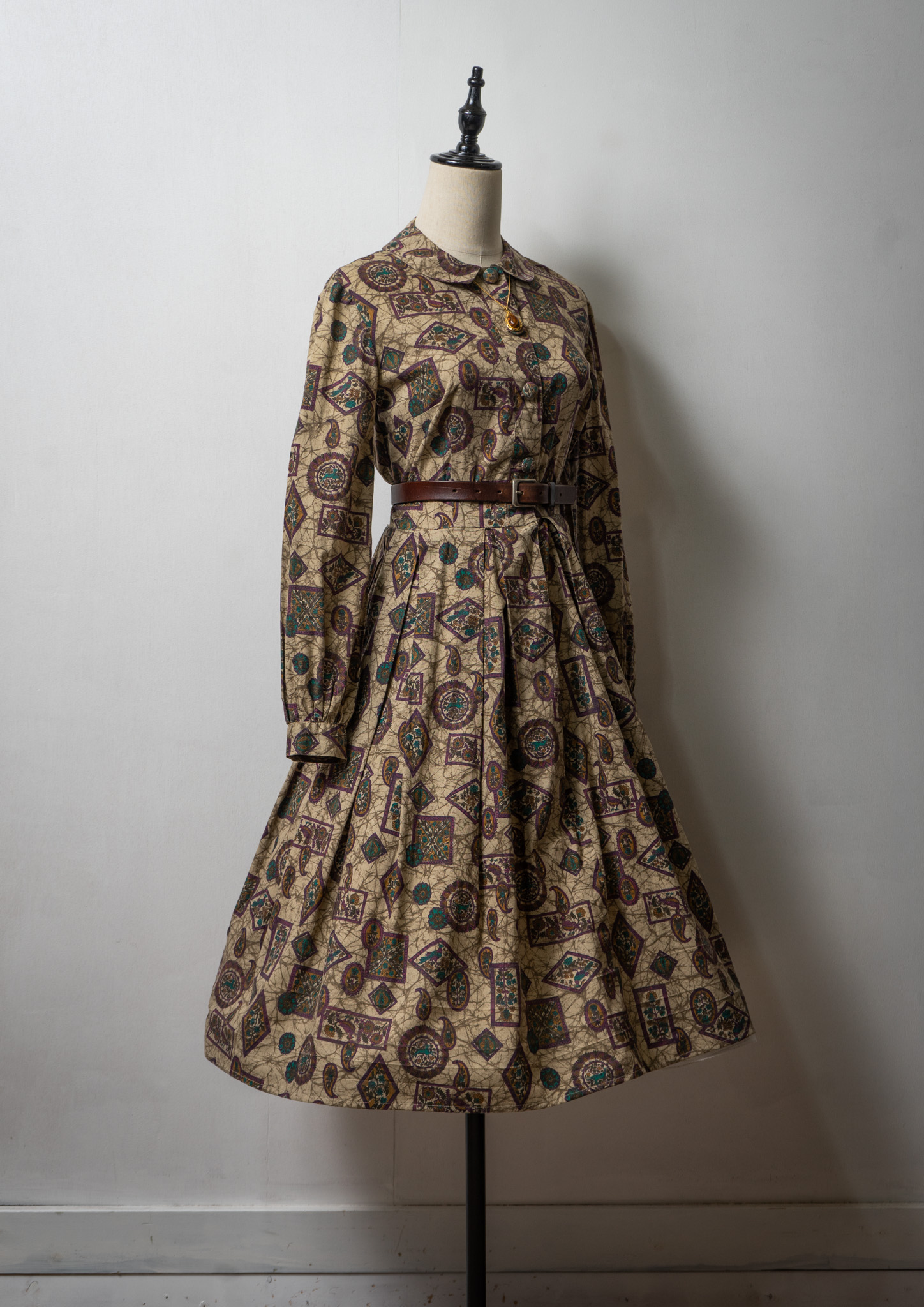 70's Frill Coller Pin Dot Pattern Over Dye Maxi Dress